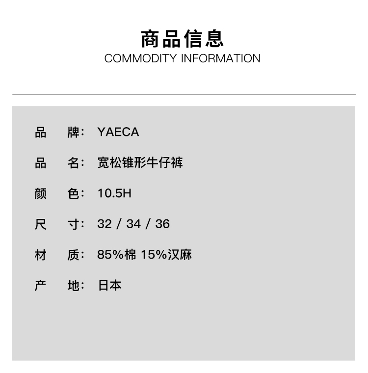 YAECA 34denim-05(Man) 10oz轻薄棉麻混纺男装宽松锥形牛仔裤