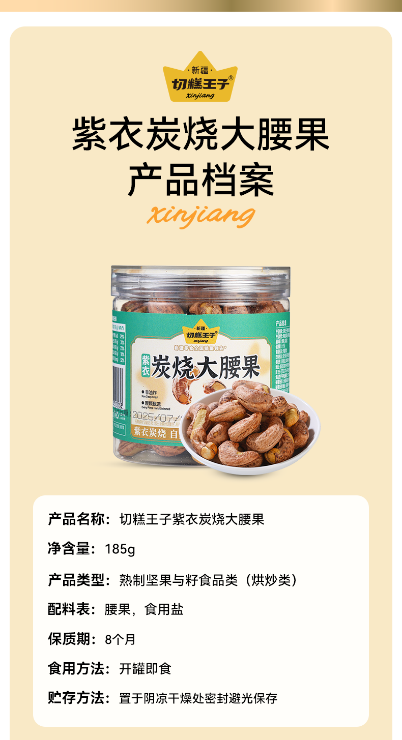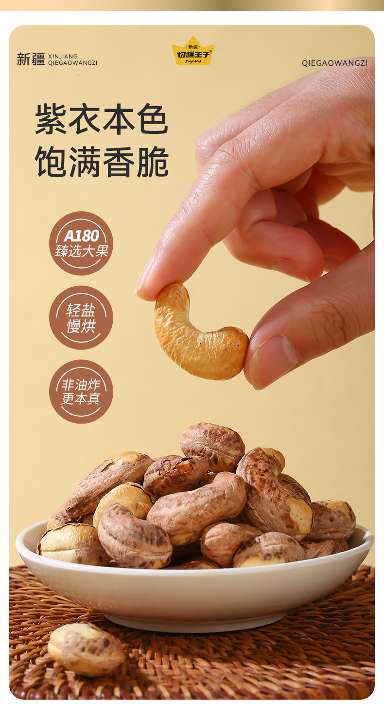 切糕王子紫衣炭烧大腰果 颗颗严选A180巨果 低温慢烤工艺 轻盐非油炸 商品缩略图0 切糕王子紫衣炭烧大腰果 颗颗严选A180巨果 低温慢烤工艺 轻盐非油炸 商品缩略图1 切糕王子紫衣炭烧大腰果 颗颗严选A180巨果 低温慢烤工艺 轻盐非油炸 商品缩略图2 切糕王子紫衣炭烧大腰果 颗颗严选A180巨果 低温慢烤工艺 轻盐非油炸 商品缩略图3 切糕王子紫衣炭烧大腰果 颗颗严选A180巨果 低温慢烤工艺 轻盐非油炸 商品缩略图4