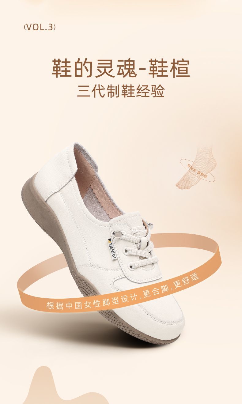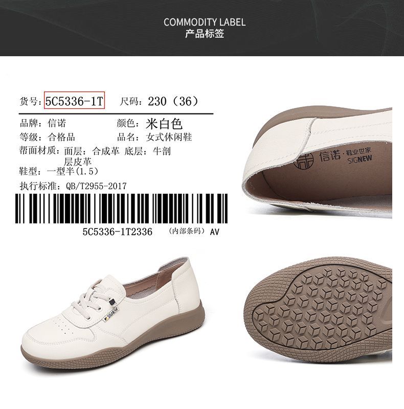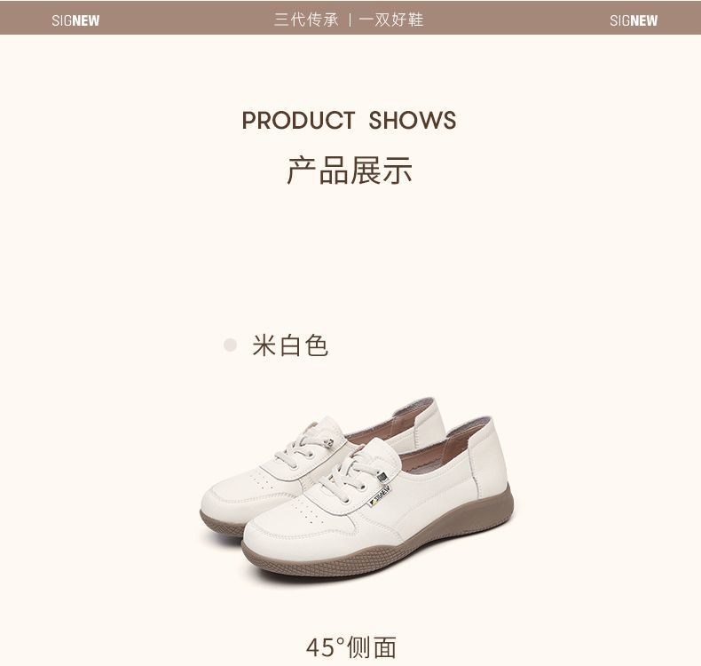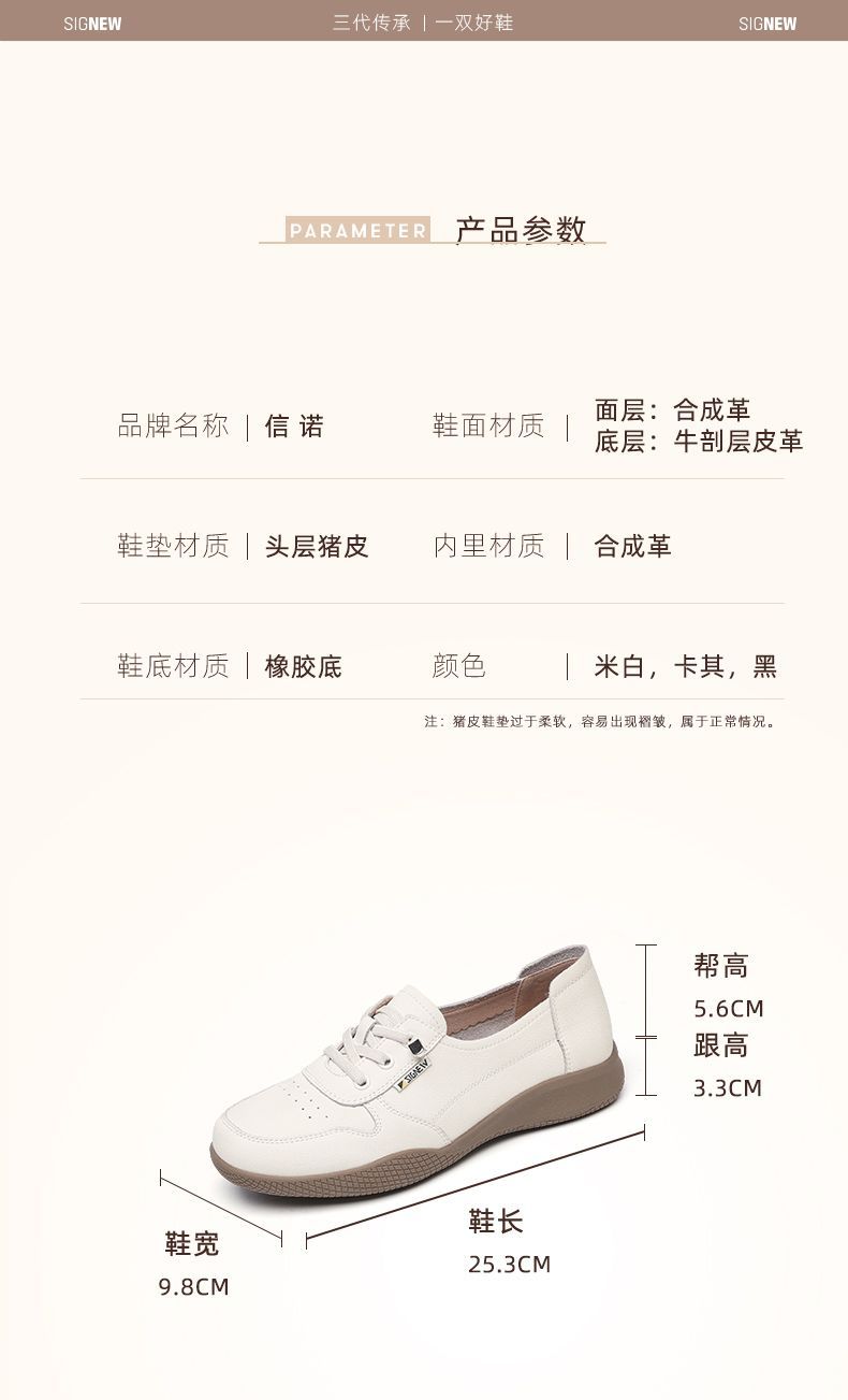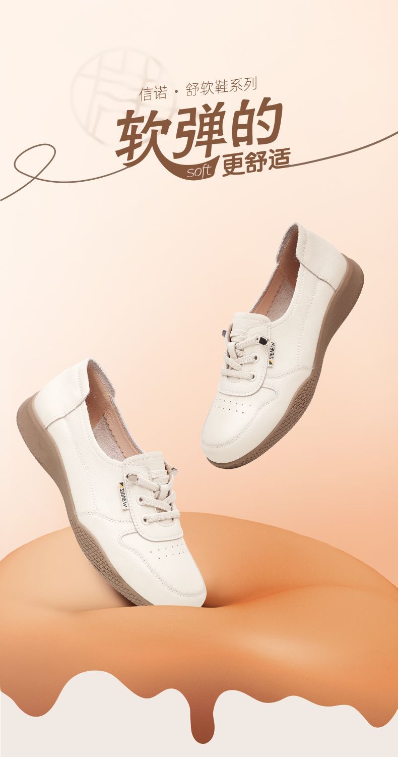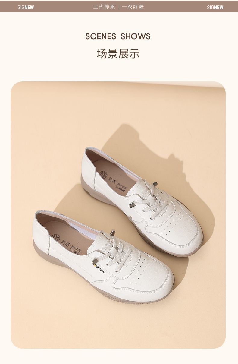 信诺舒适真皮软底女鞋2025小白鞋新款平底单鞋妈妈超软休闲皮鞋子5C5336-1T