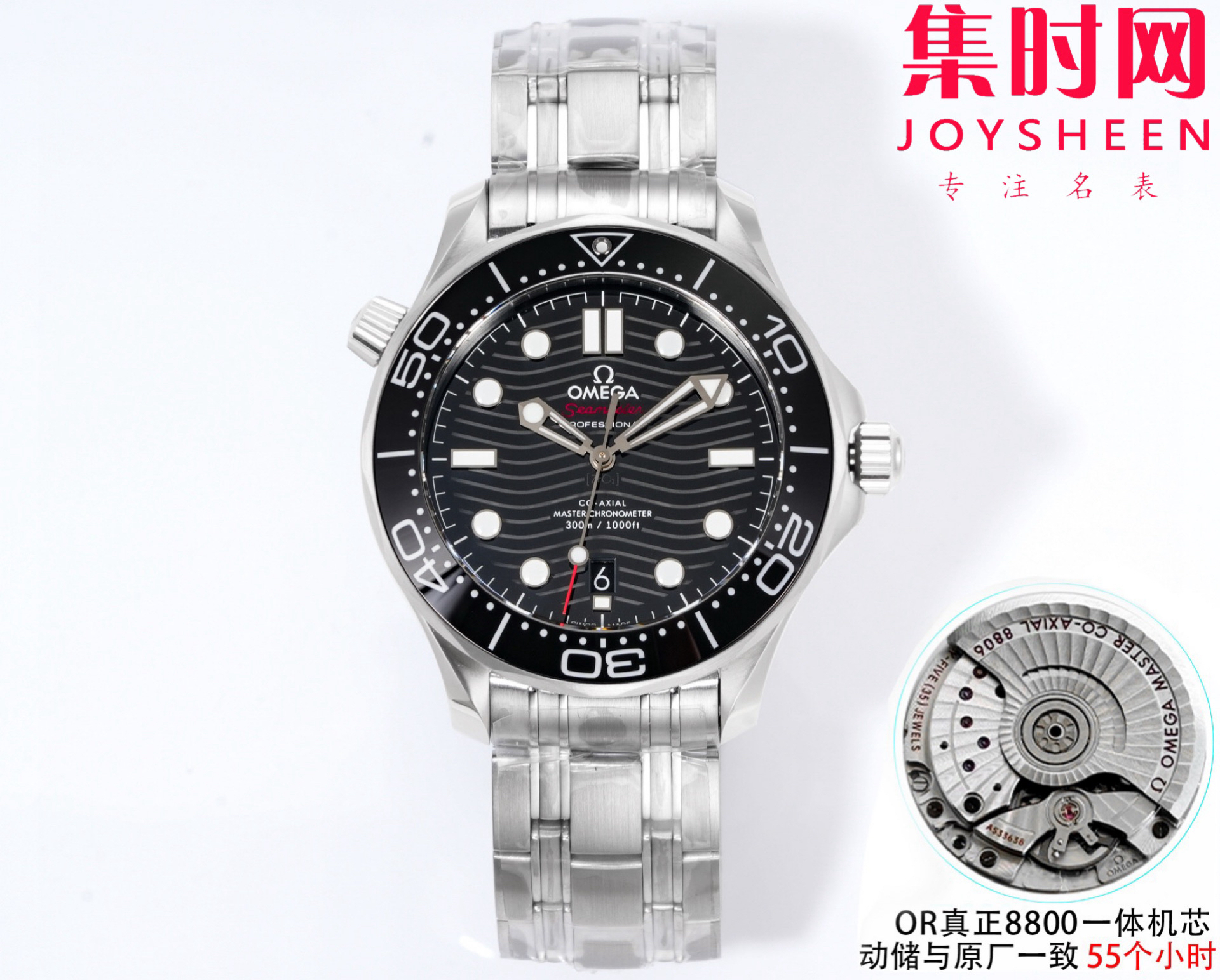 OR欧米茄海马300米系列 黑海马 8800一体机 男士腕表 表径42mm 让您有更好的选择,唯一原装开模对版的全新海马300米潜水表系列,每个配件几乎全新开模对版zui新专柜的设计,耗时三年半研究开发出真正的OR定制Cal.8800一体自动上链机械机芯。