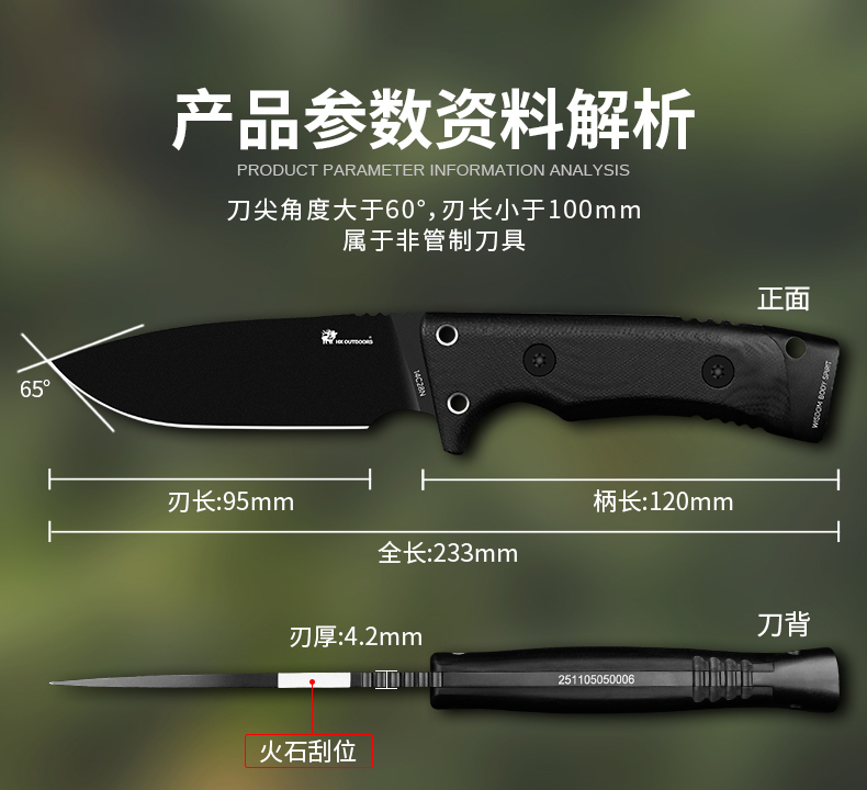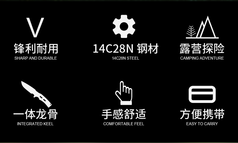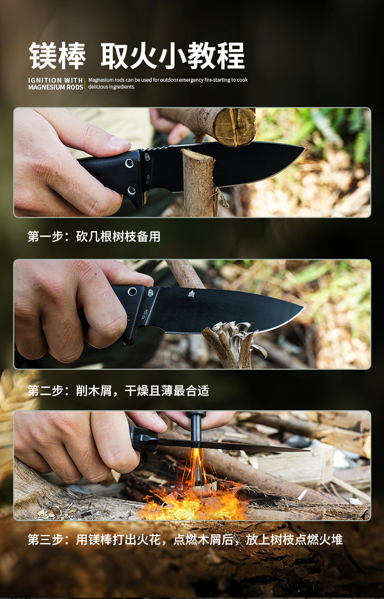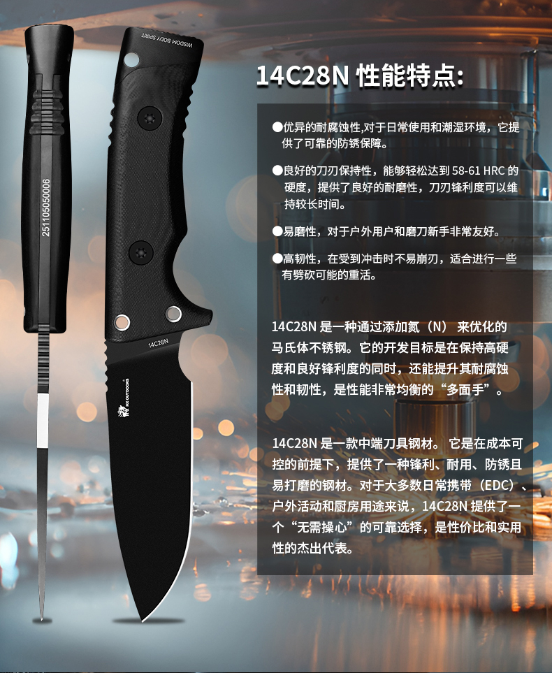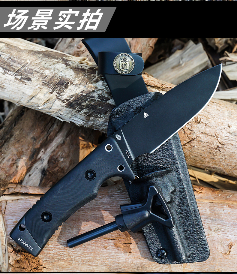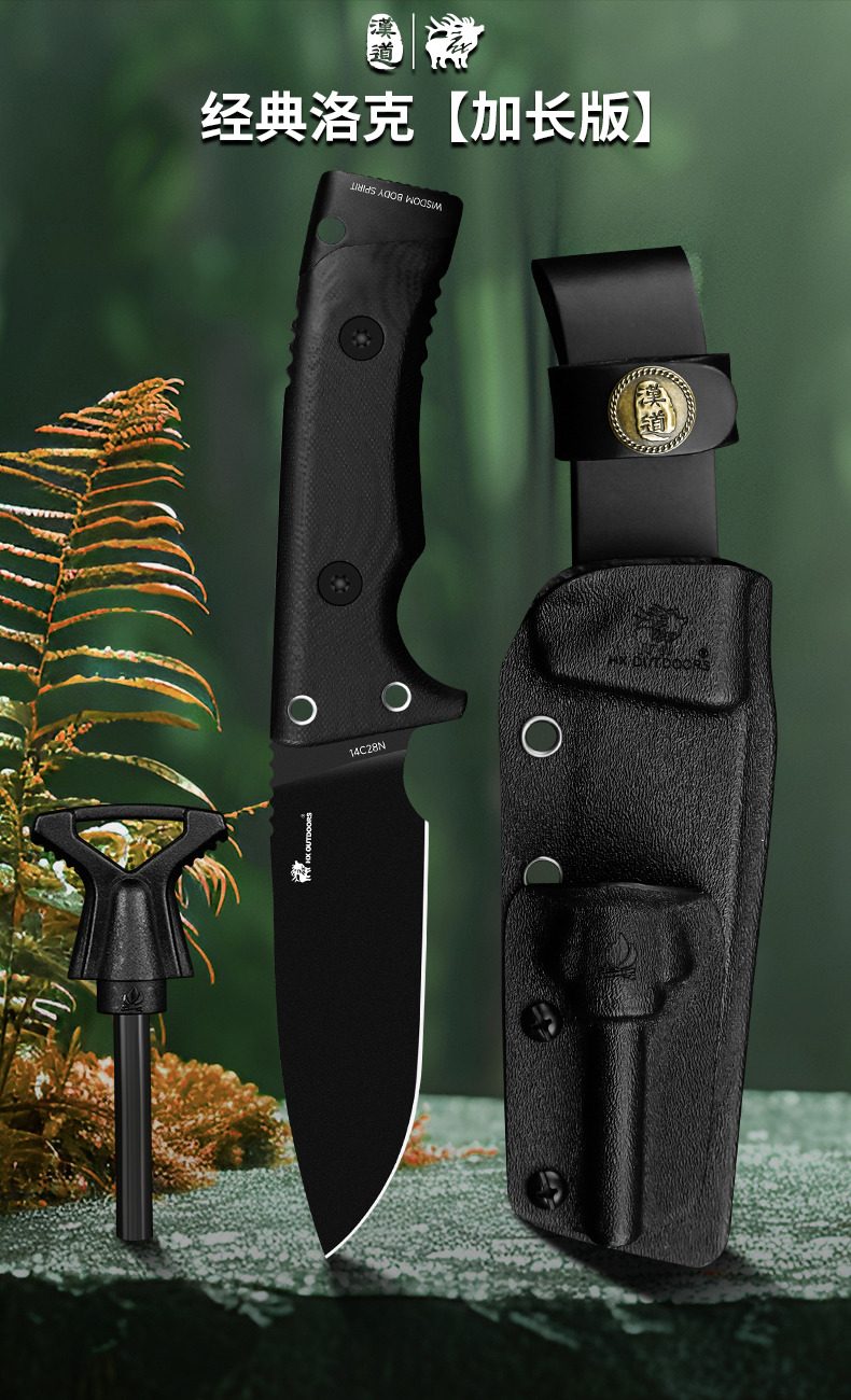 汉道经典洛克加长版14C28N户外求生刀生存刀一体龙骨直刀多功能小刀荒野求生刀