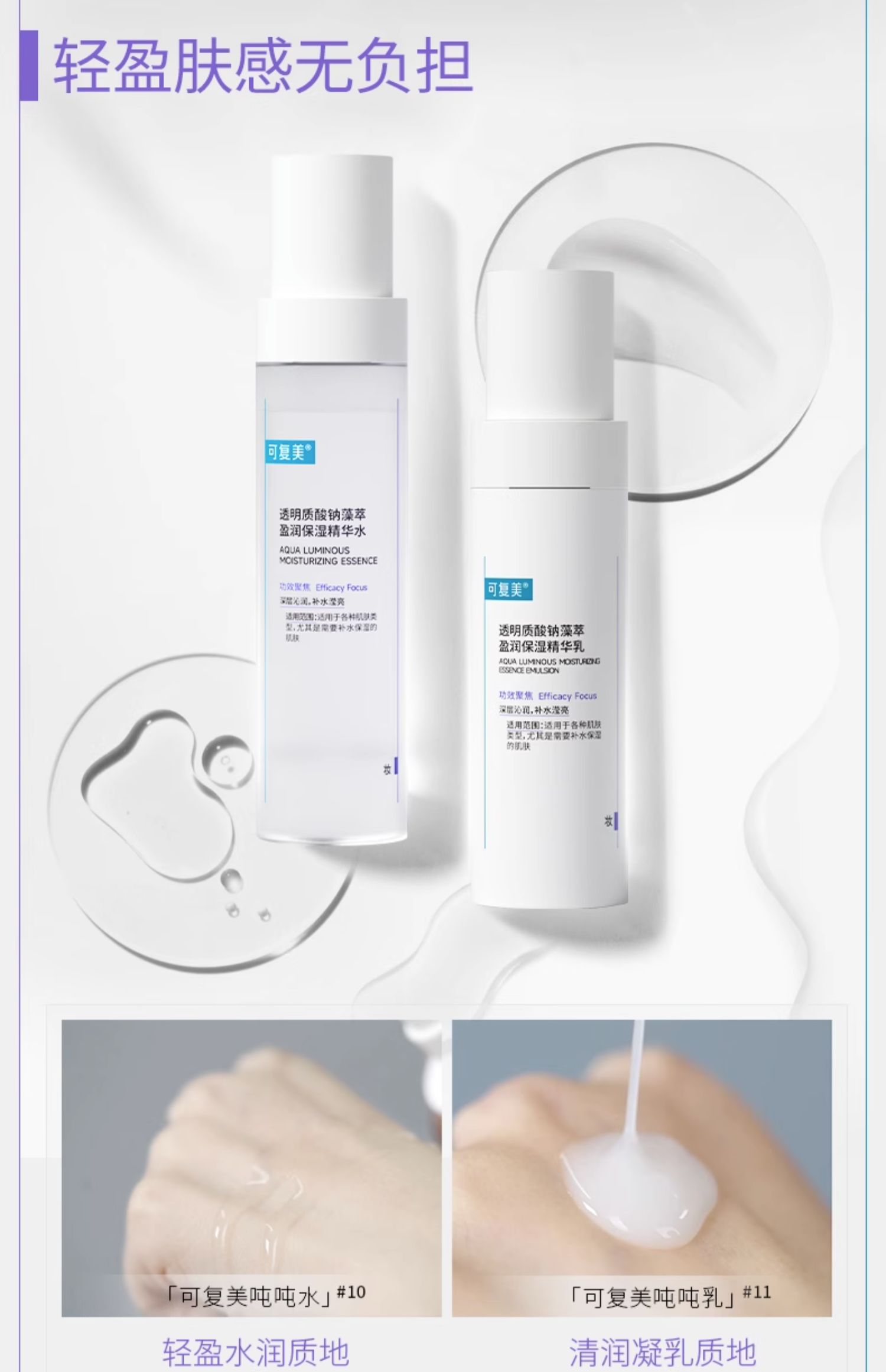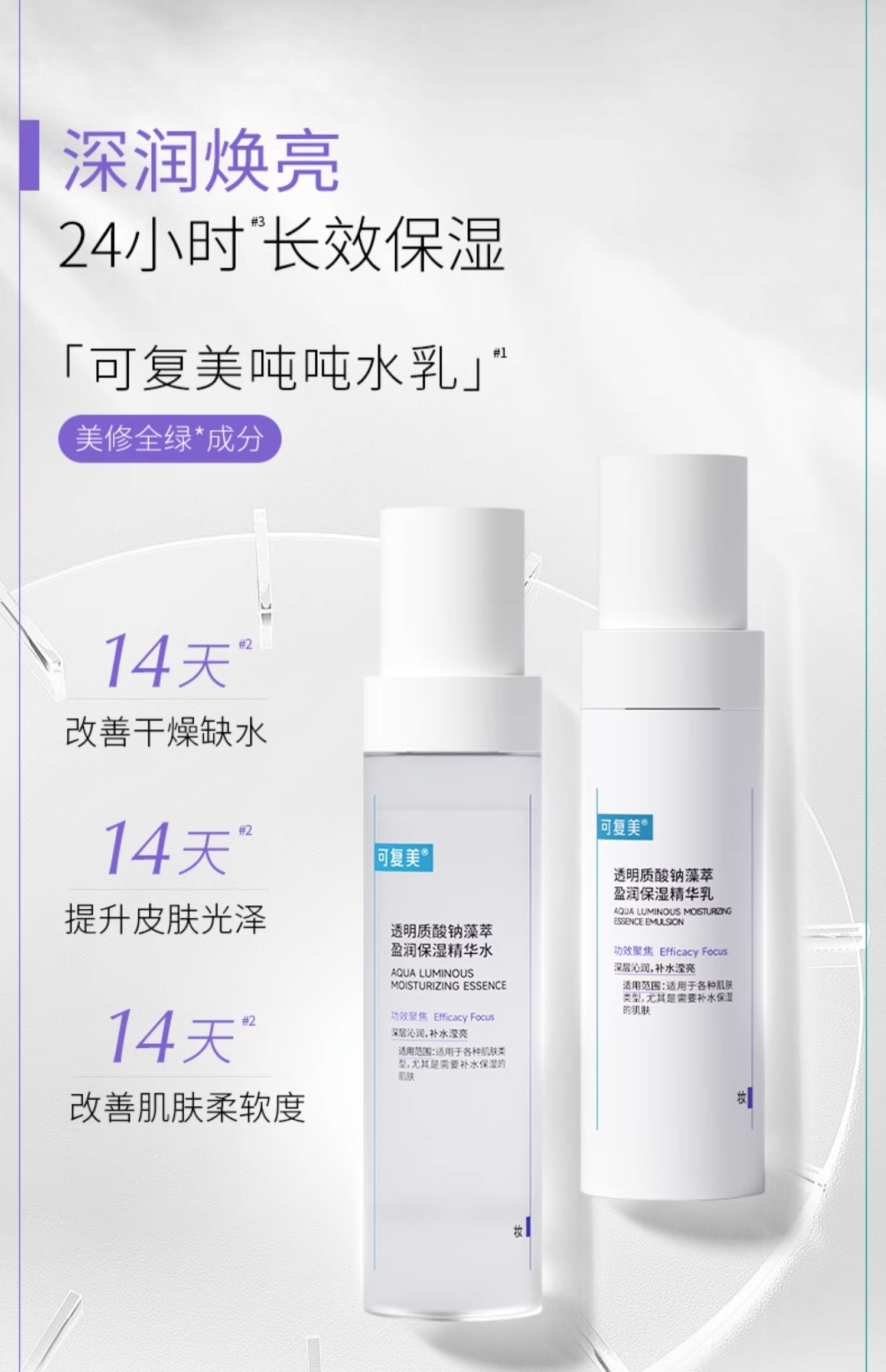 可复美吨吨水乳套装(透明质酸钠藻萃盈润保湿精华水120ml+精华乳80g)