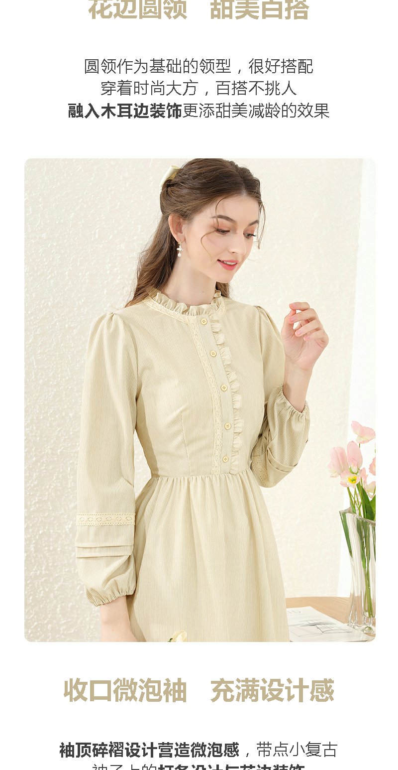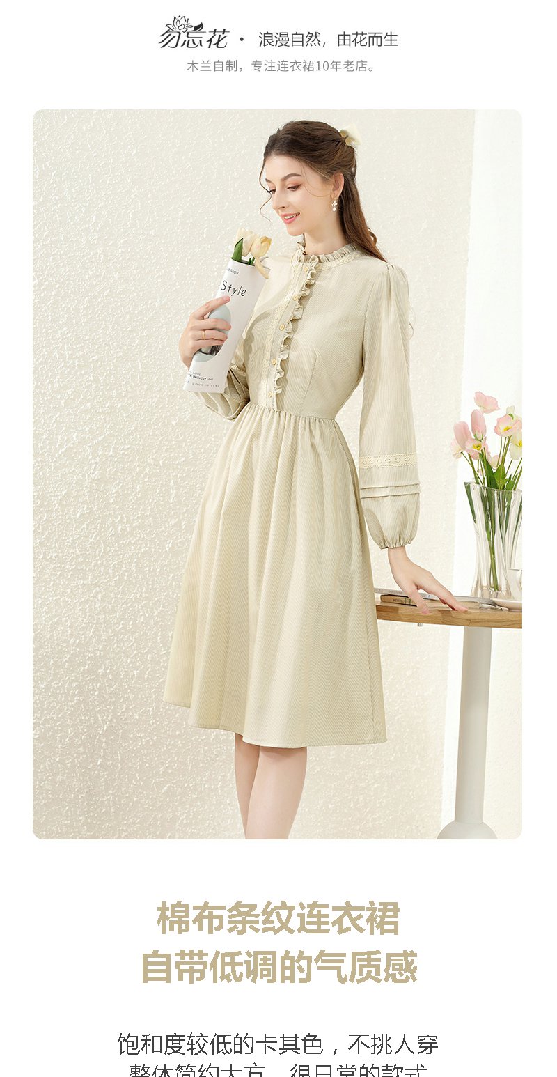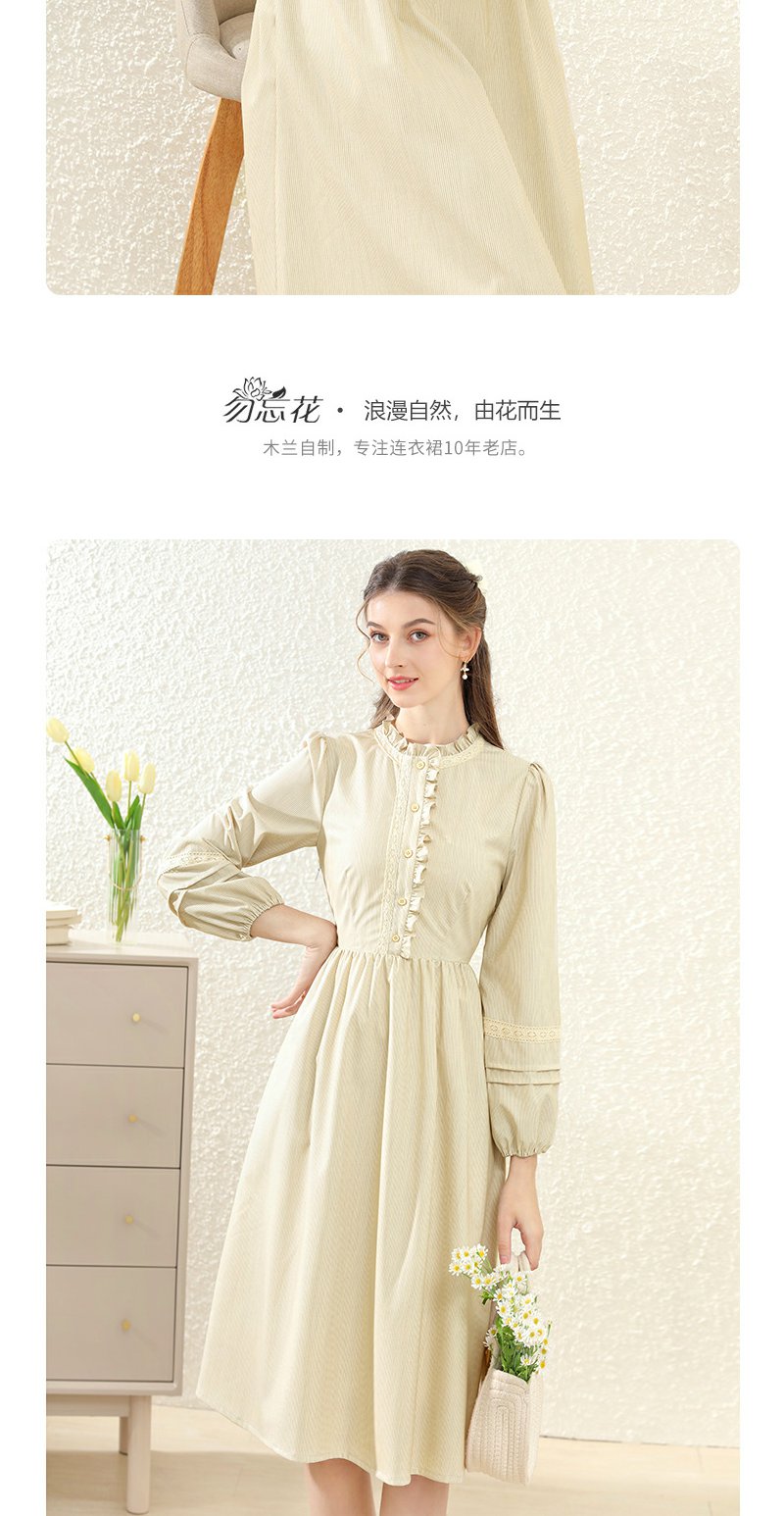 勿忘花卡其色气质温柔风连衣裙女2024秋季新款法式小个子裙子早秋