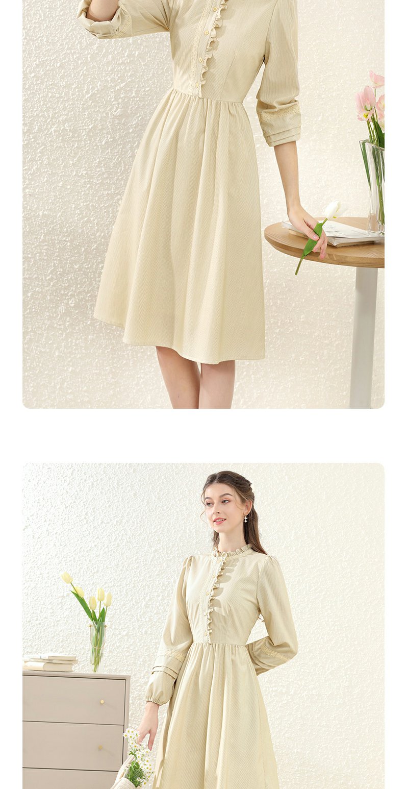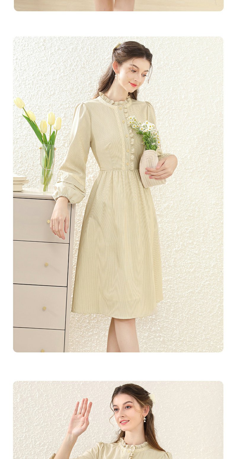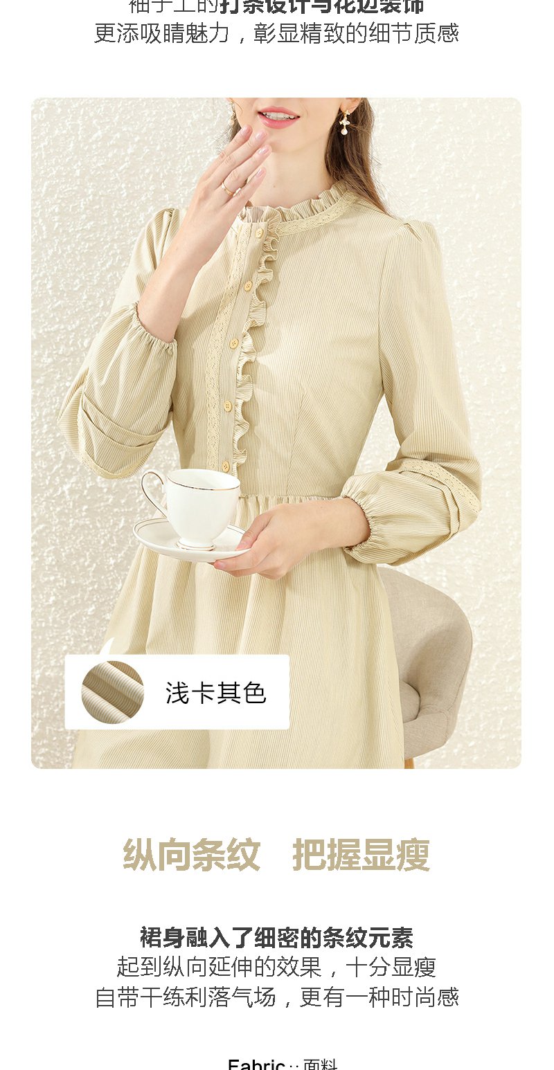 勿忘花卡其色气质温柔风连衣裙女2024秋季新款法式小个子裙子早秋