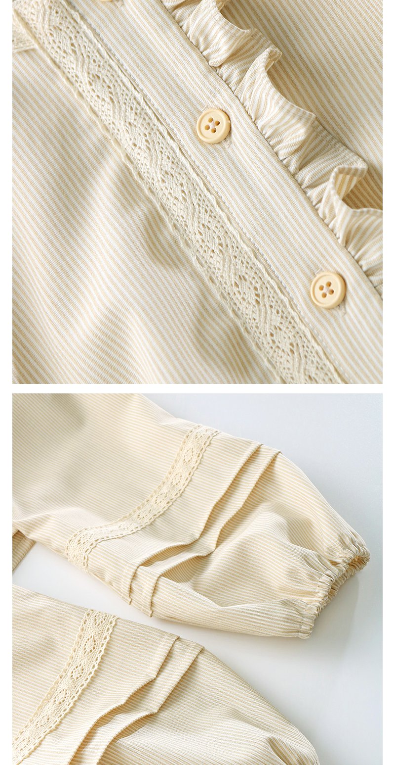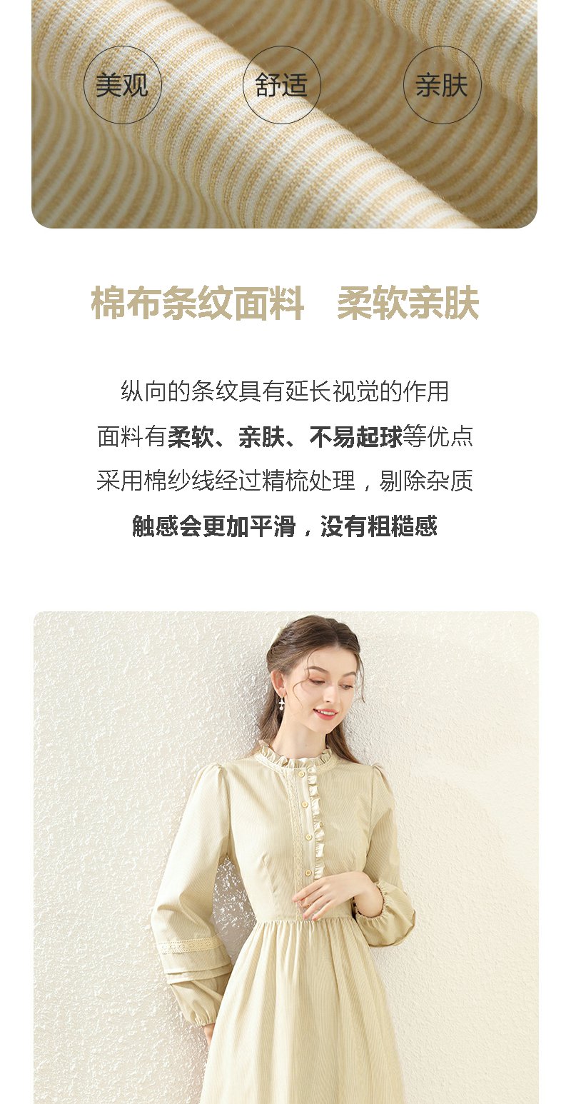 勿忘花蓝色镂空翻领条纹气质连衣裙2025女装秋季新款修身显瘦裙子