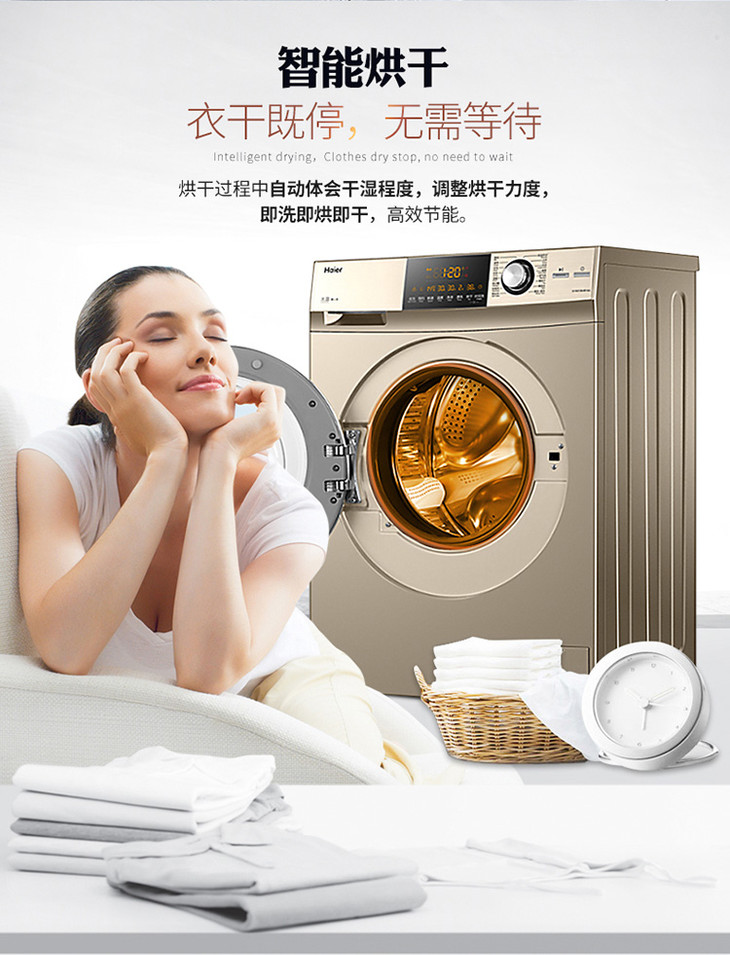 海尔(Haier)(251615)G100728HB14G全自动洗衣机滚筒 洗干一体机烘干海尔滚筒洗衣机10公斤洗烘一体直驱变