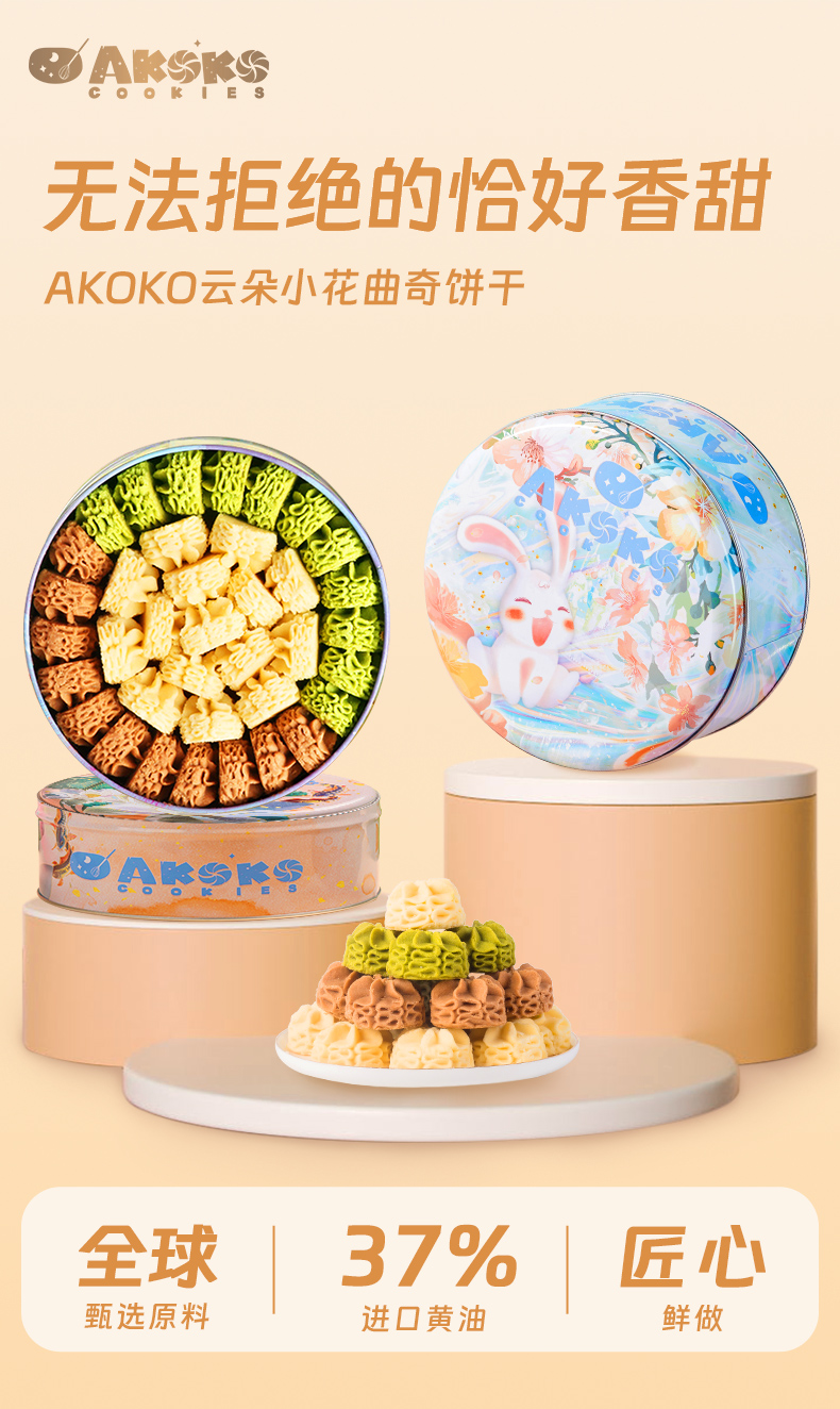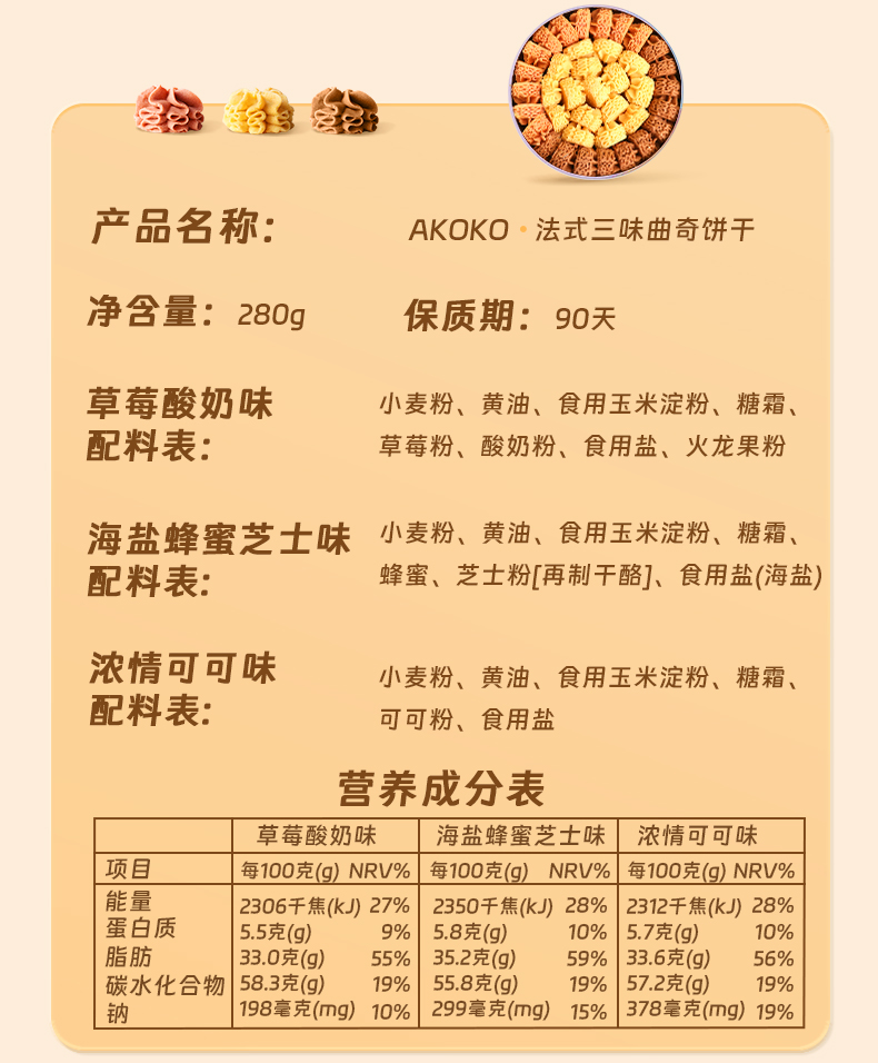AKOKO 三拼(原味+抹茶味+咖啡味)曲奇饼干 280g
