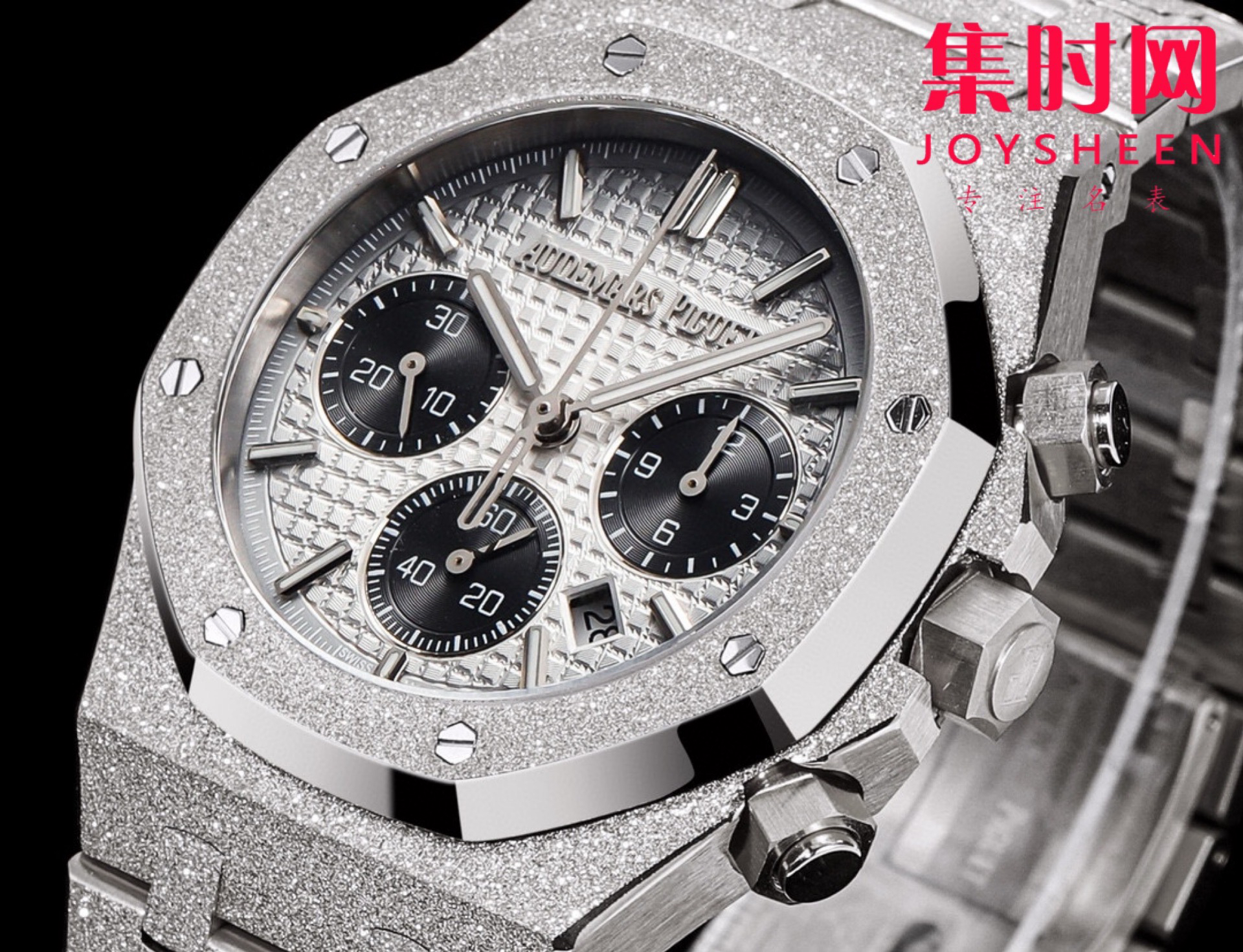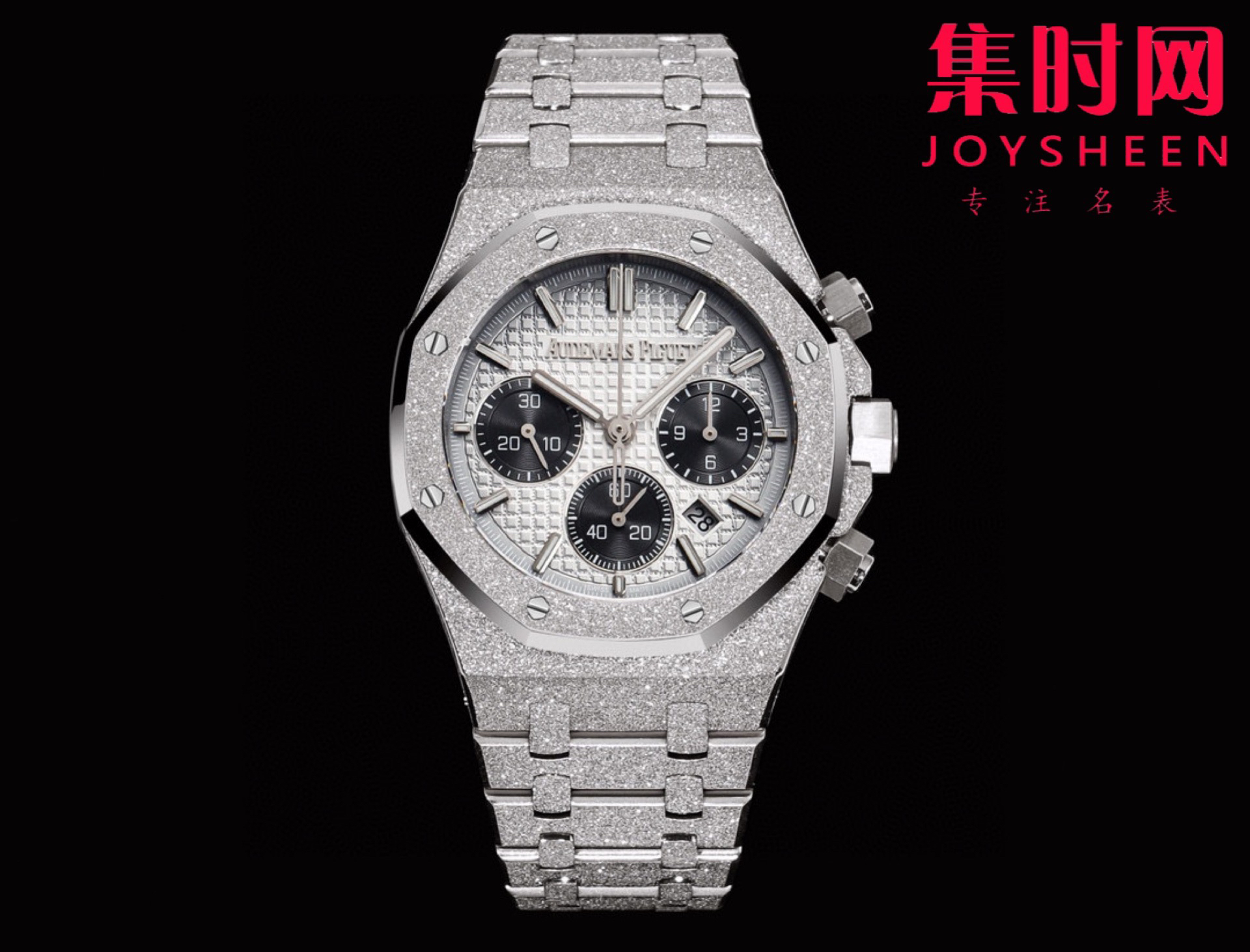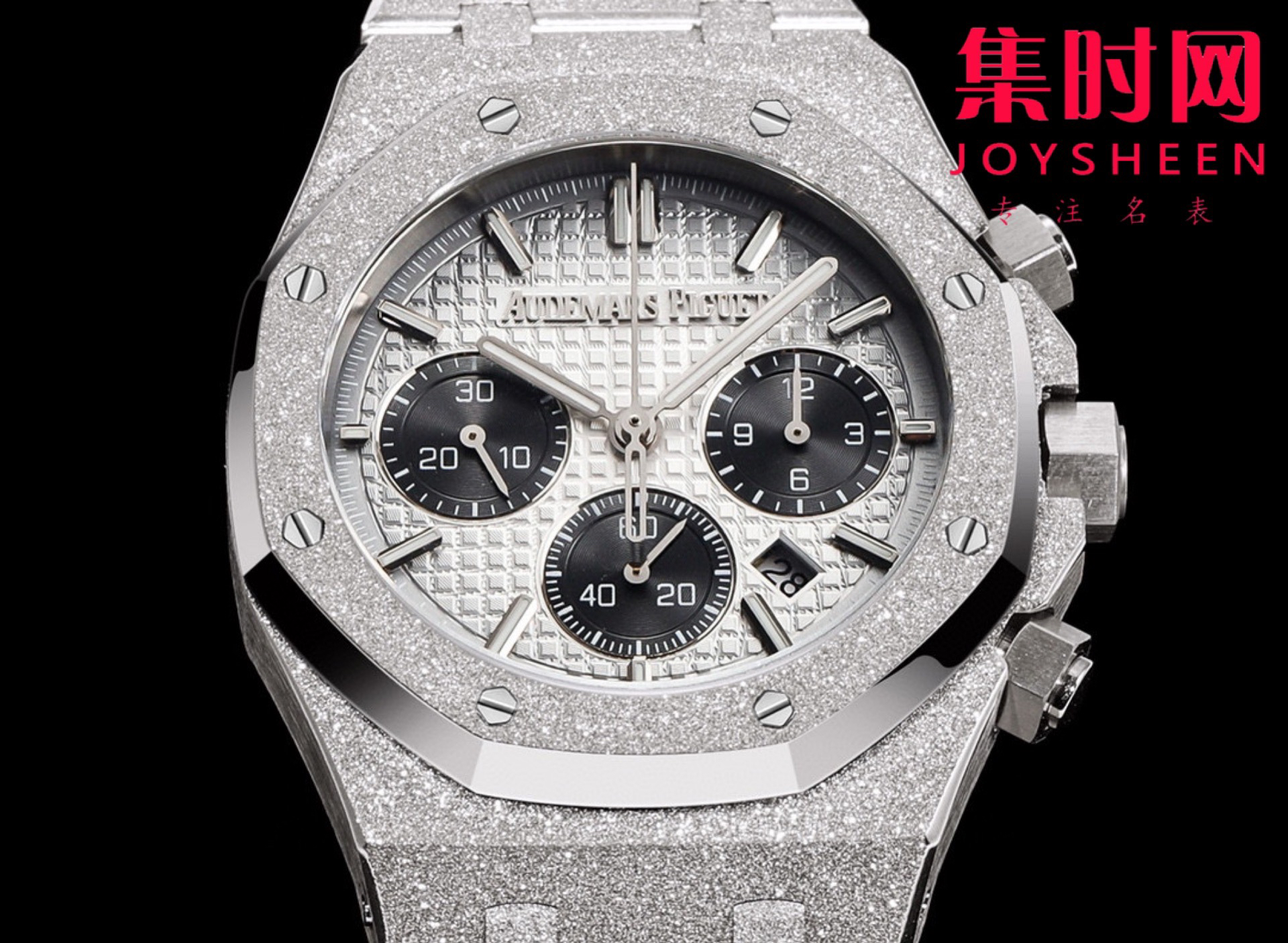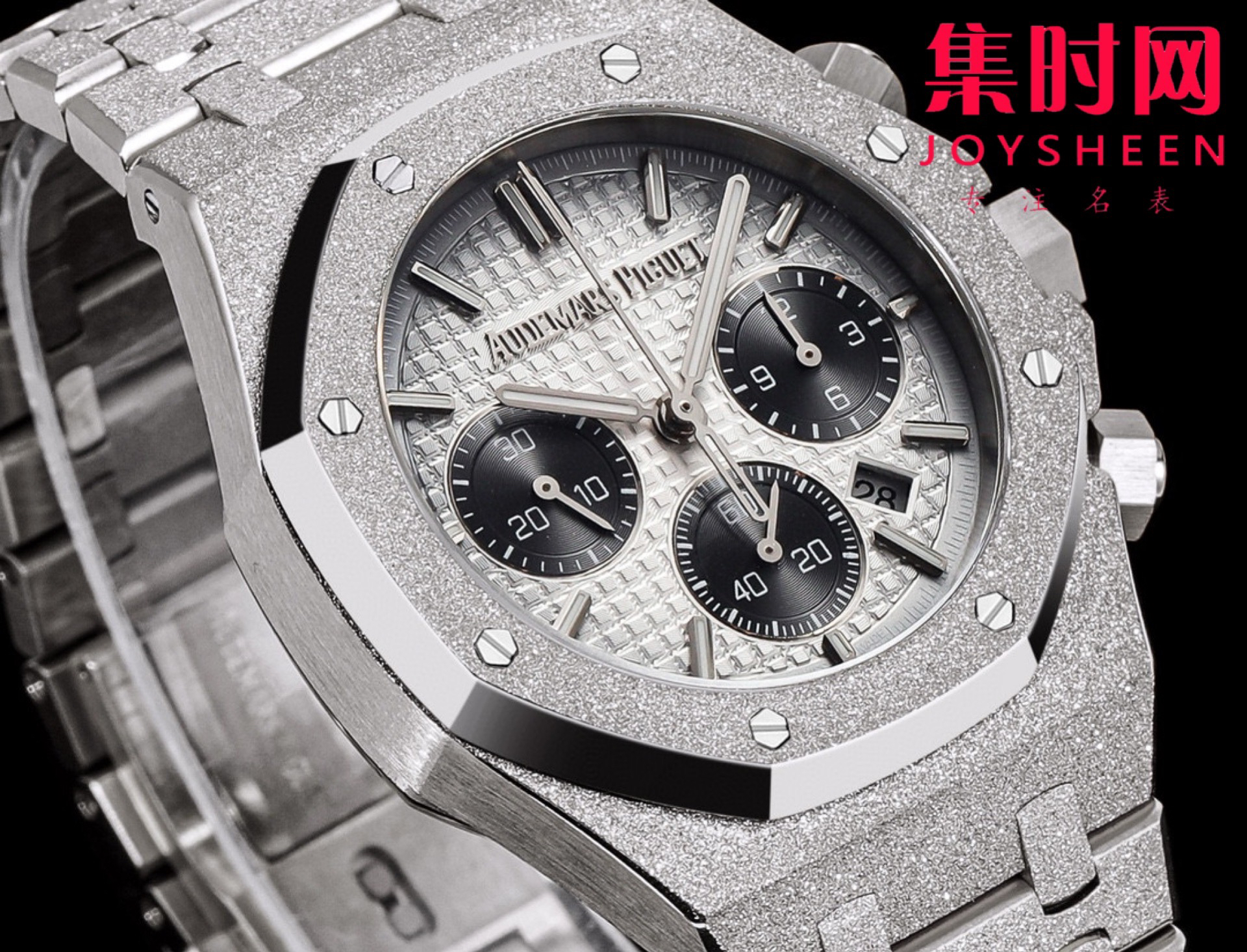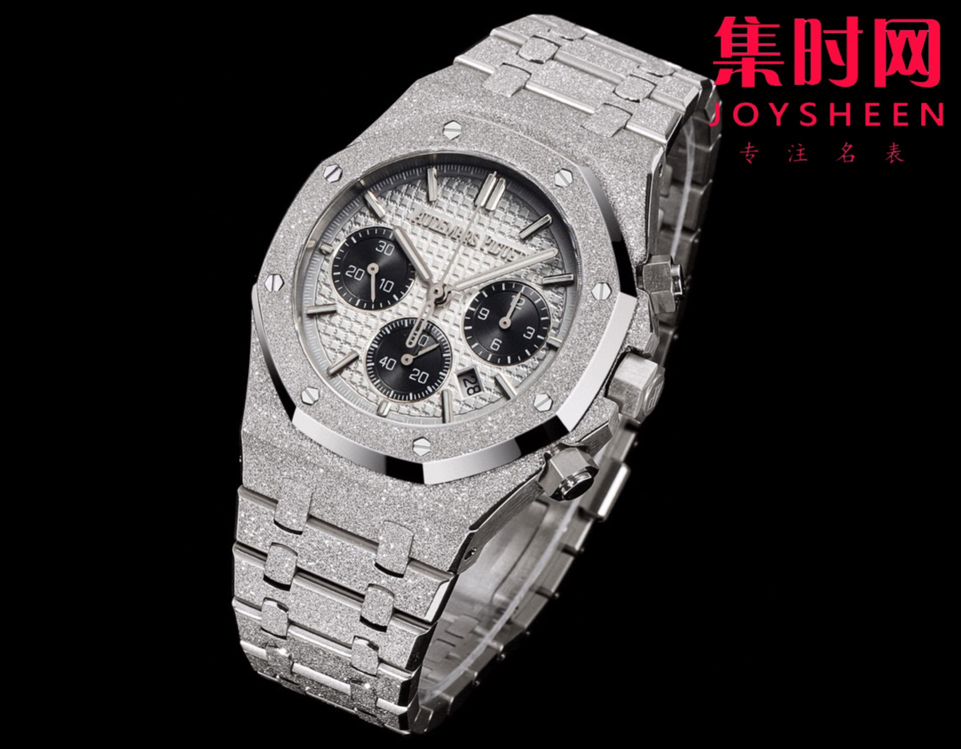 爱彼OMF新款皇家橡树26240系列“霜金”腕表 男士计时码表 采用同正品一致(6字位小秒 一体机芯通过后盖可以清晰观看齿轮的转动,搭载7750全自动机械计时机芯,搭配防眩目蓝宝石高透玻璃 指针打磨毫无毛刺,表壳精钢打造精细打磨,纹路质感都接近原装,表带采用原装表带开模表带细腻的拉丝纹不会锋利割手,表扣的开关设计和表扣的雕刻工艺均于正品一致,字面还原原装做工于颜色细节和正品放在一起无破绽,表径41mm 粗犷大气,劲道十足,超强夜光显示,可以在任何环境下读取时间!