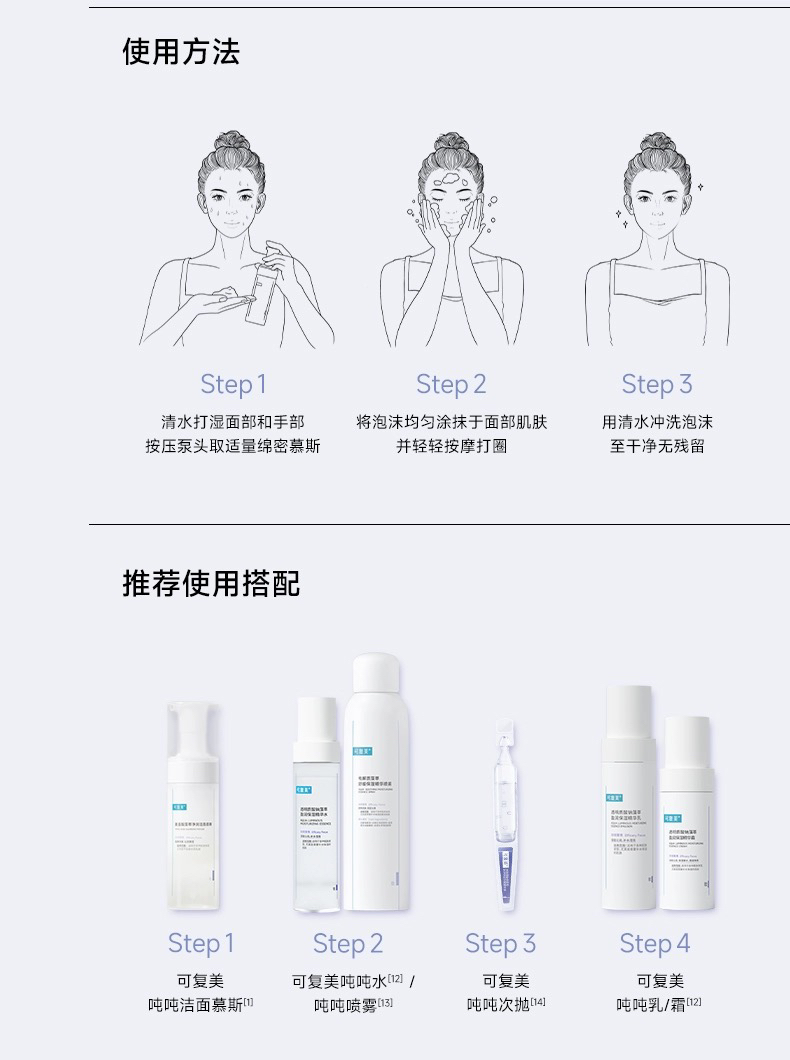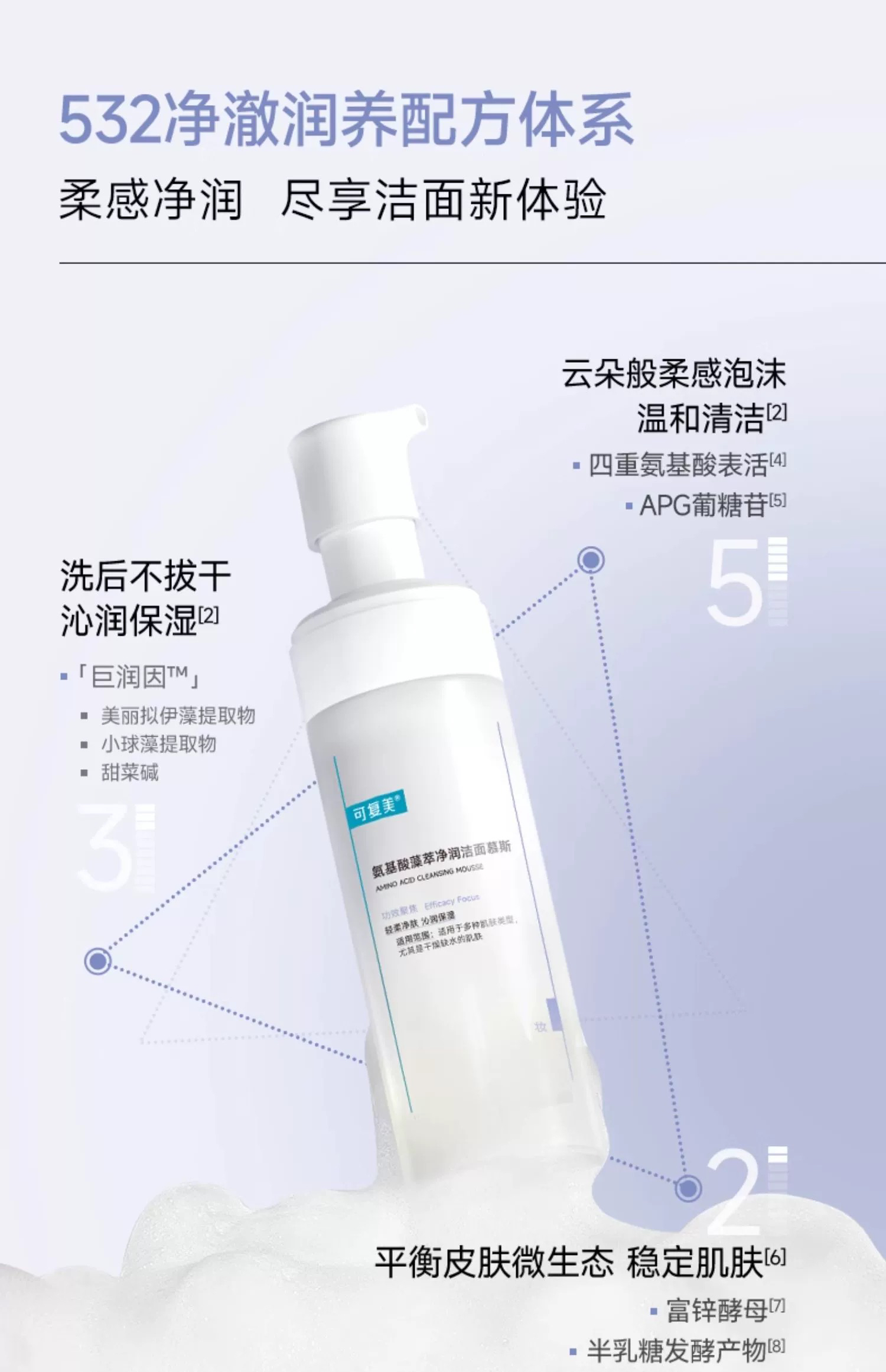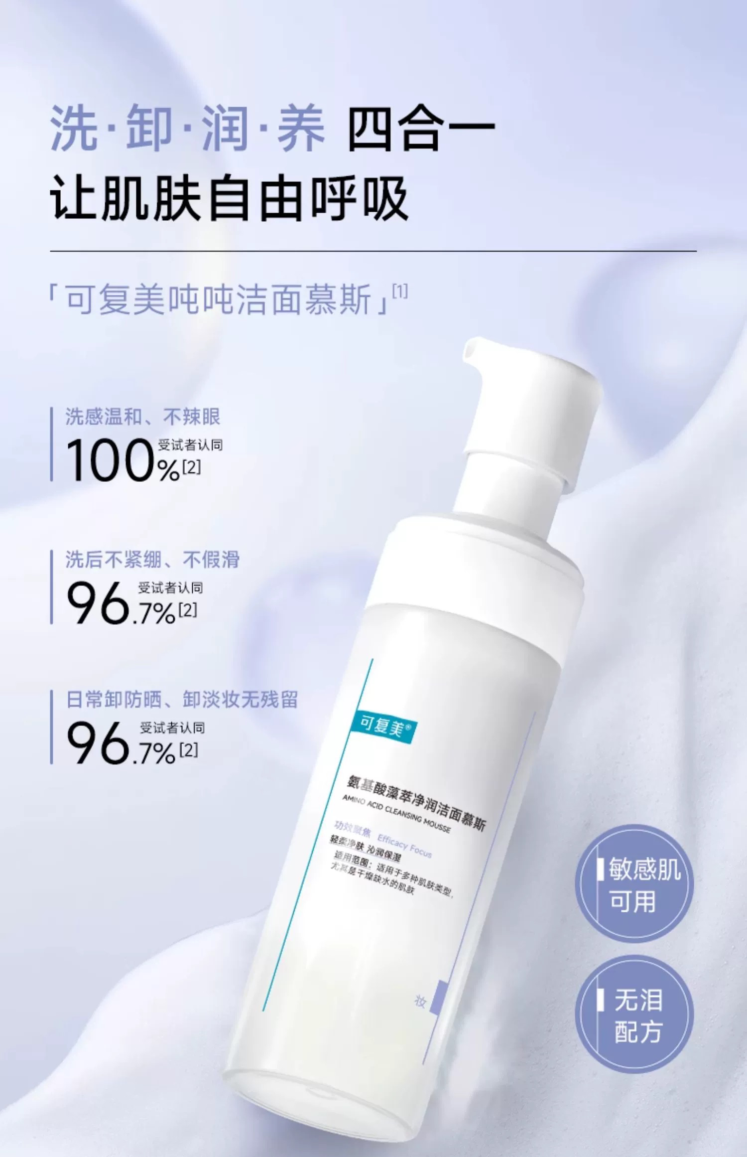 【敏感肌首选】可复美 氨基酸藻萃保湿泡沫洗面奶(吨吨摩丝)150ml