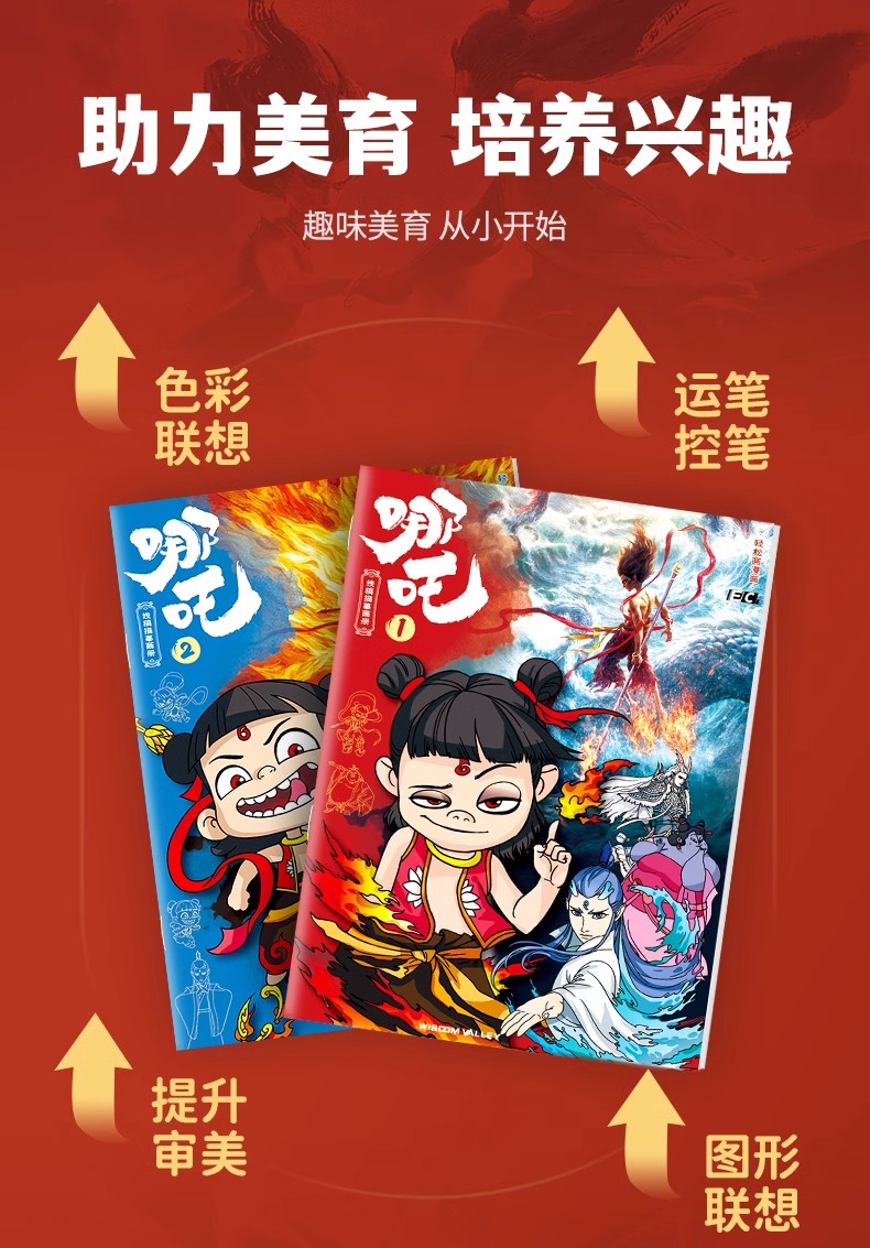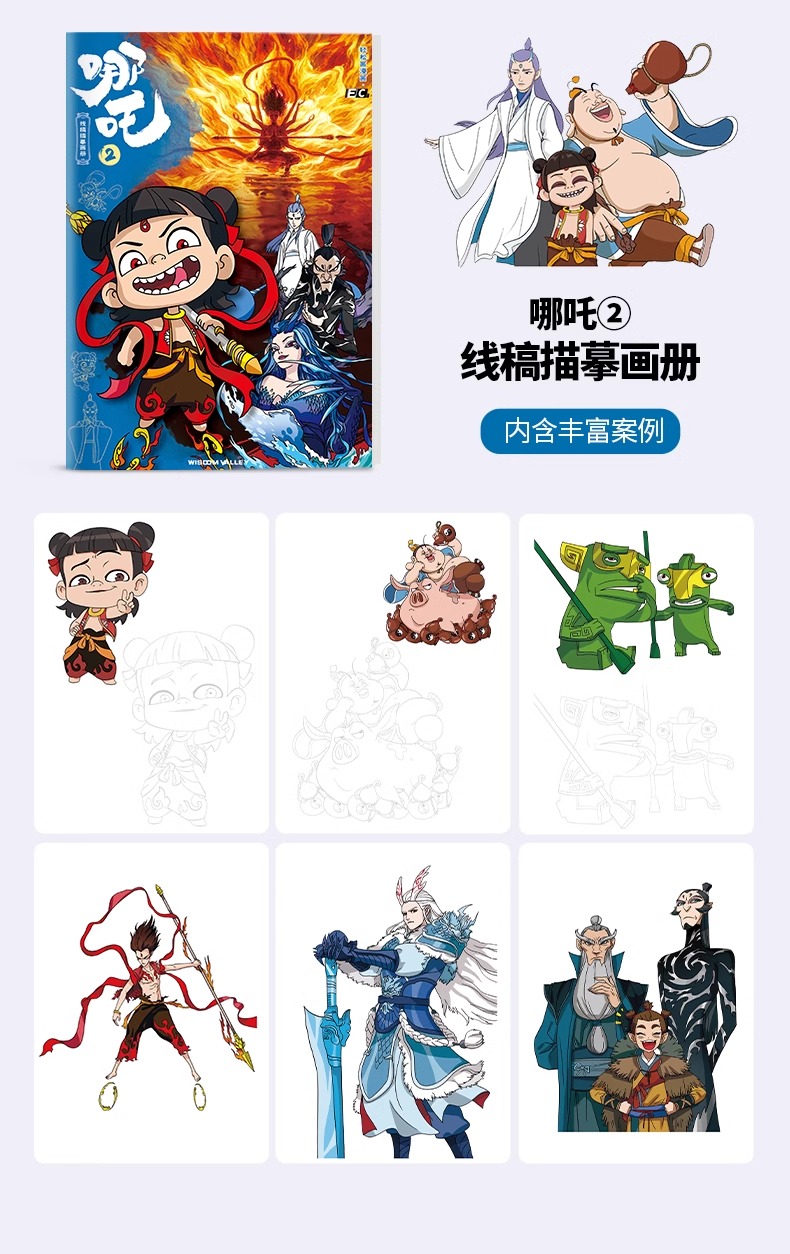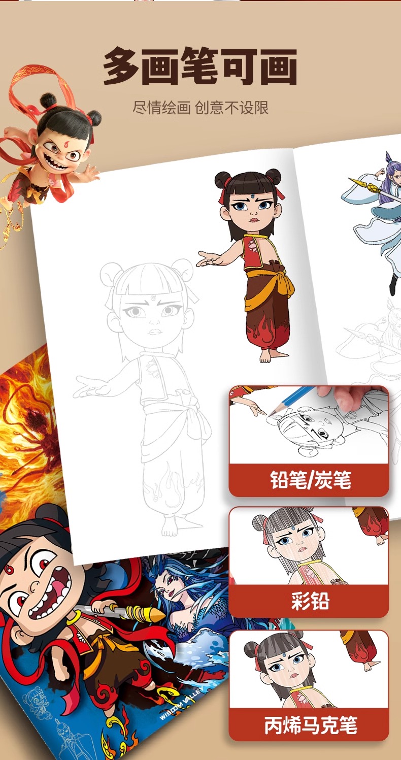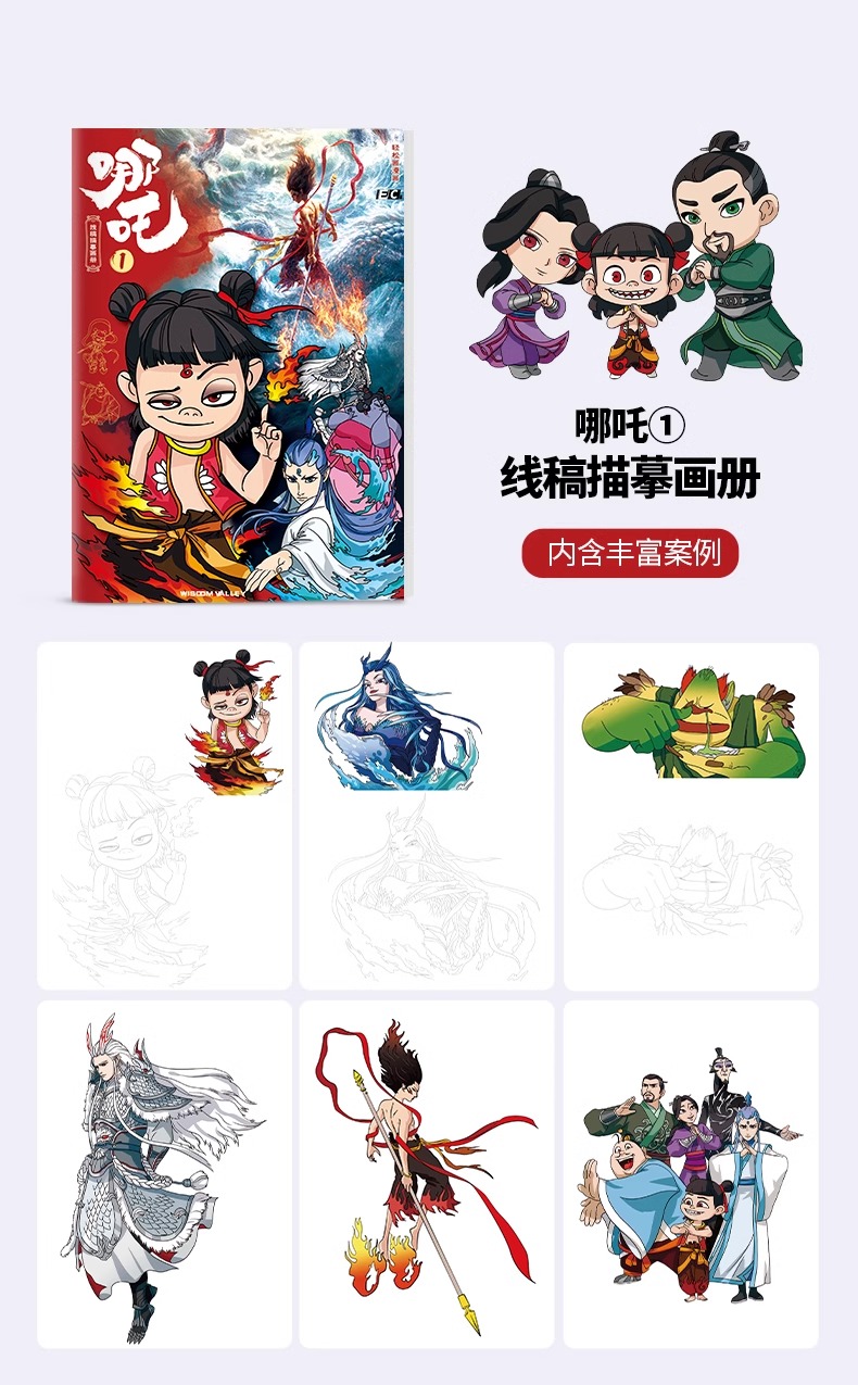 【2本赠送24色丙烯马克笔】哪吒之魔童闹海描摹本降世电影周边图画本3岁6儿童涂鸦描绘画画本敖丙申公豹动漫线稿绘画本幼儿园专用涂色本