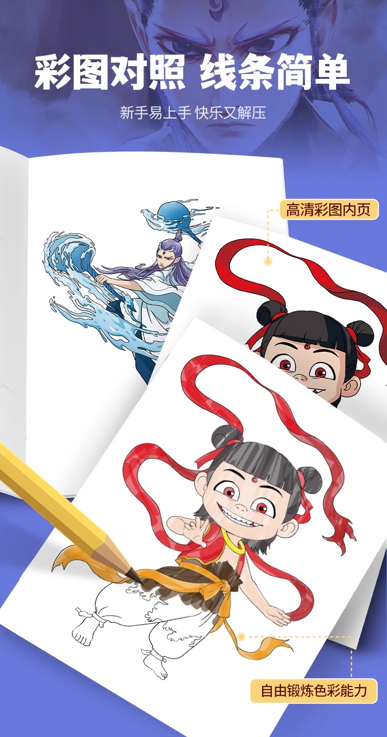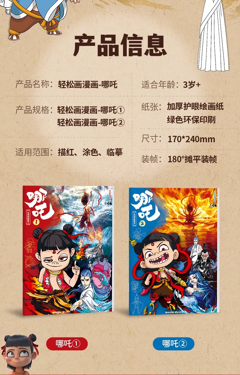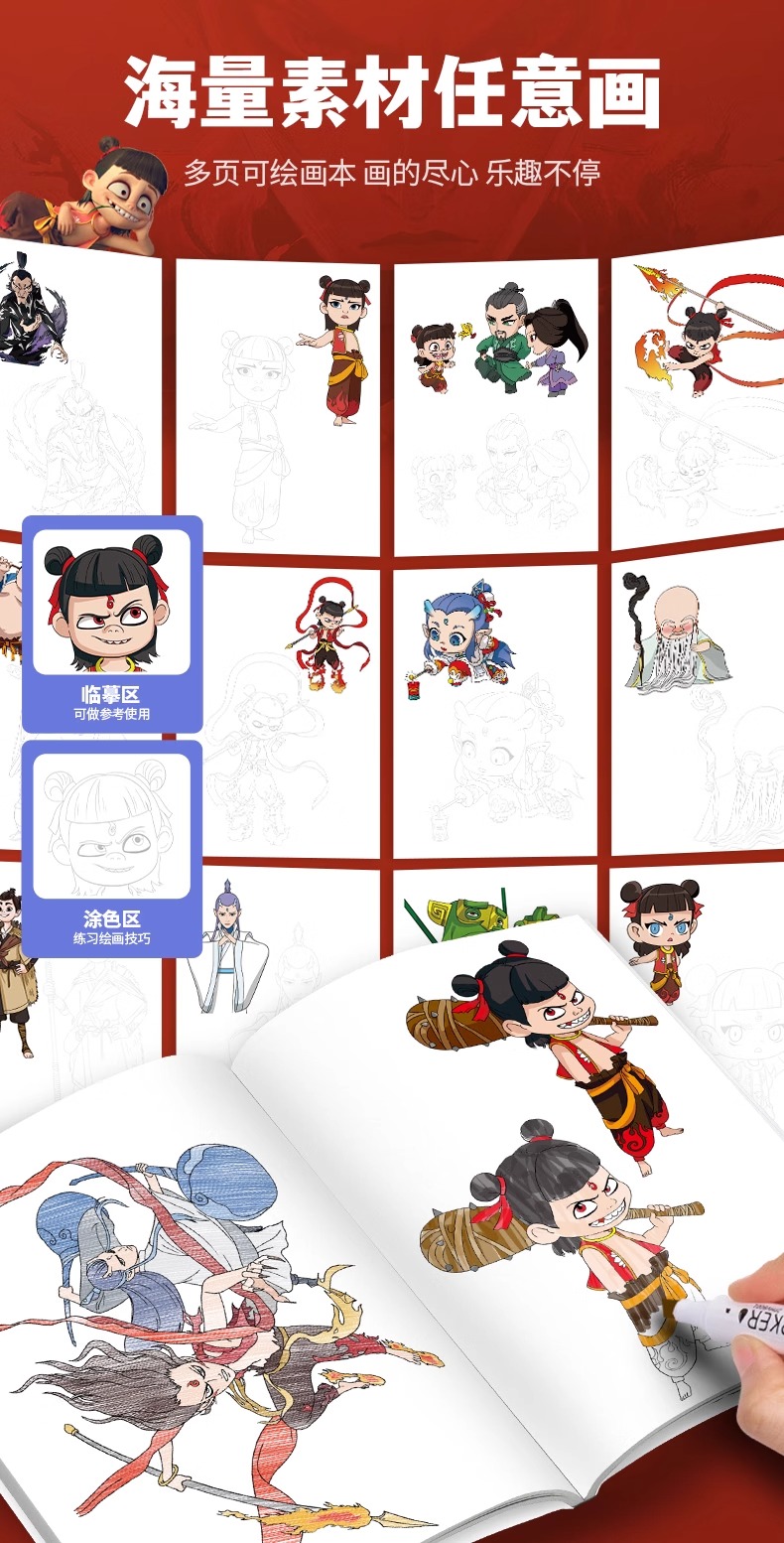 【2本赠送24色丙烯马克笔】哪吒之魔童闹海描摹本降世电影周边图画本3岁6儿童涂鸦描绘画画本敖丙申公豹动漫线稿绘画本幼儿园专用涂色本