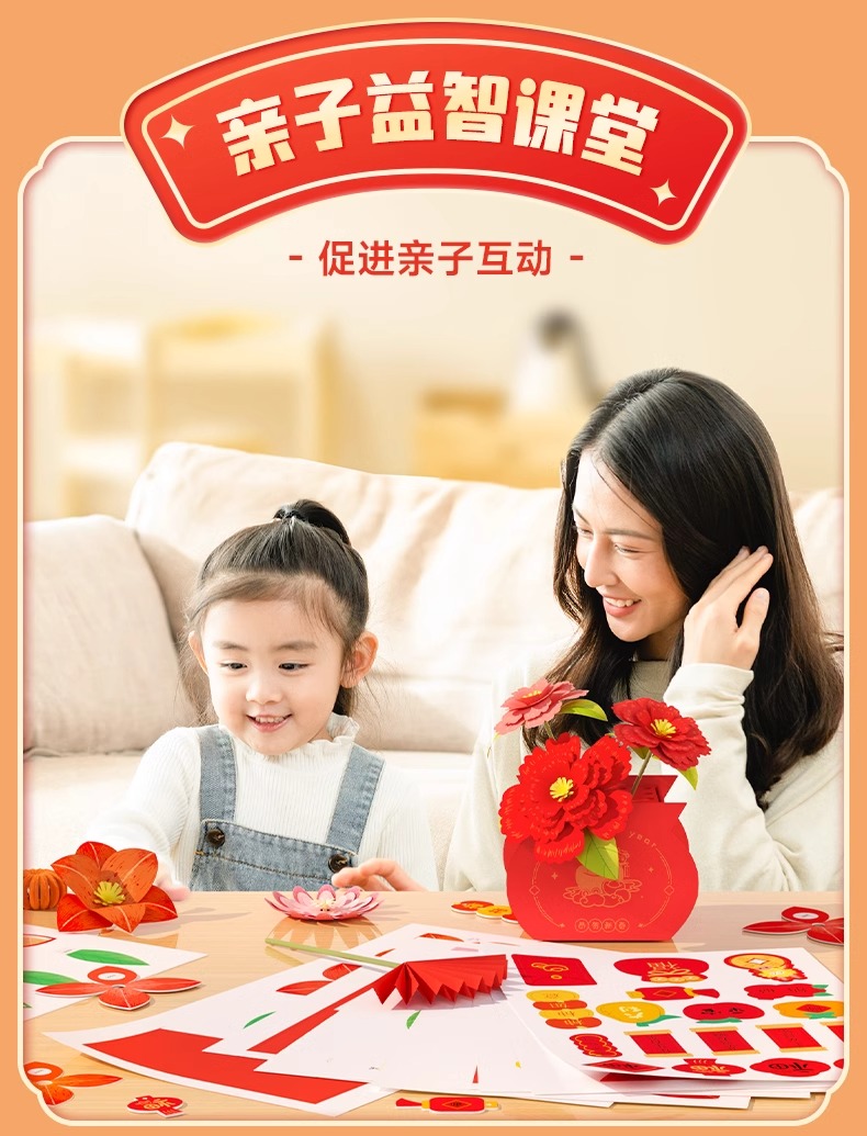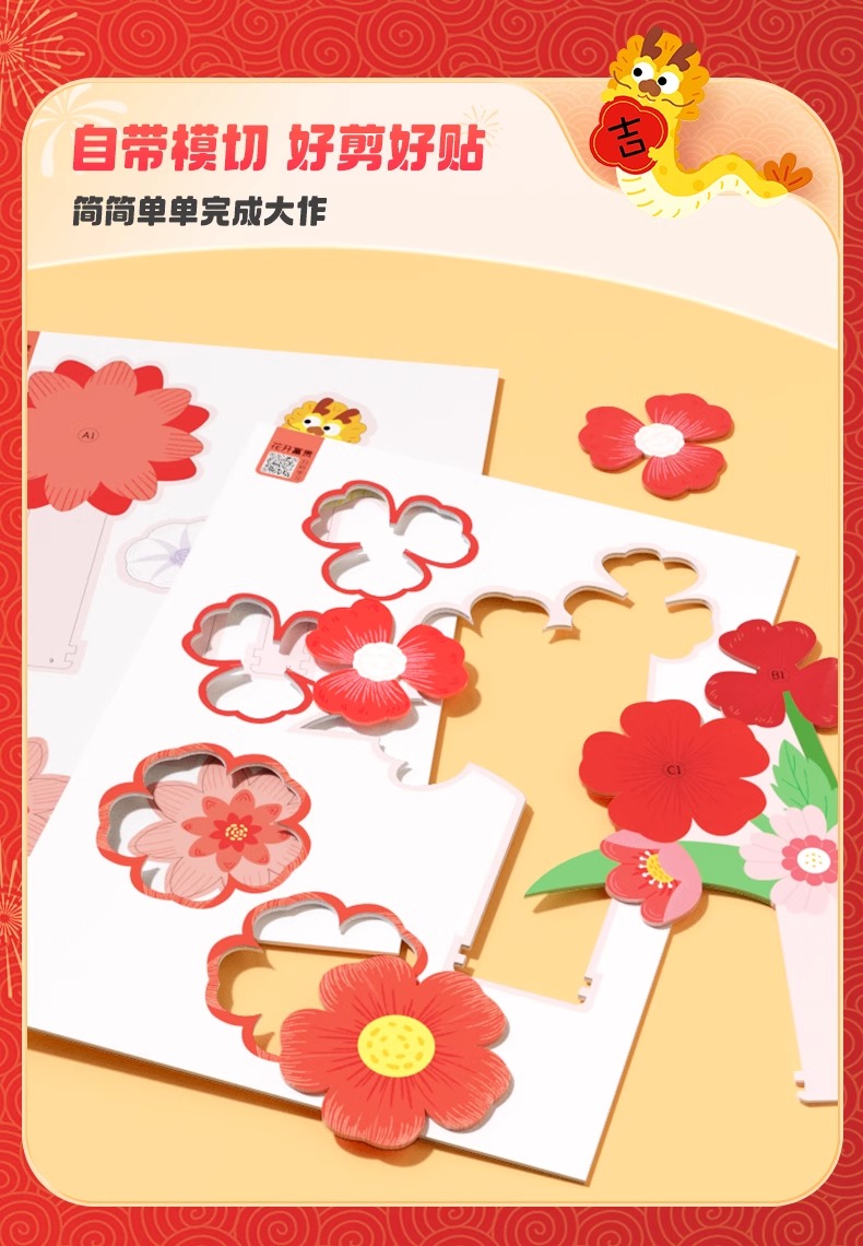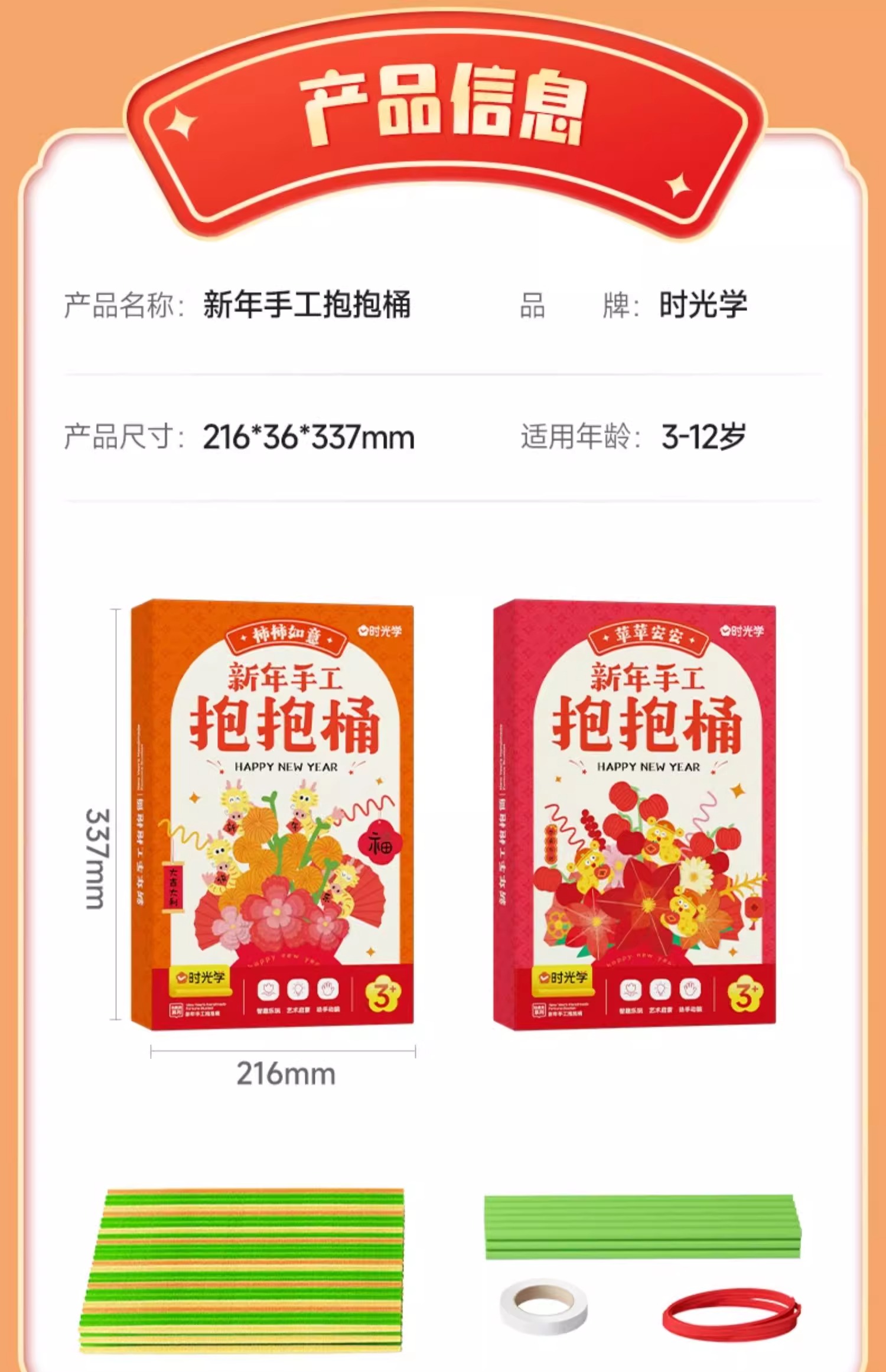 【时光学】新年手工抱抱桶花束年宵花diy材料萍萍安安柿柿如意幼儿园小学儿童创意花束