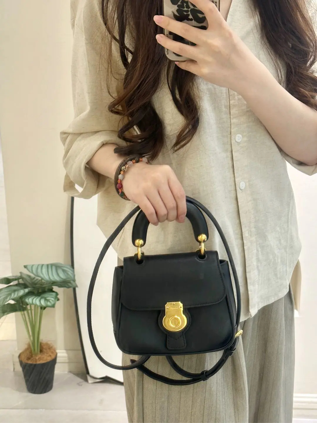 巴宝莉 DK88 黑金 牛皮 中号 斜挎包