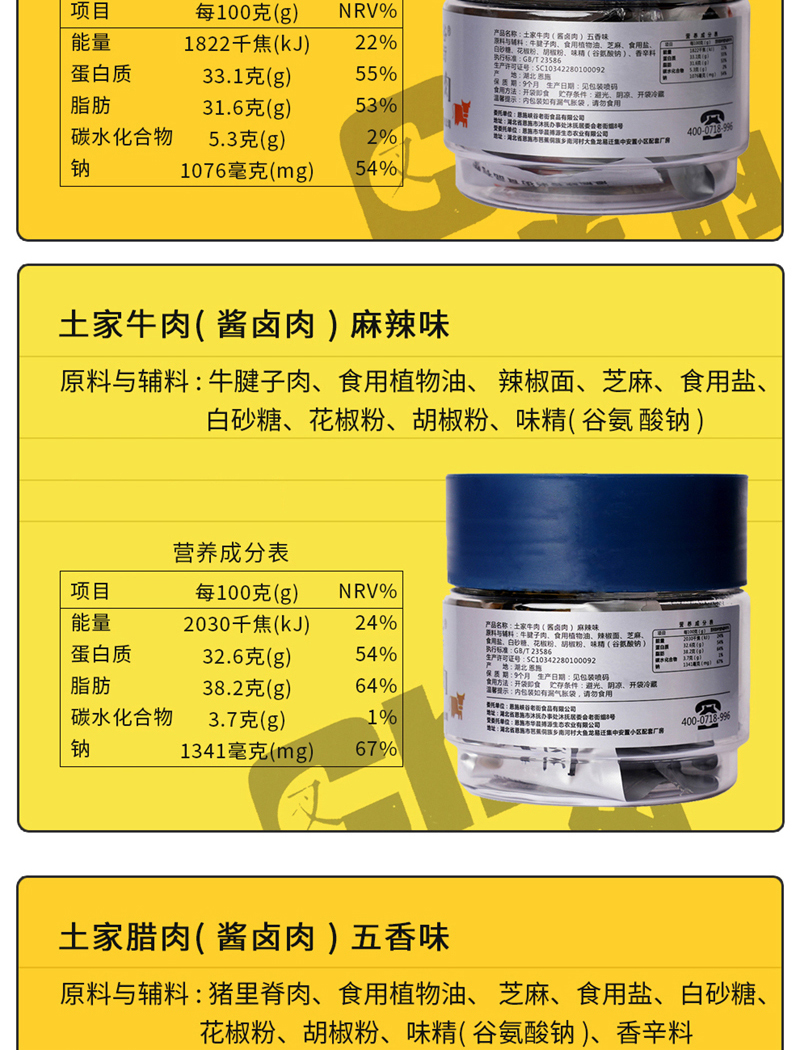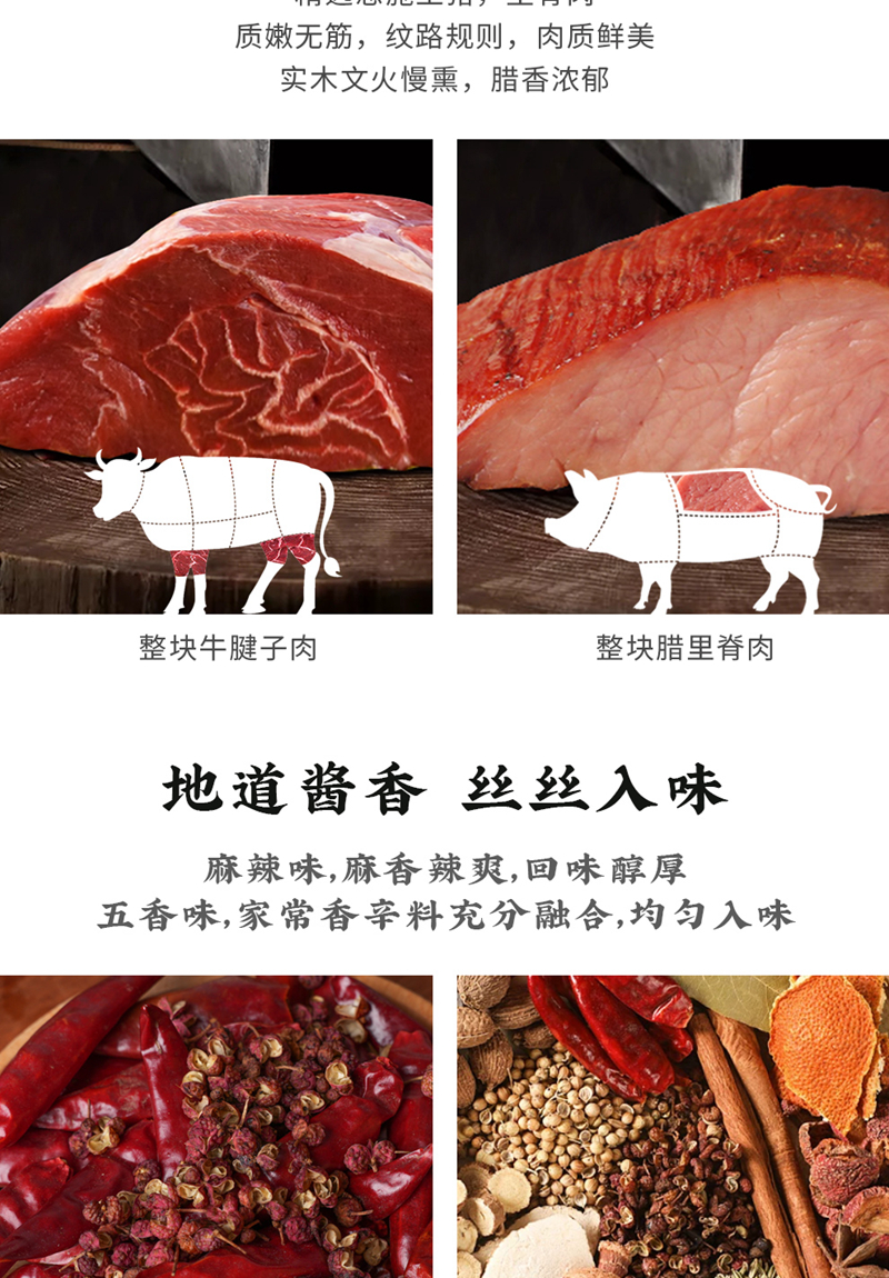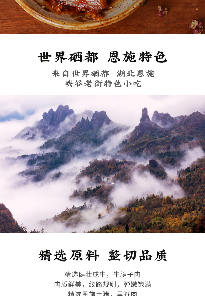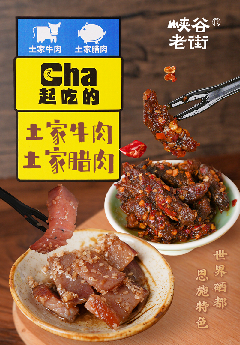 恩施 峡谷老街 土家牛肉干 腊肉干 五香麻辣组合 礼袋装 100克*8罐 800克/提