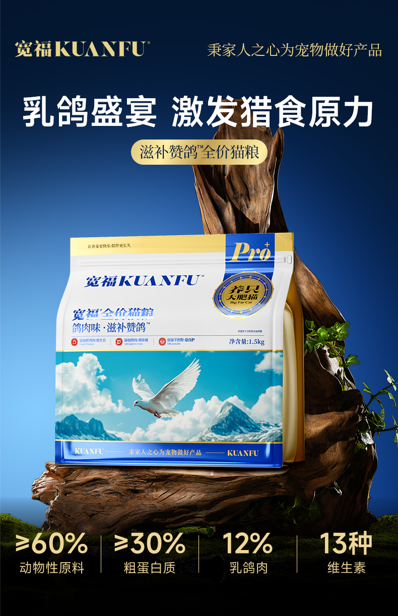 【滋补赞鸽猫粮】宽福 乳鸽鲜鸡激发食欲 甄选鸽肉科学助长肉 全脂羊奶助益免疫 无肉粉无诱食剂高鲜肉 低油高蛋白 助于骨骼发育