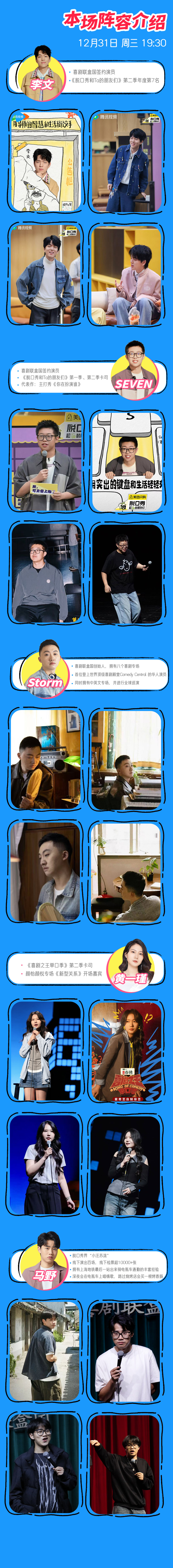 【上海】12月31日19:30场 【脱友】李文|Seven|Storm|【喜单】黄一瑾|喜剧联盒国综艺卡司明星秀