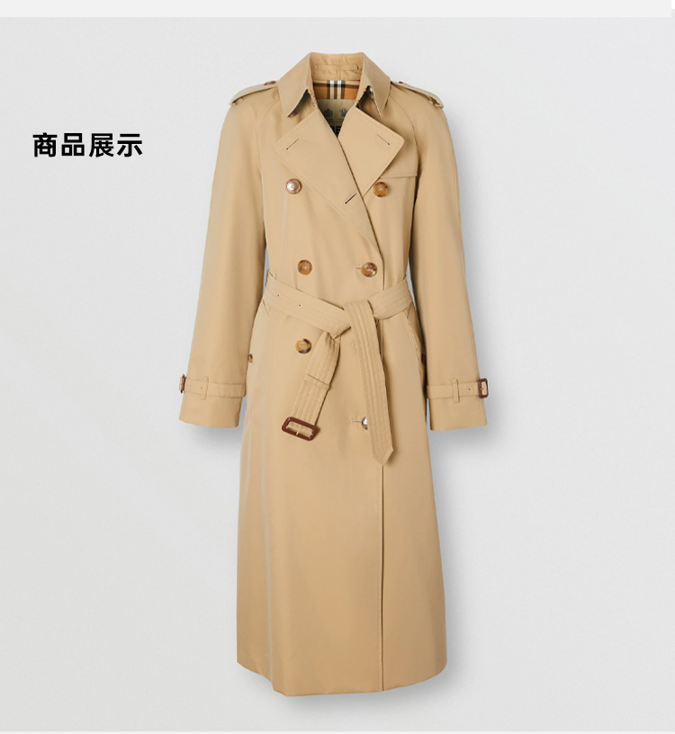 BURBERRY 巴宝莉 女士滑铁卢版型 – 长款 Heritage Trench 束腰风衣 卡其色 8045785 A1366