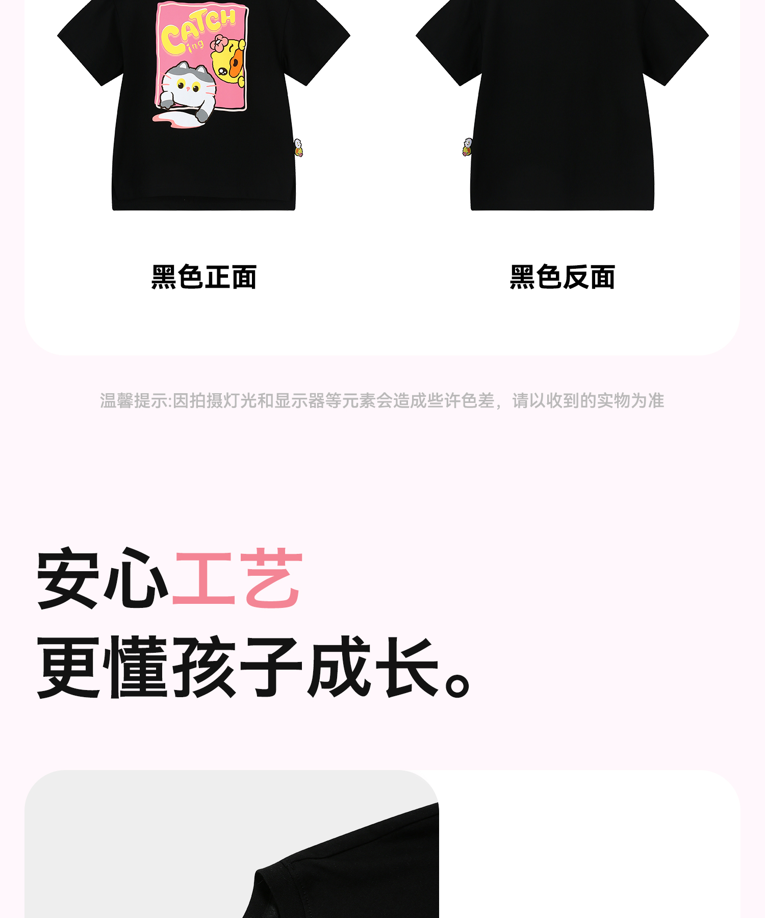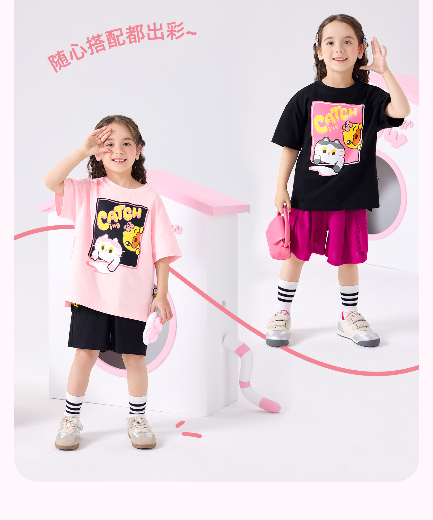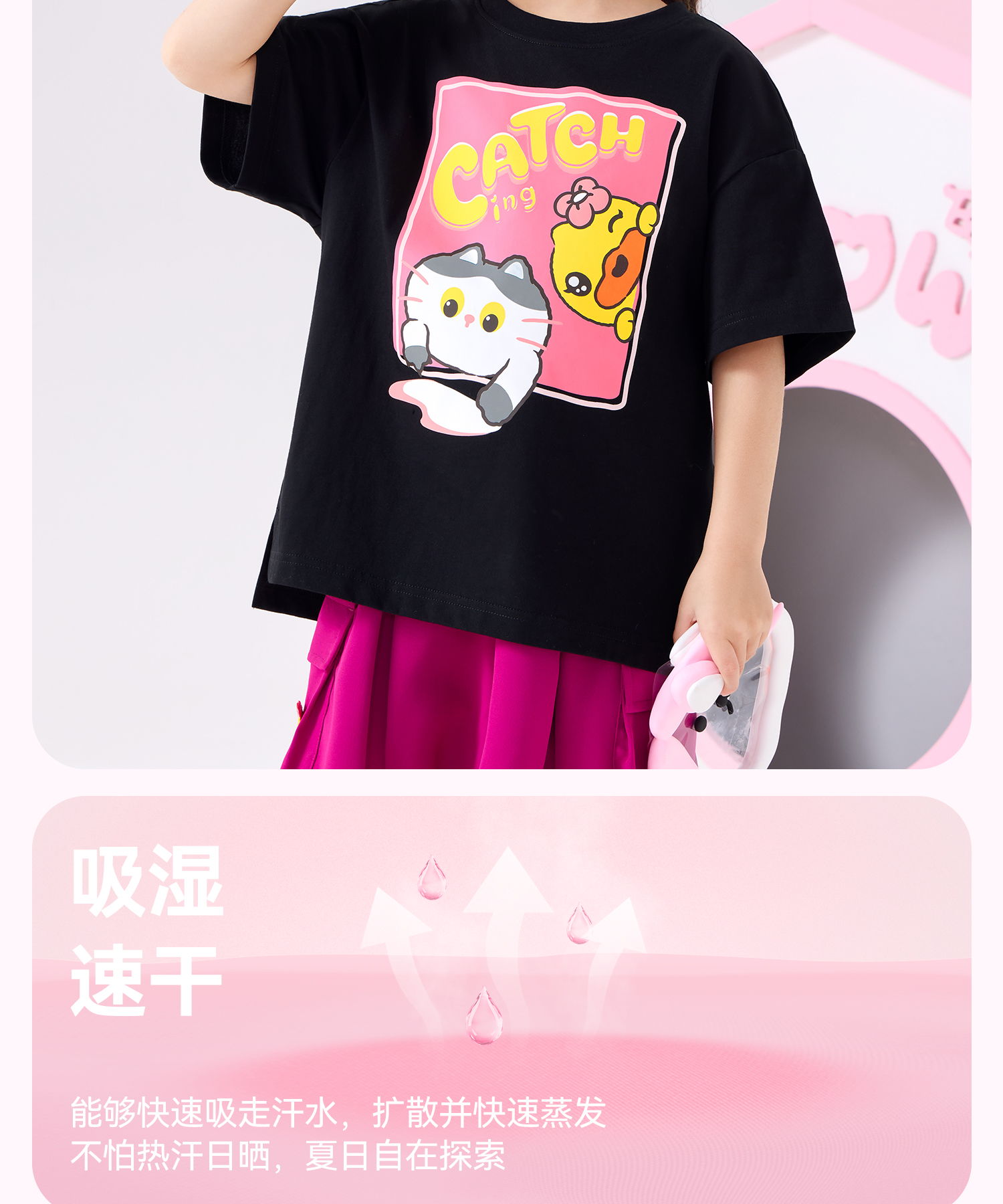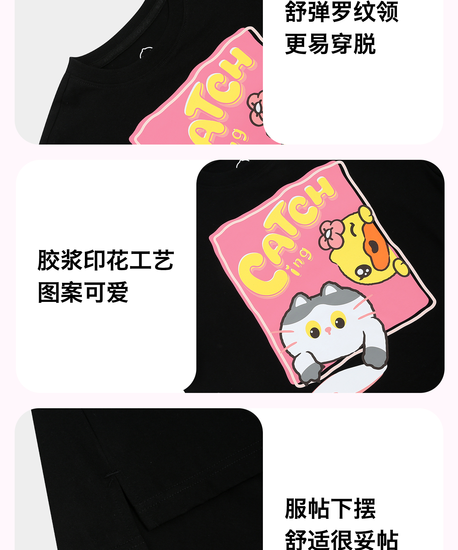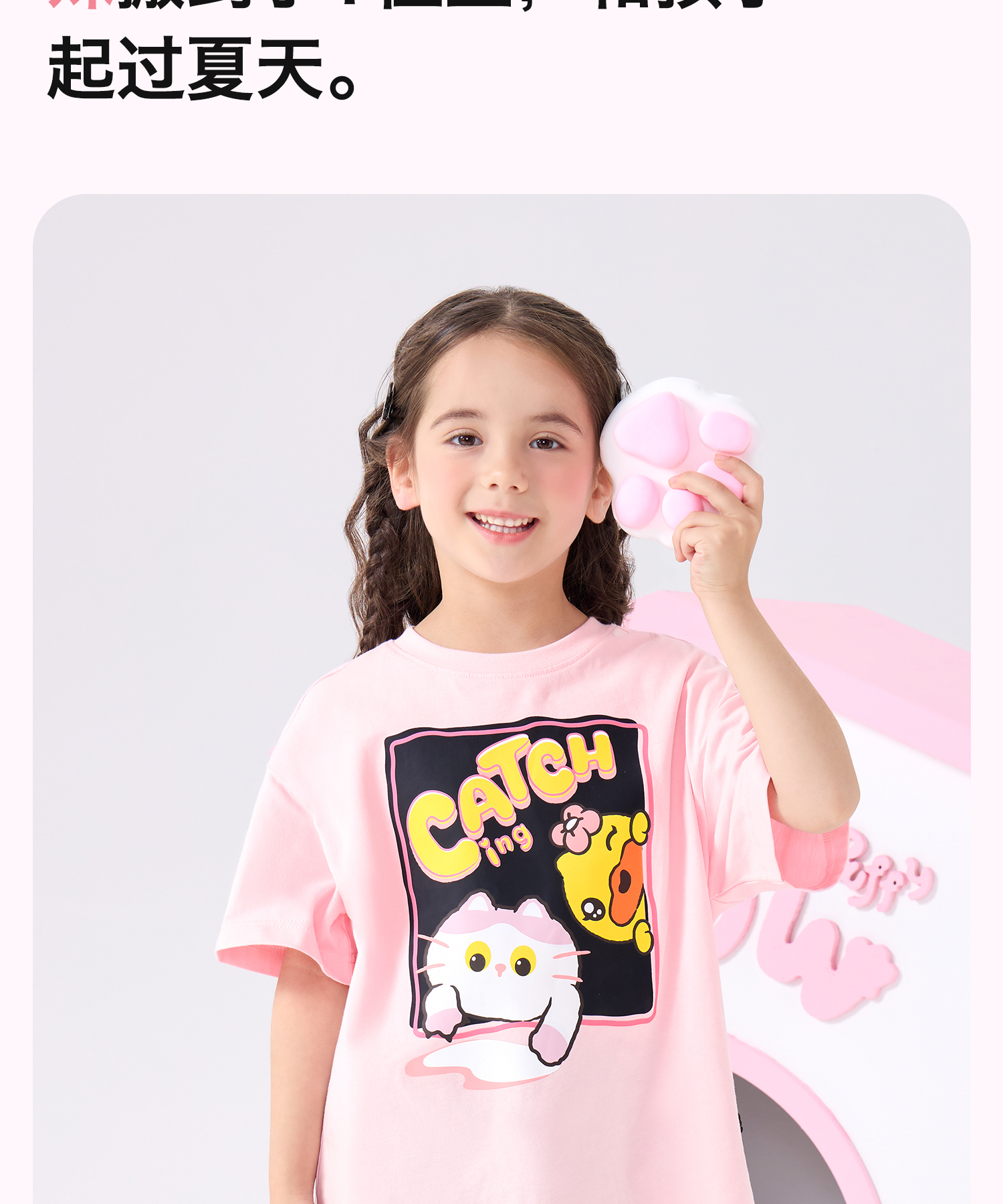 bduck小黄鸭童装夏季女童短袖T恤纯棉夏装小女孩半袖上衣儿童猫咪印花105-150 FF2601012