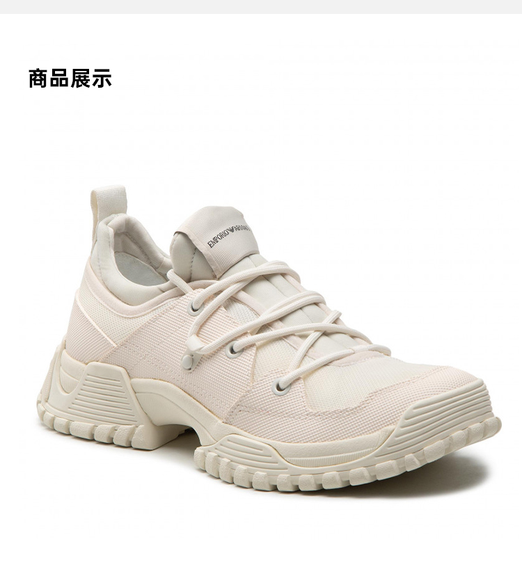 EMPORIO ARMANI 阿玛尼 男士棉质字母徽标系带休闲运动鞋 米色 X4X584 XN648 R393