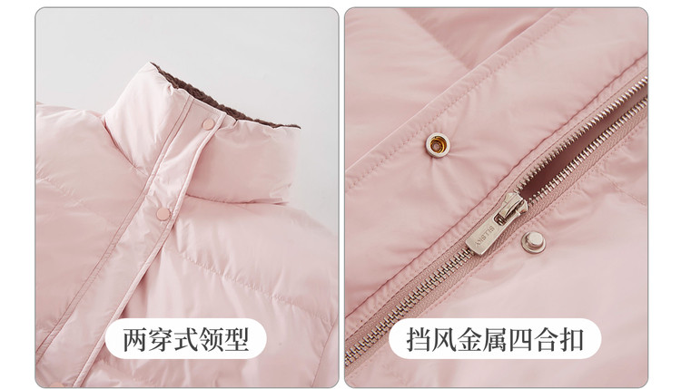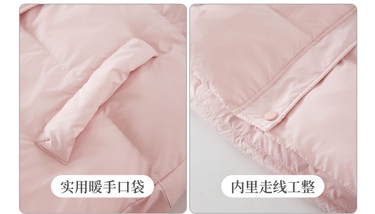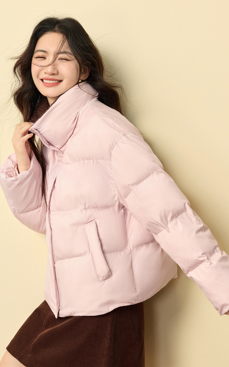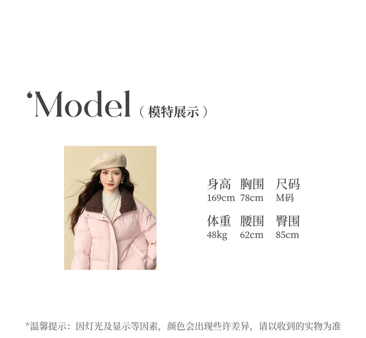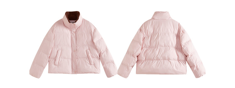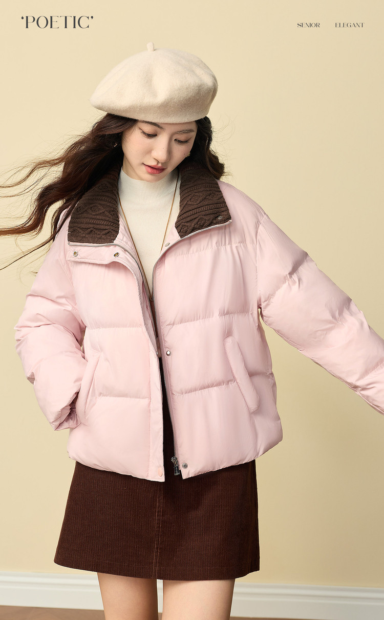 【12/24新品6.5折】熙世界泡芙保暖粉色棉服外套女2025冬装新款毛织拼接立领短款棉衣