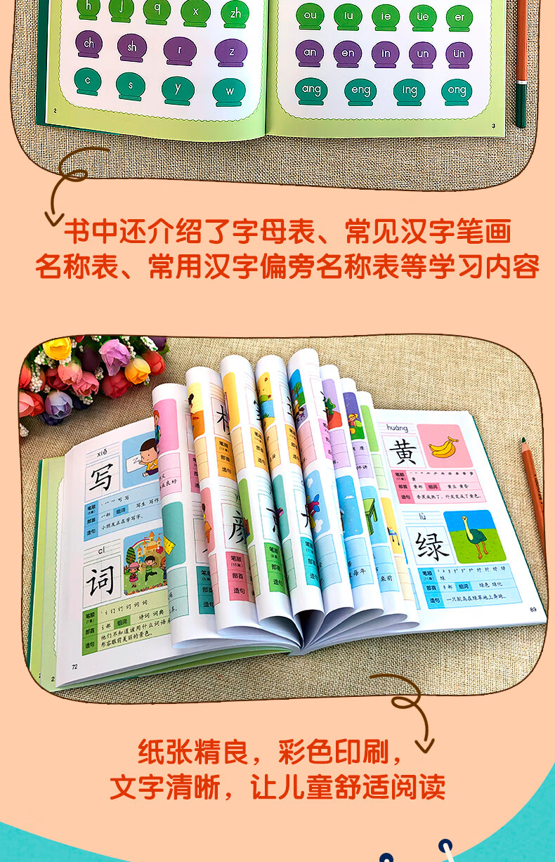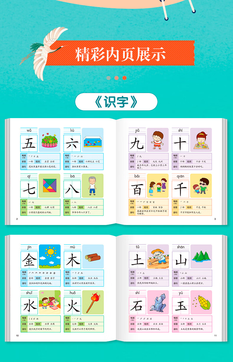 识字内容包括拼音、笔顺、笔画、部首、组词等,让儿童轻松学,灵活用。