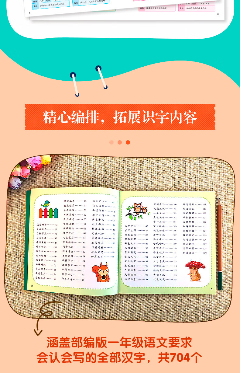 全书共704个汉字,涵盖部编版一年级语文要求会认、会写的全部汉字。