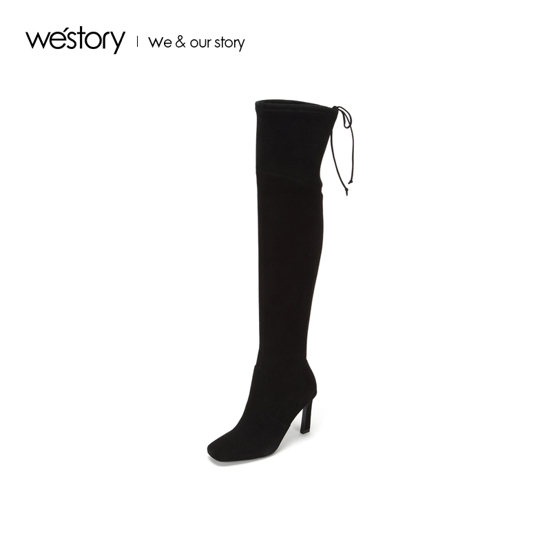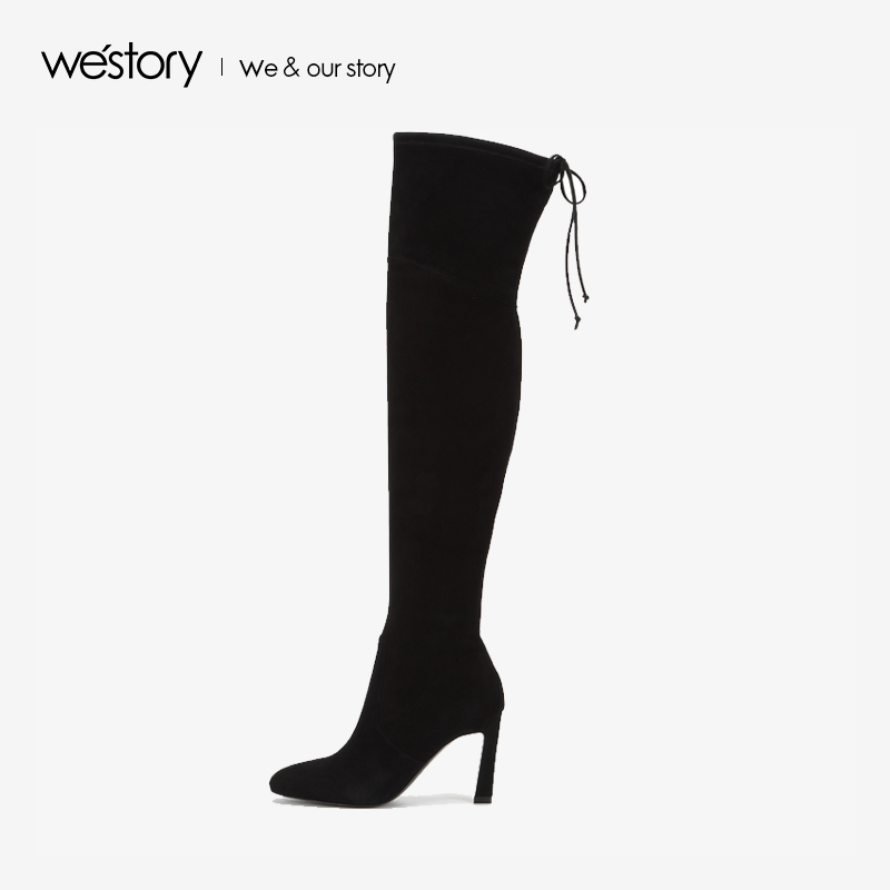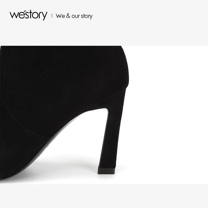 westory2018年冬季新款长筒靴弹力靴高跟绒面瘦瘦靴女W284I80041