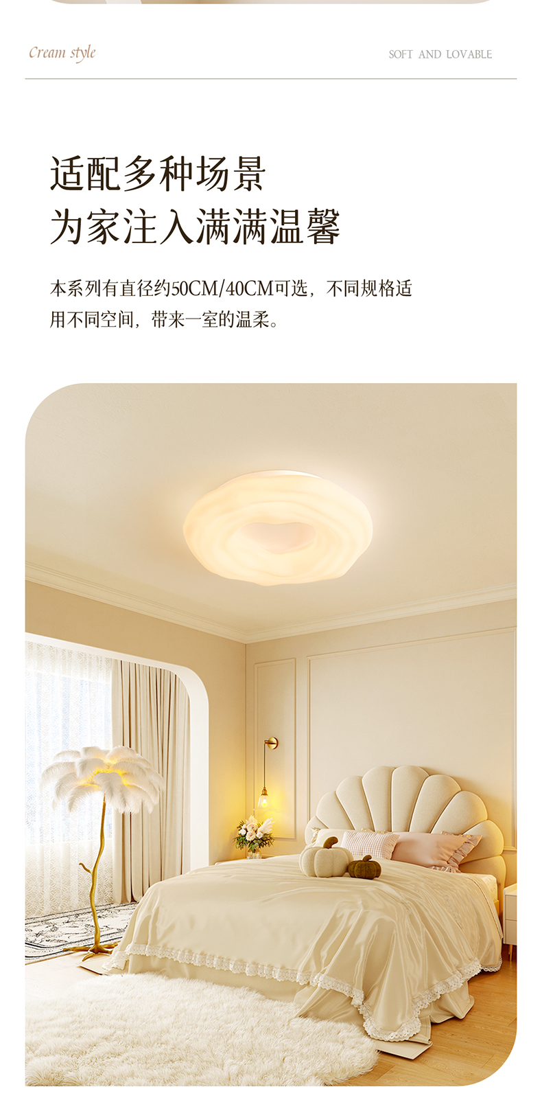 欧普(OPPLE)led吸顶灯具家用奶油风卧室灯奶油曲奇儿童现代简约馨房间灯