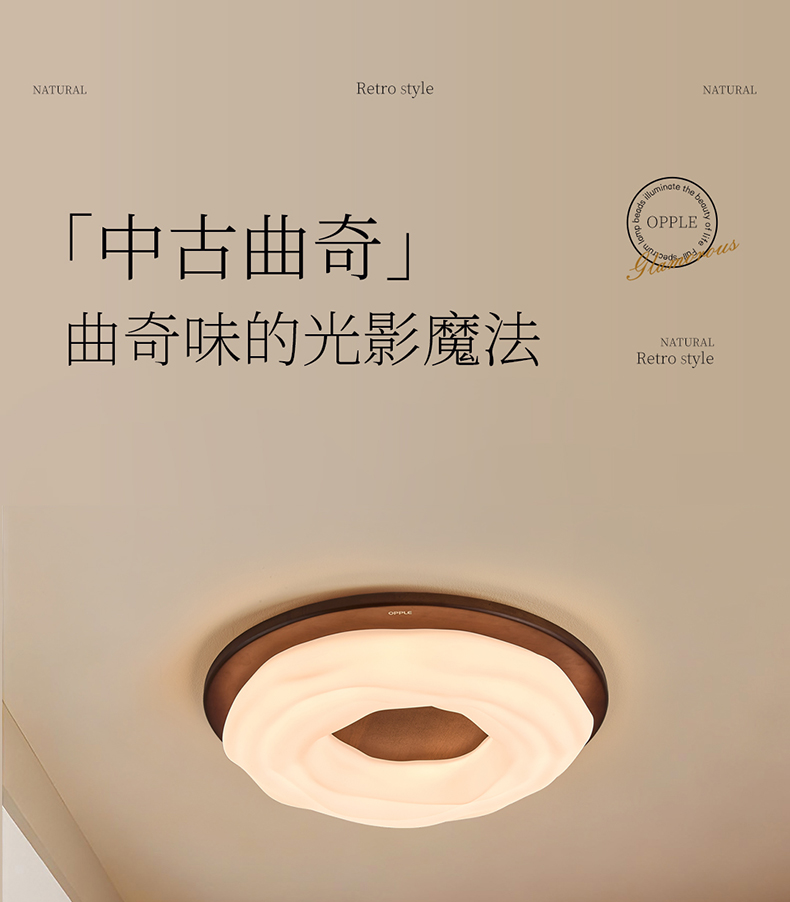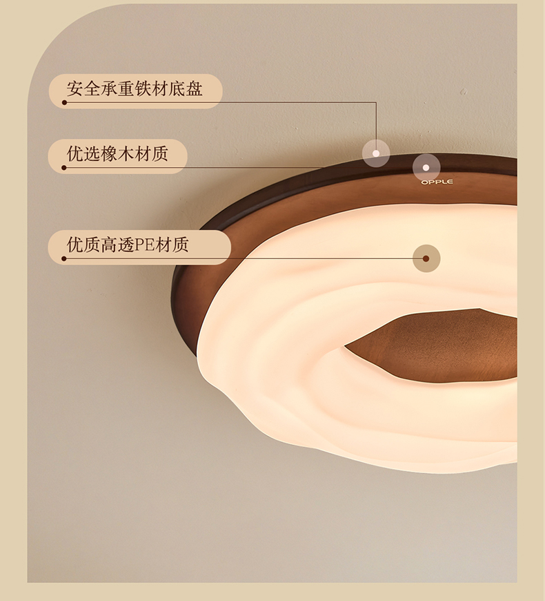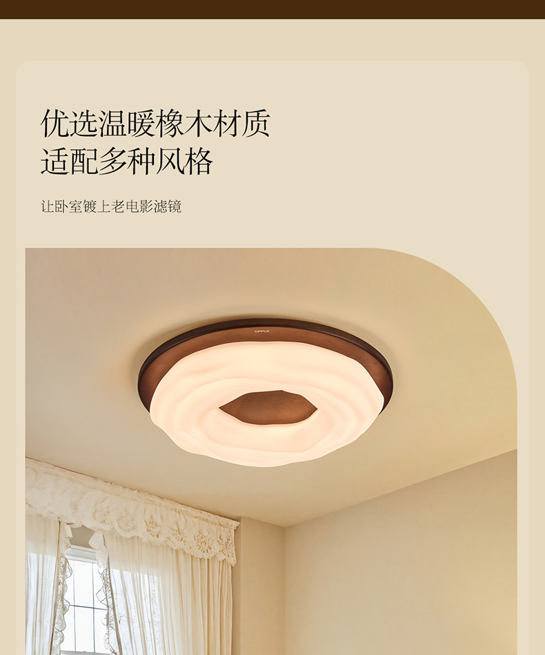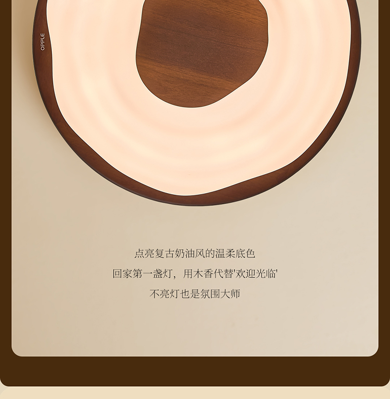 爆款🔥OPPLE欧普照明中古风曲奇26款卧室奶油风侘寂极简智控儿童房胡桃木色吸顶灯