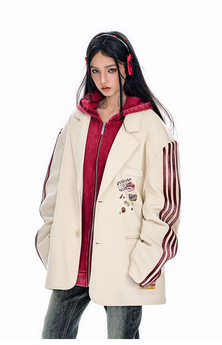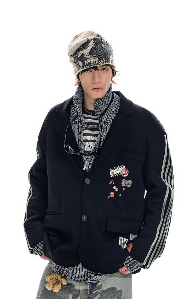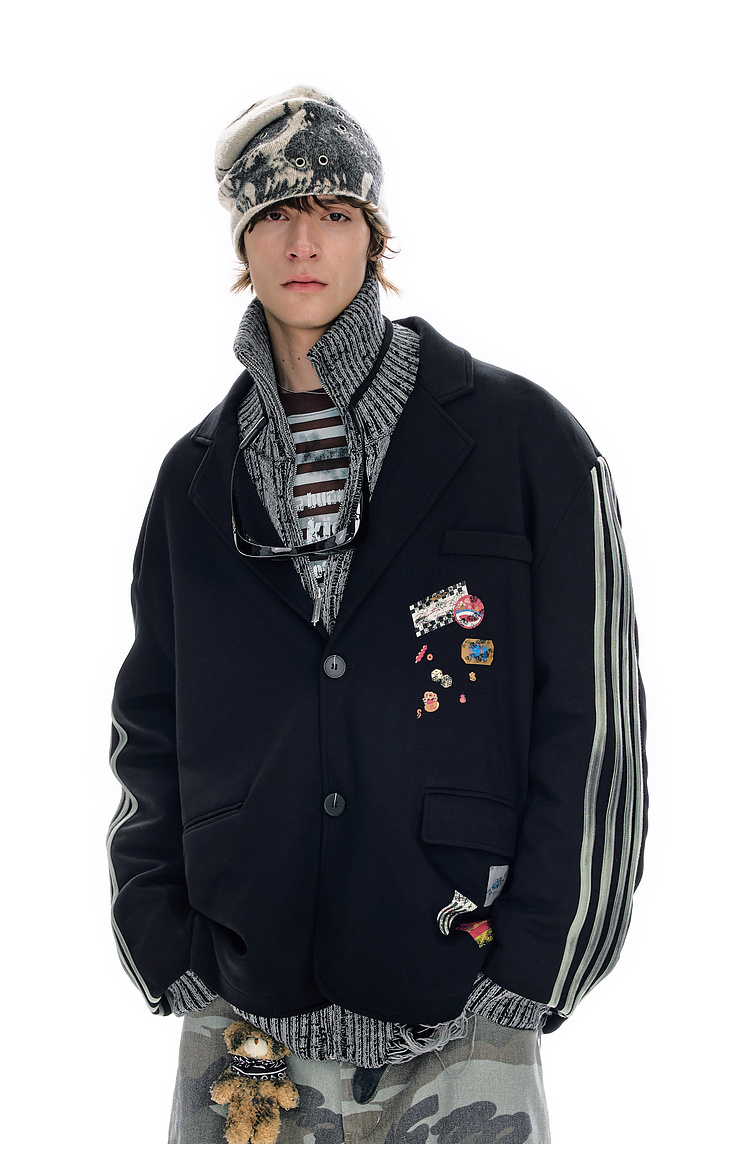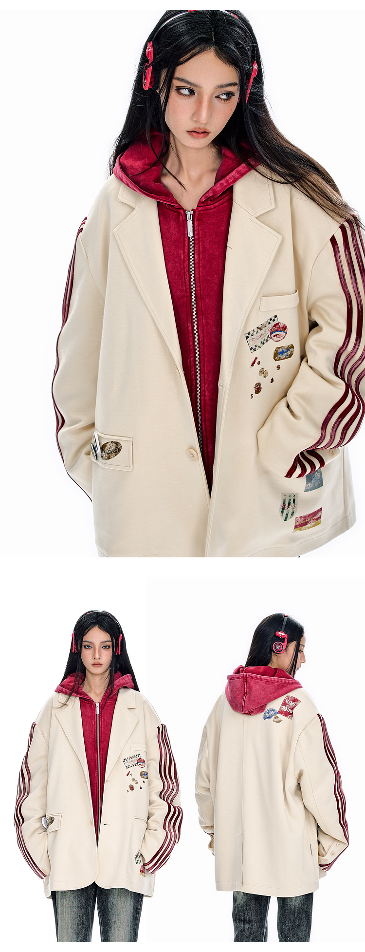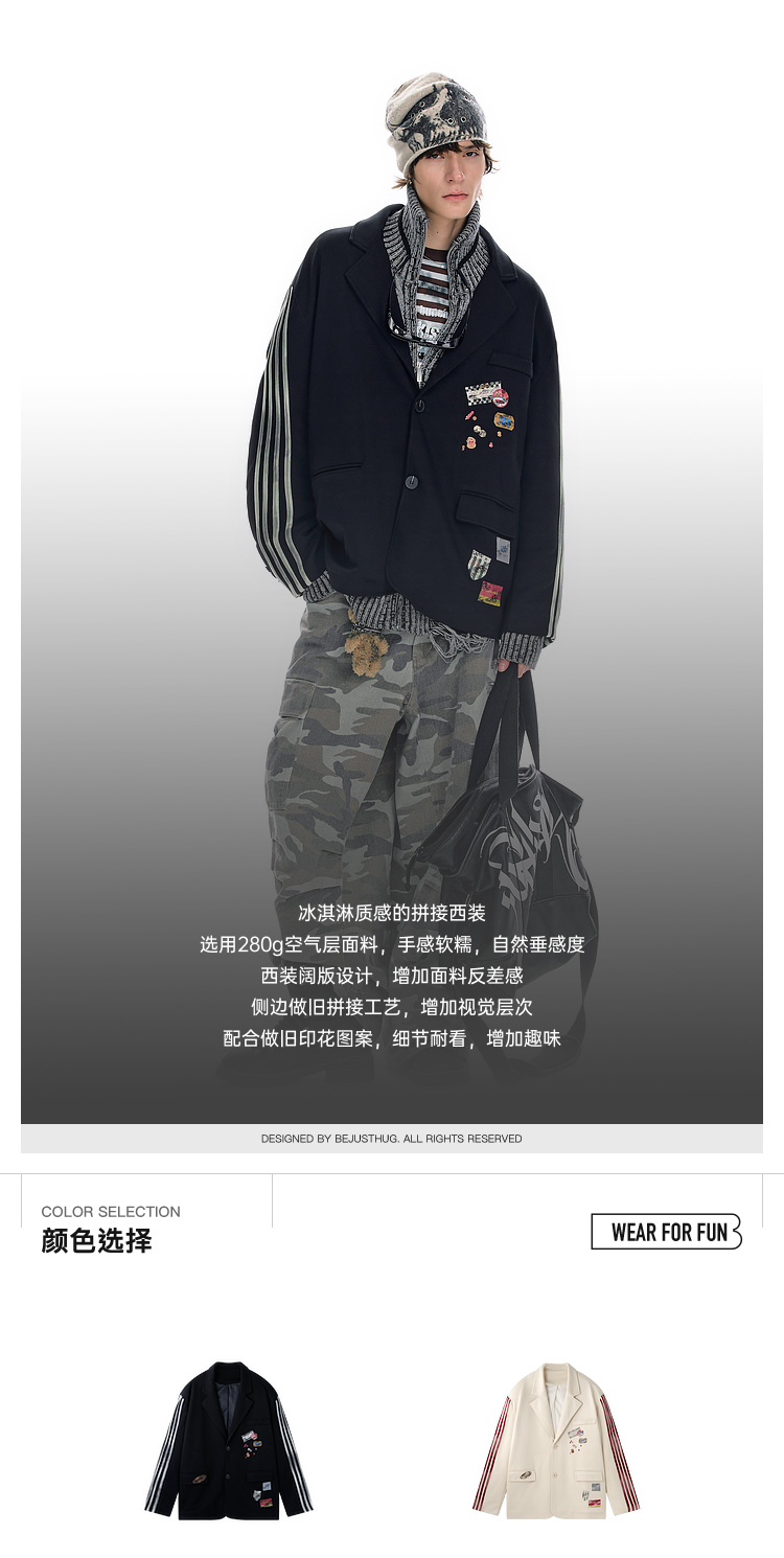 BJHG不计后果休闲西装外套男款春季新款拼接做旧空气层翻领夹克女