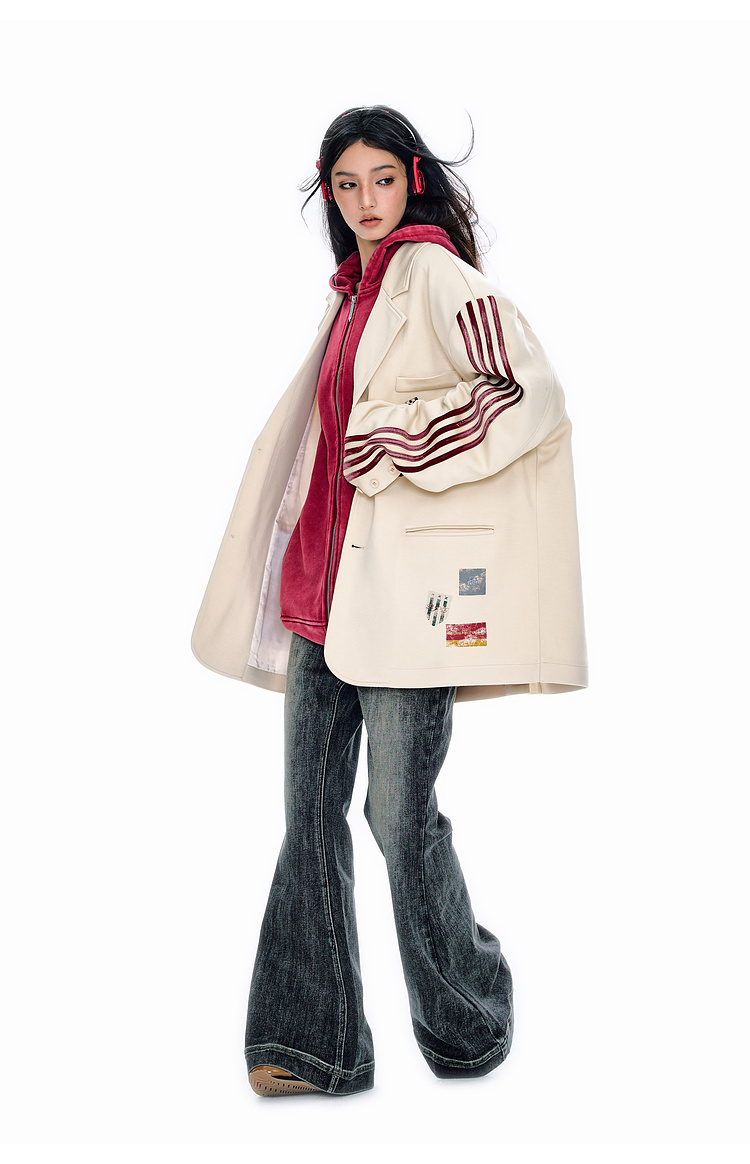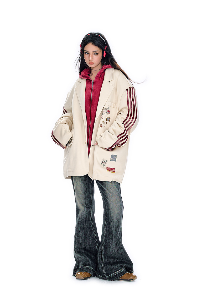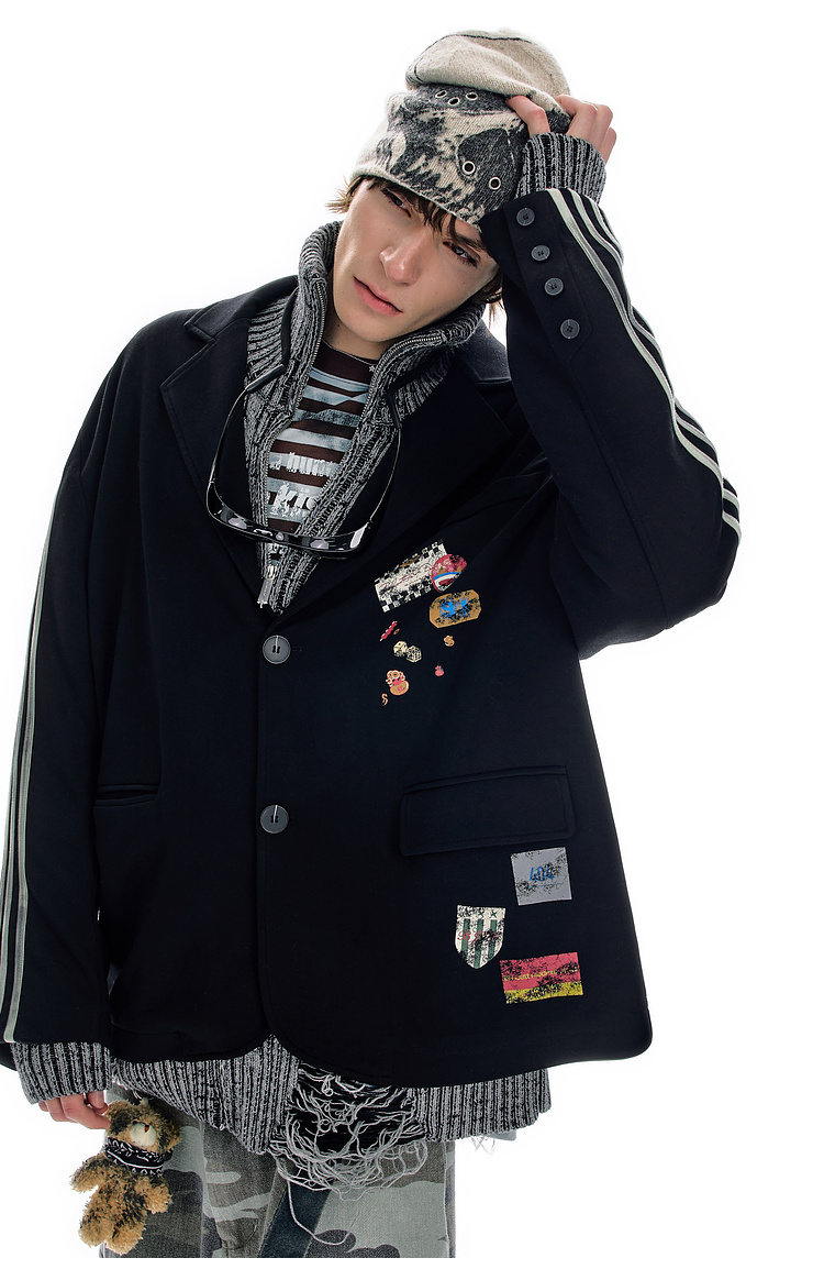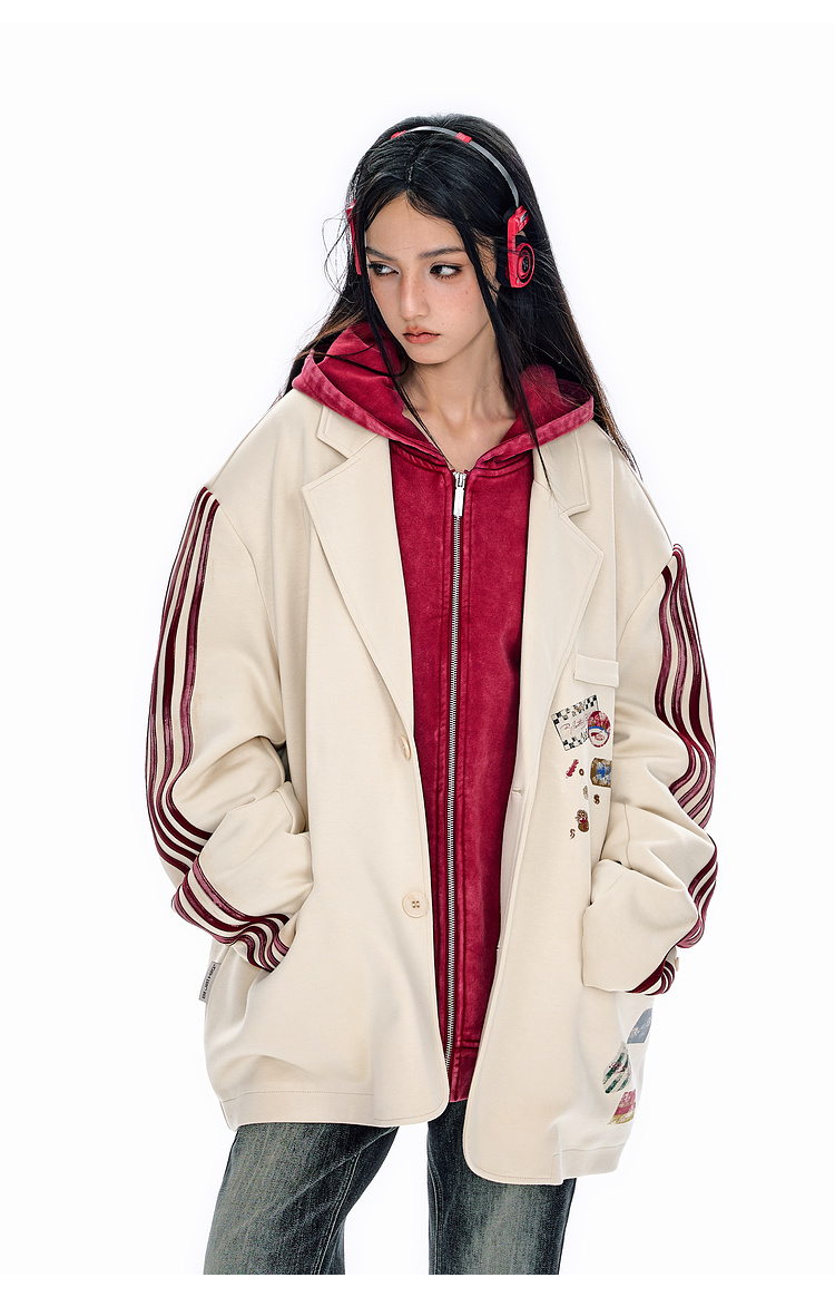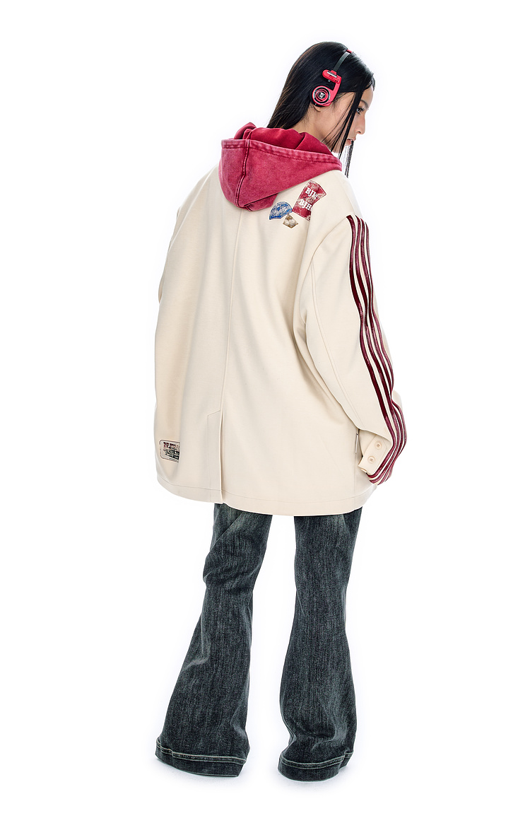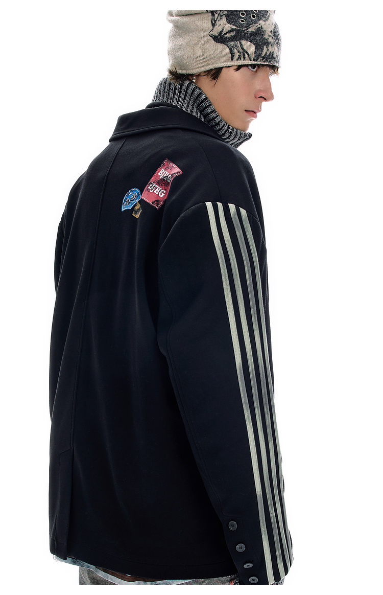 BJHG不计后果休闲西装外套男款春季新款拼接做旧空气层翻领夹克女