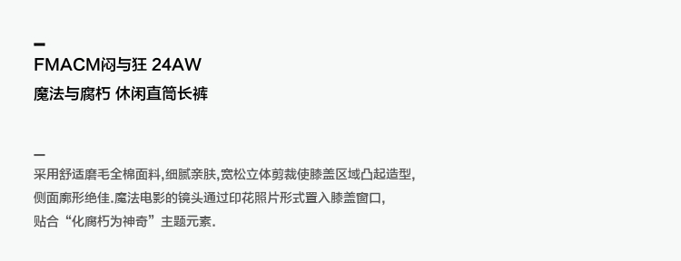 FMACM/CK24200/魔法与腐朽休闲直筒长裤