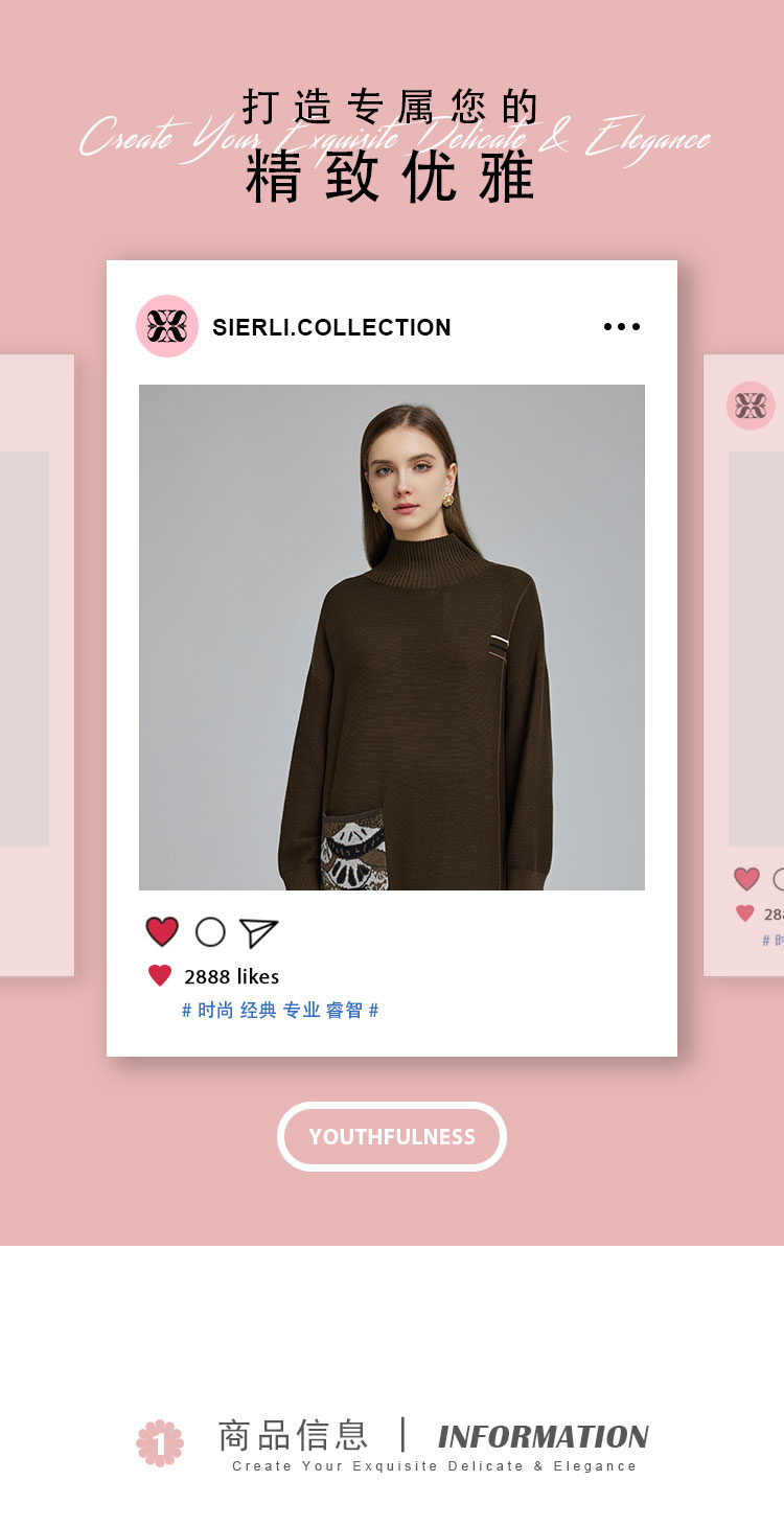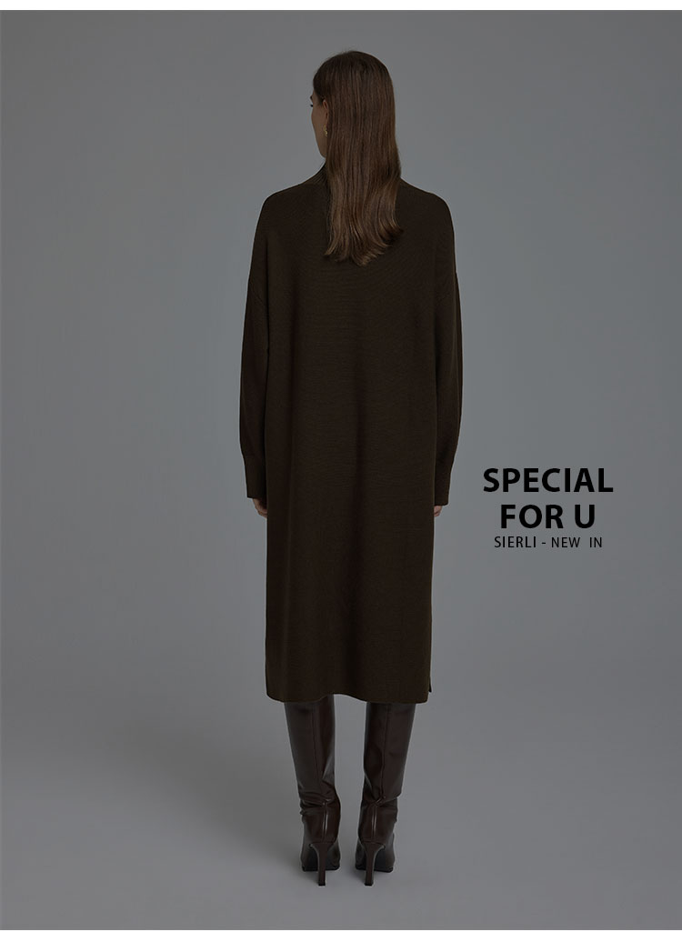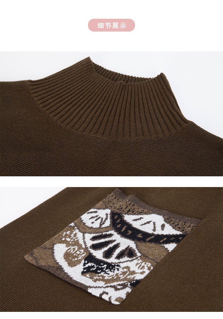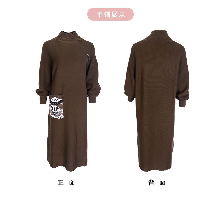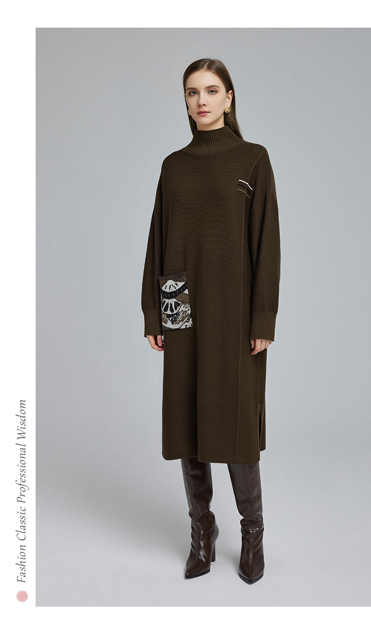 NG680斯尔丽2023秋冬新款半高领宽松口袋提花宽松显瘦显高针织连衣裙