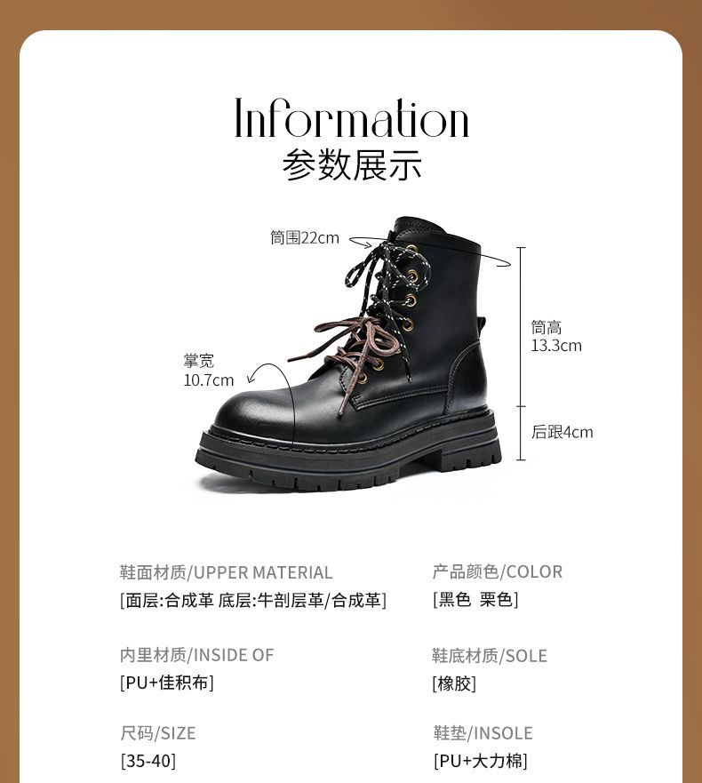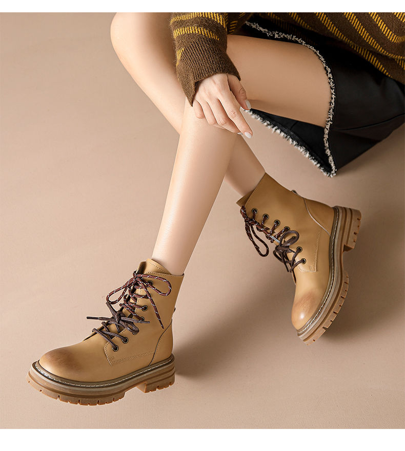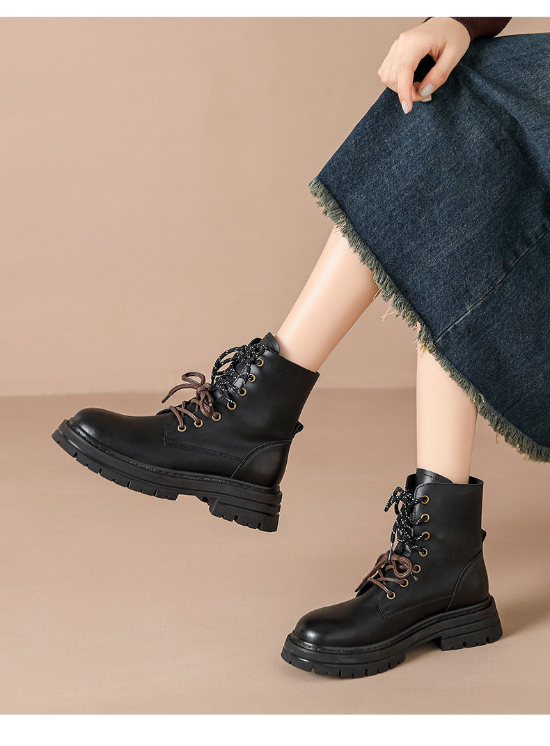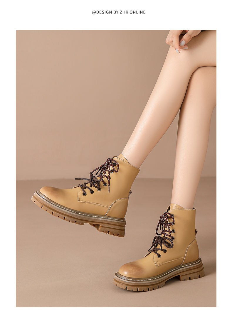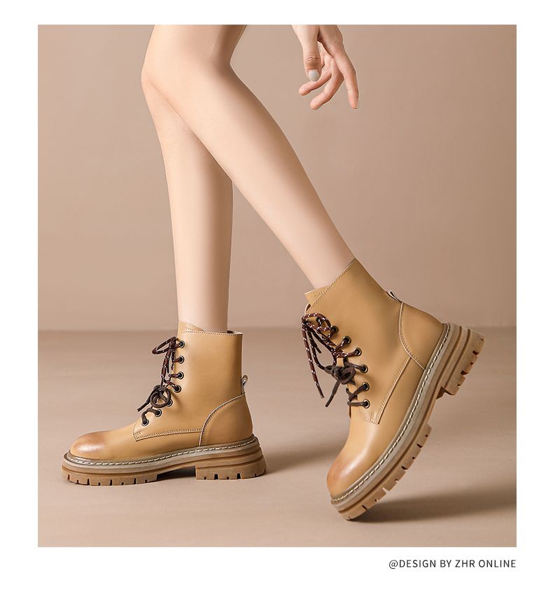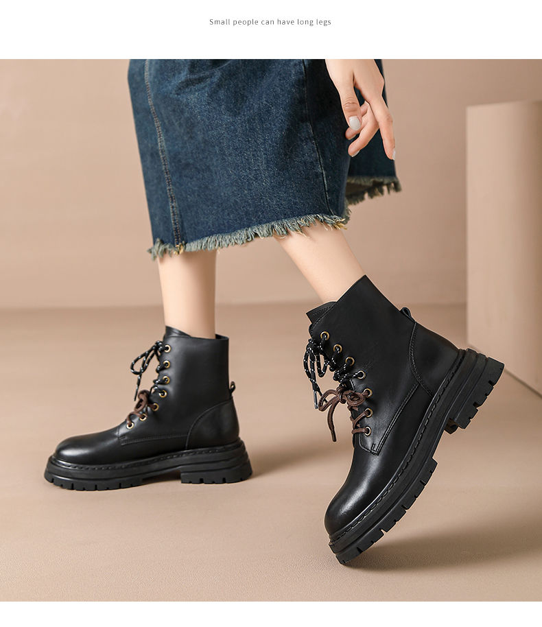 ZHR则则厚底增高马丁靴女2024秋季新款显瘦单靴百搭复古休闲短靴