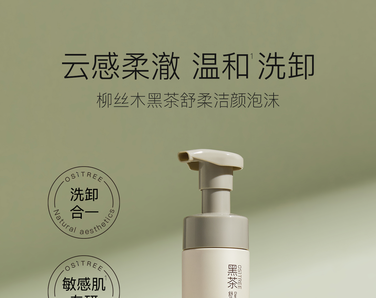柳丝木黑茶舒柔洁颜泡沫男女氨基酸深层清洁洗面奶洗卸合一不刺激