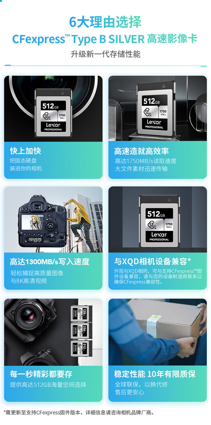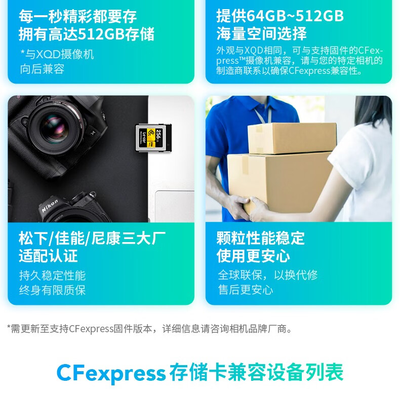 雷克沙CFexpress B型存储卡XQD升级版 尼康Z6/7R5内存卡 SILVER/GOLD