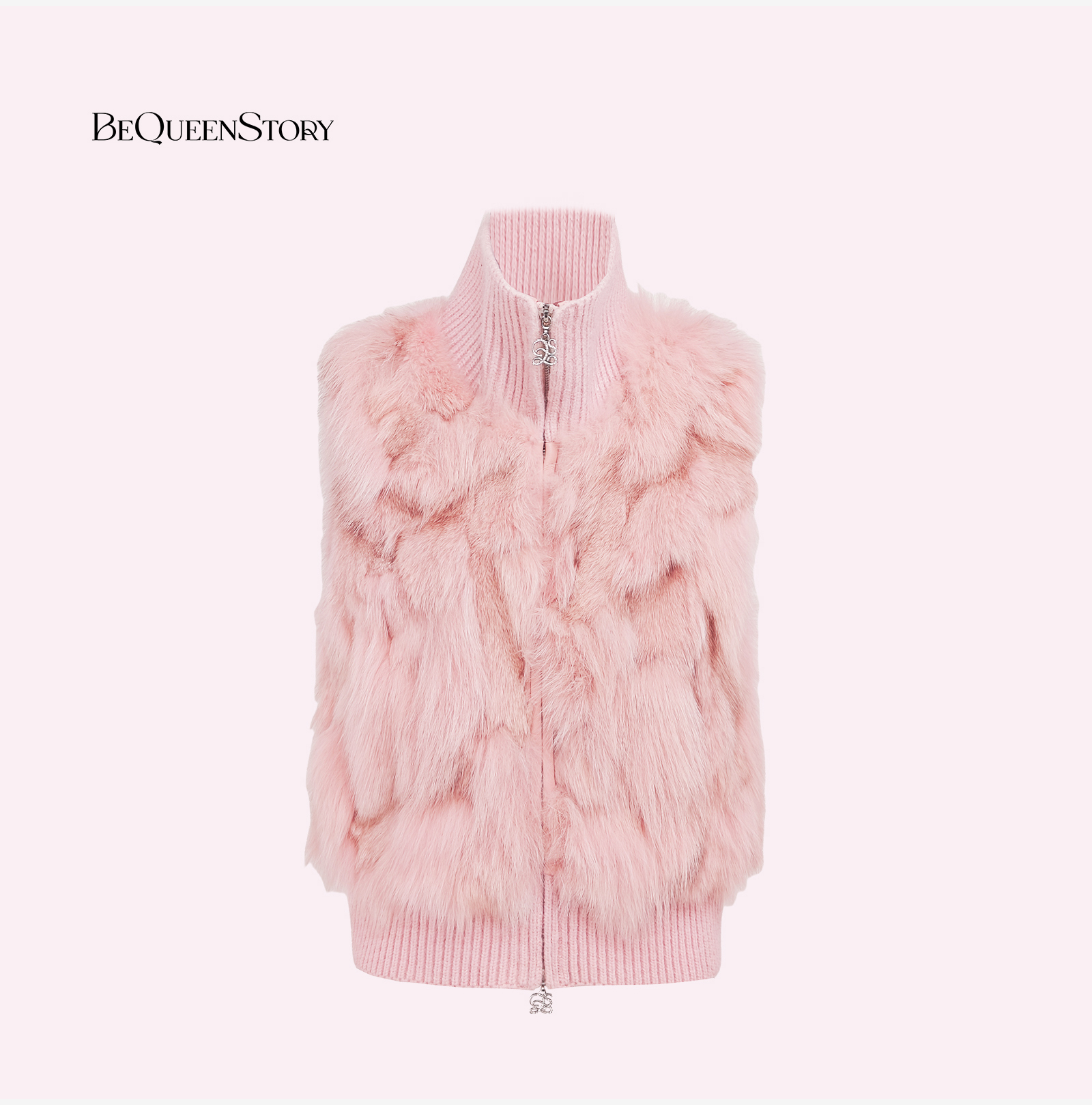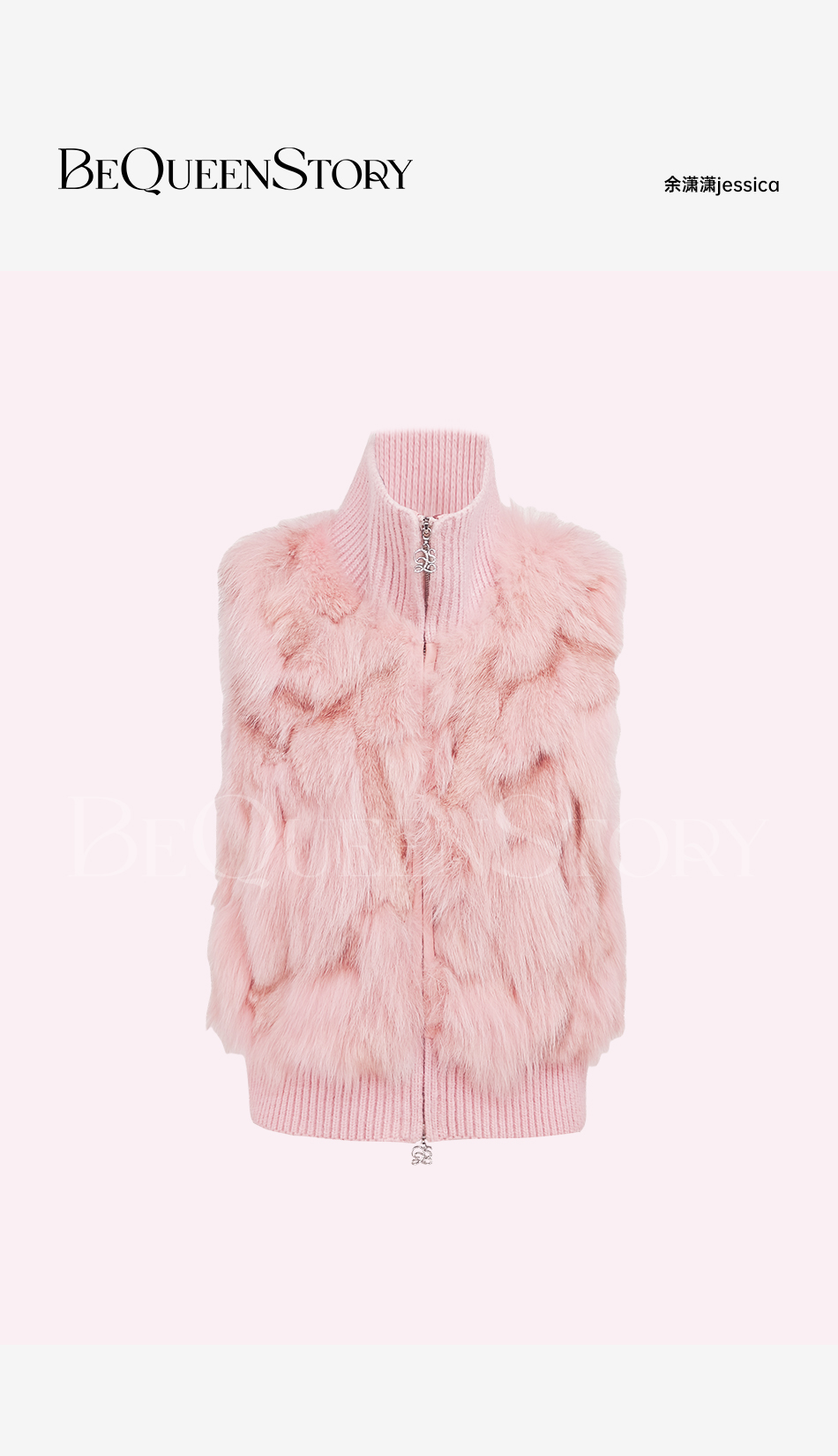 余潇潇【甜宠千金】轻奢时尚保暖拼狐狸毛绵羊皮螺纹设计立领马甲