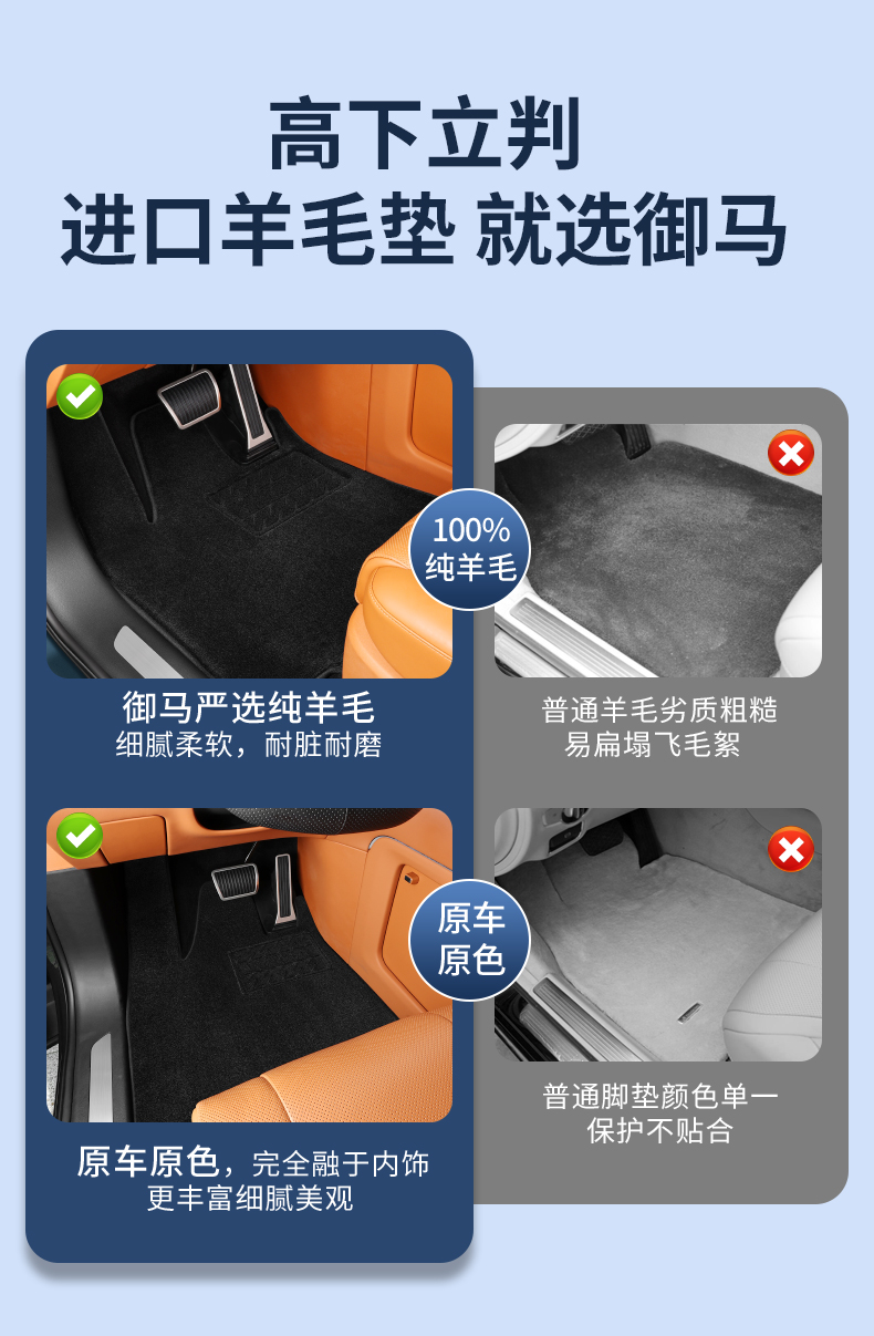 御马羊毛汽车脚垫适用于奥迪A6q5L奔驰E宝马x35系特斯拉丰田塞纳奥德赛小鹏X9