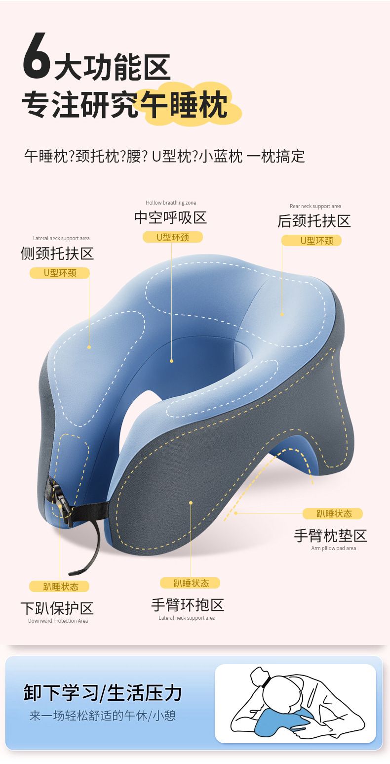 【办公室U型午睡枕神器】多功能学生趴着桌子睡觉午休枕头 睡觉趴趴枕
