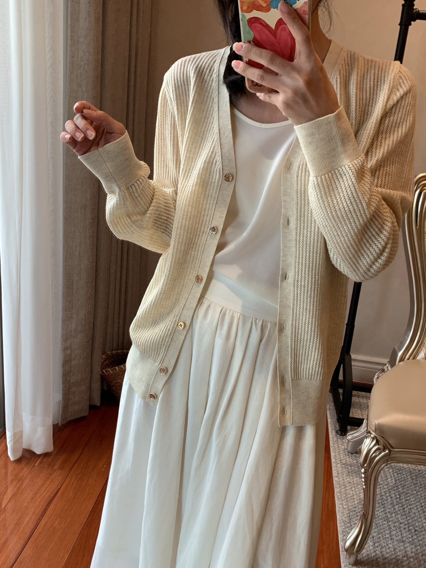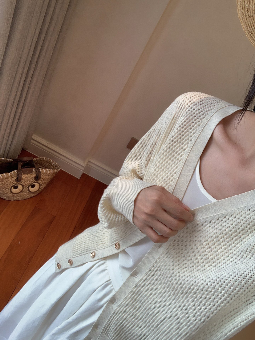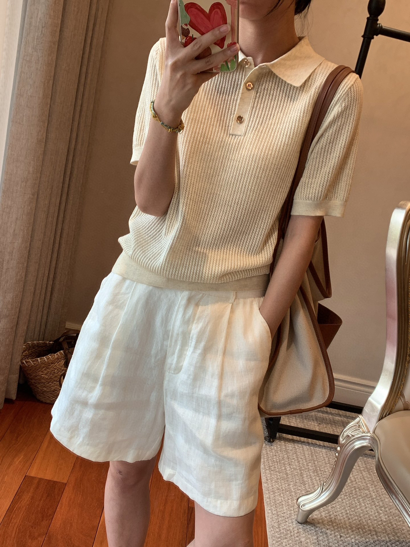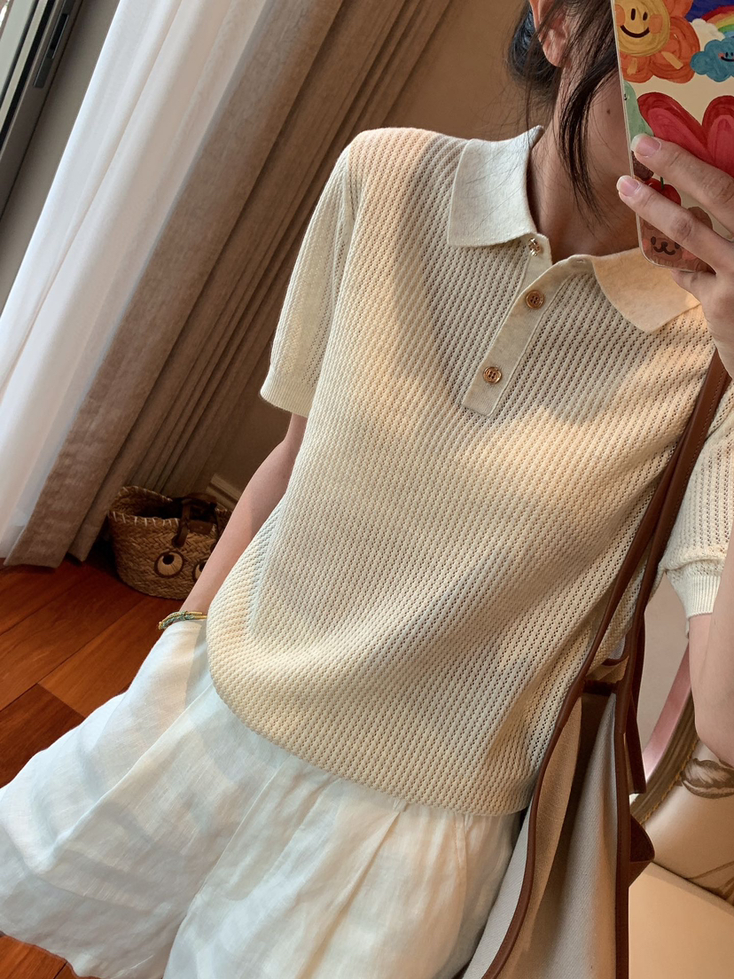 628-1 亲戚工厂 一手渠道货 LP镂空针织系列 翻领短袖 针织开衫