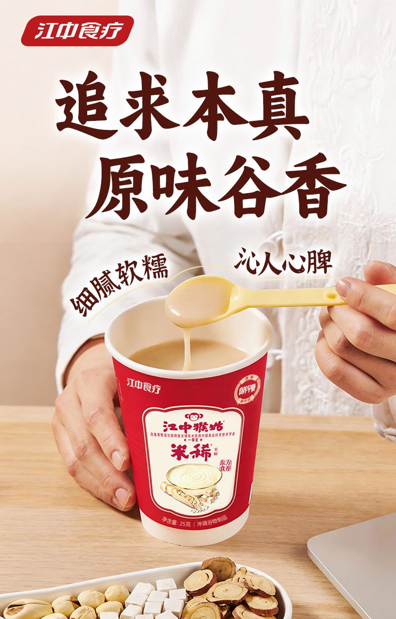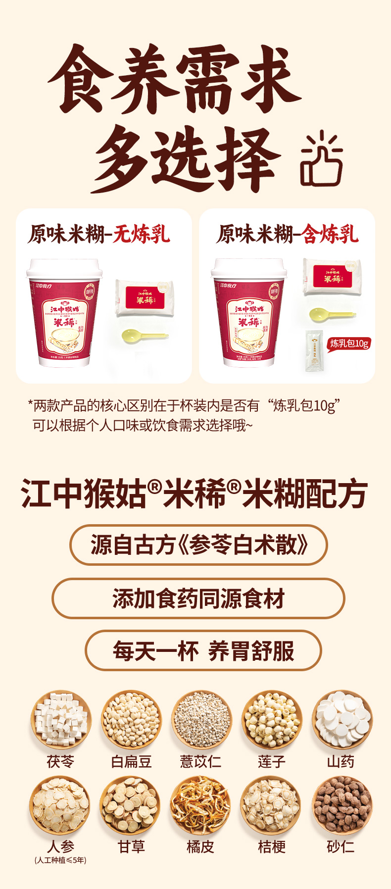 【12杯】江中猴姑原味米稀杯装米糊便携早餐 25g/杯不含炼乳 35g/杯含炼乳可选 2026年1月生产/保质期12个月