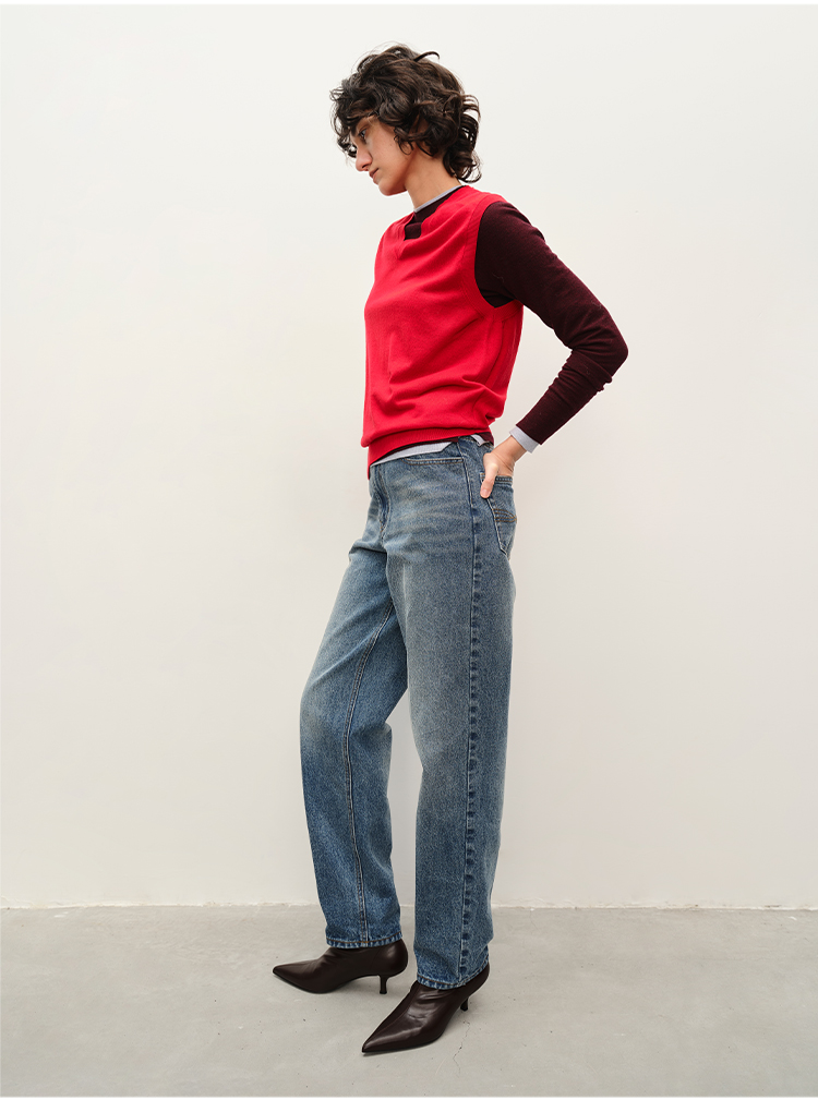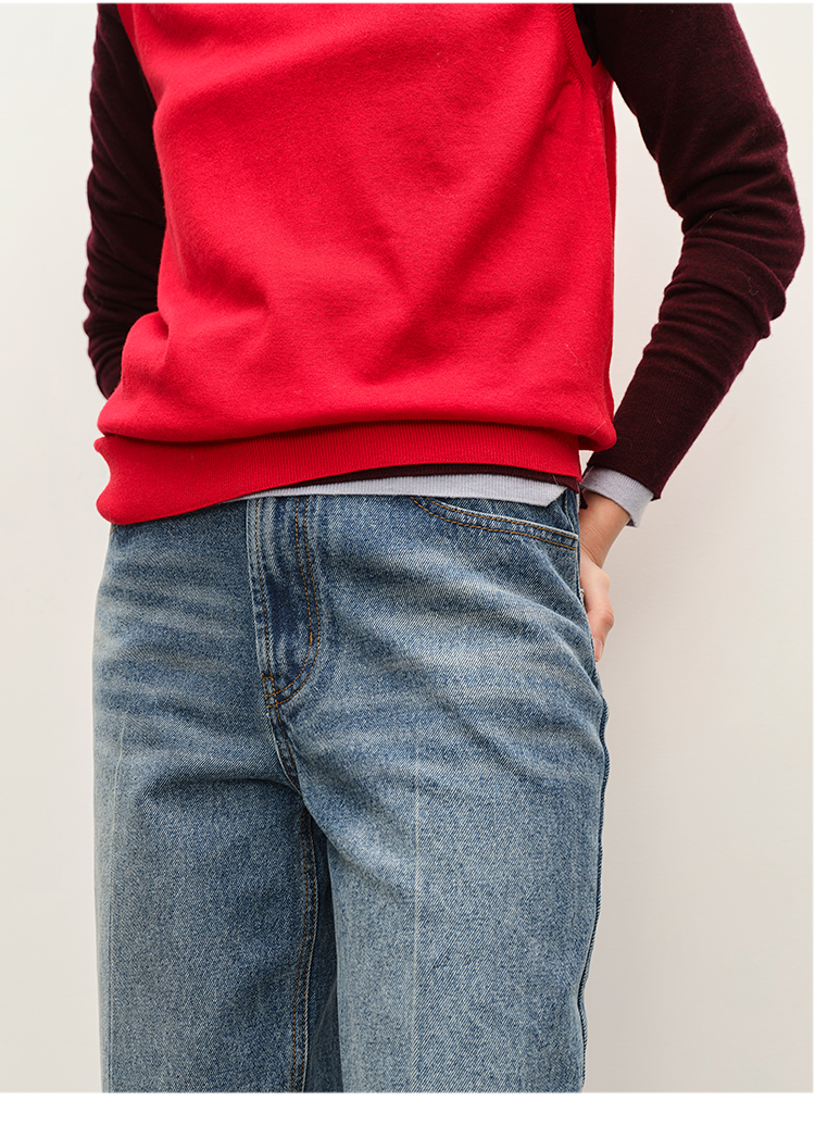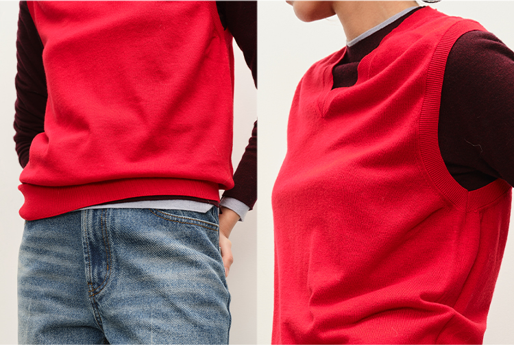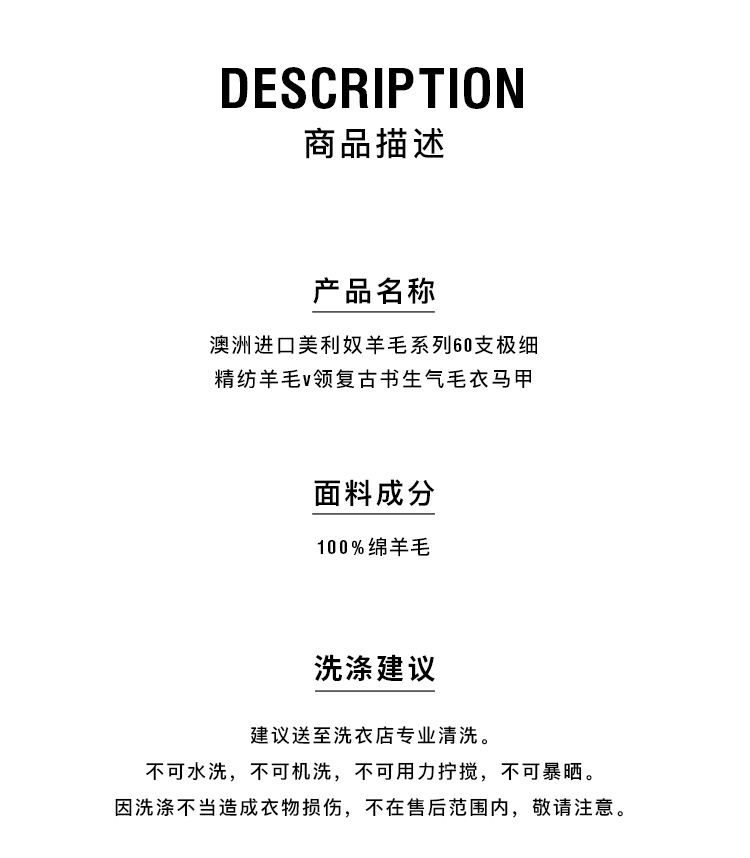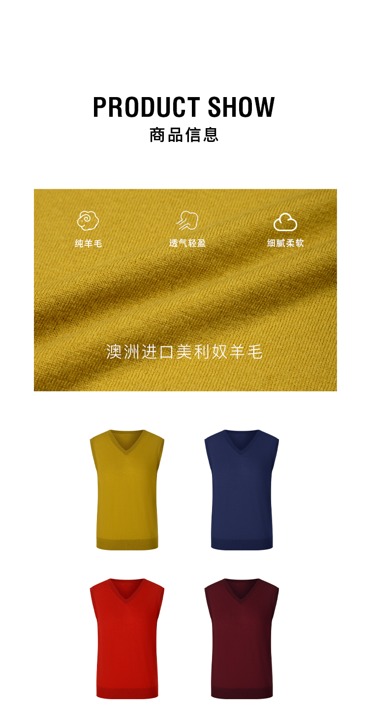 HIDEMI 澳洲进口美利奴羊毛系列60支极细精纺羊毛v领复古毛衣马甲 姜黄色