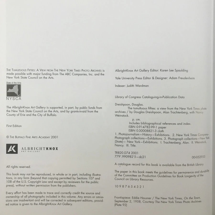 冷战、人造卫星、麦卡锡、卡斯特罗、玛丽莲·梦露和《无因的反叛》等是20世纪50年代这十年里的美国历史与文化的代表性事件,然而这也只是50年代的一小部分。这本令人惊叹的作品从《纽约时报》照片档案中挑选出了200幅照片,从一个更为日常和真实的角度还原了具有分水岭意义的50年代:当时人们关注什么,什么是重要的,以及为什么重要。这些照片里有些是非常出名的,有些却不太知名,它们放在一起足以打破人们对50年代的刻板印象,同时这部作品里还有两篇文章探讨了摄影对新闻发展的意义。