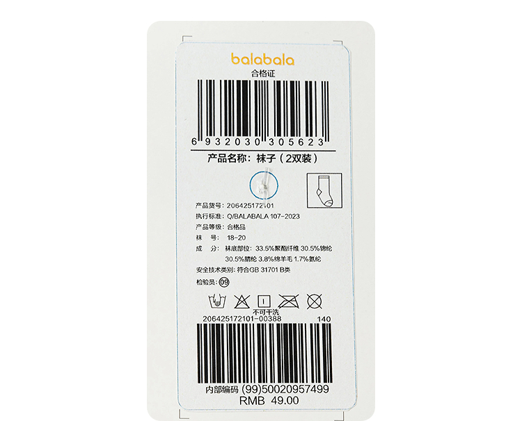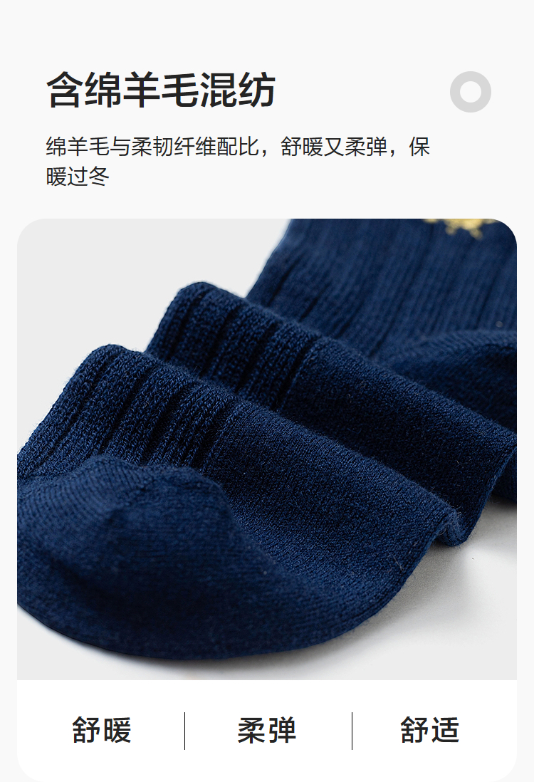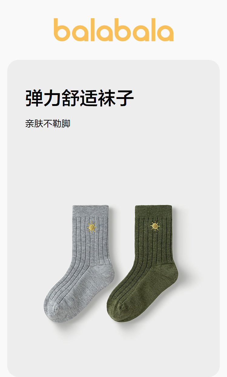 【商场同款】巴拉巴拉儿童袜子秋冬男童短袜中幼童含羊毛暖两双装