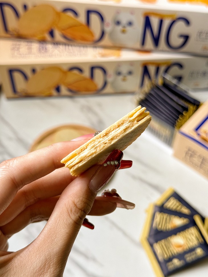 酥到掉渣!黄油薯香饼皮 × 空气感薄脆 「咬一口咔嚓响,两层酥脆暴击!」 👉 外层不是普通小麦饼!加了足足6.5%马铃薯雪花粉,像薯片一样酥脆,还带天然薯香~ 👉 安佳黄油和面,奶香偷偷钻进每一层!高温烘烤后薄如纸片,轻轻一掰就碎成渣,比普通饼干脆3倍!