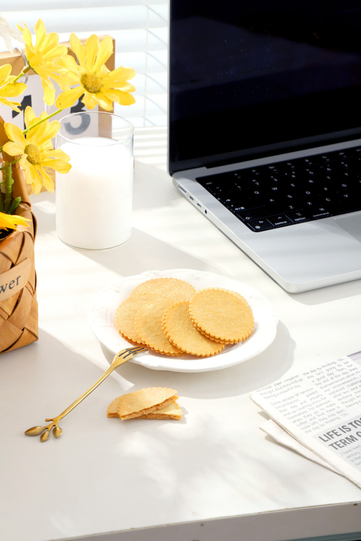 原料够狠!健康党闭眼囤 「黄油升级、0反式脂肪酸,宝妈也敢给孩子吃!」 一拆包装就闻到的富贵感—— 5%安佳黄油 ≈ 每片藏了颗黄油小炸弹! 5%安佳黄油揉进饼皮,奶香多到敢和曲奇叫板!” 普通夹心饼干黄油含量2-3%,咱家用新西兰安佳黄油,含量≥5%!高温烘烤后油脂渗进饼皮孔隙,酥脆度提升60%,咬一口像在嚼黄油薯片!