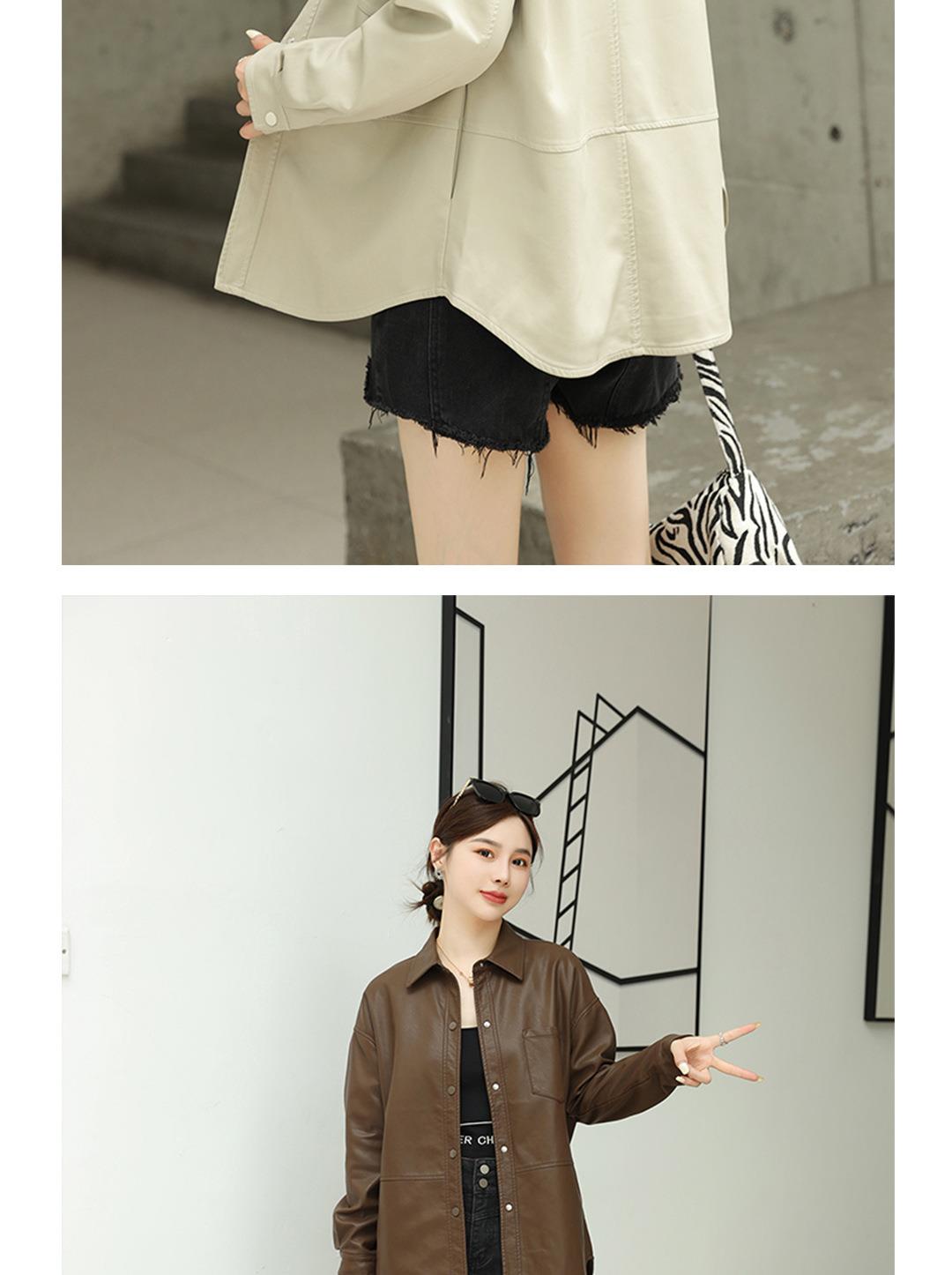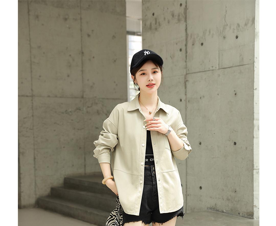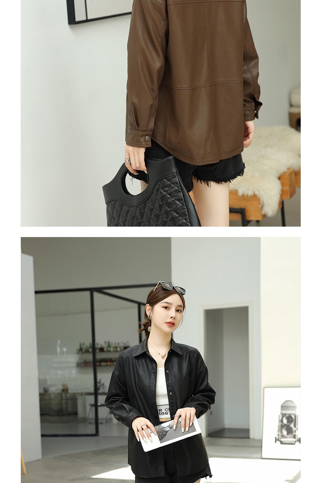 韩版中长款皮衣外套女2023秋季新款翻领衬衫式皮夹克修身水洗PU皮