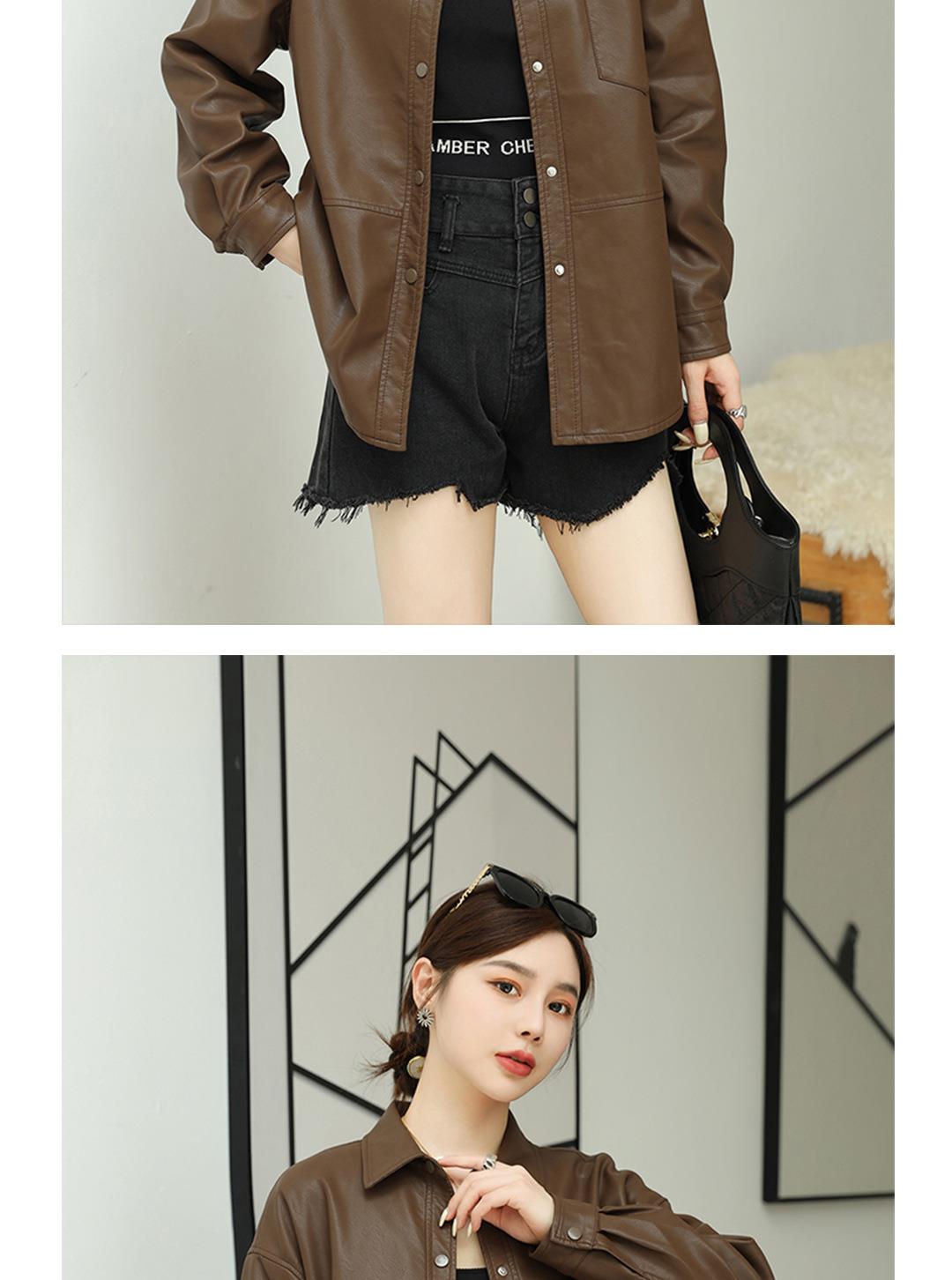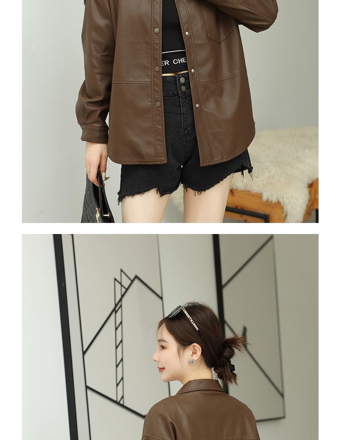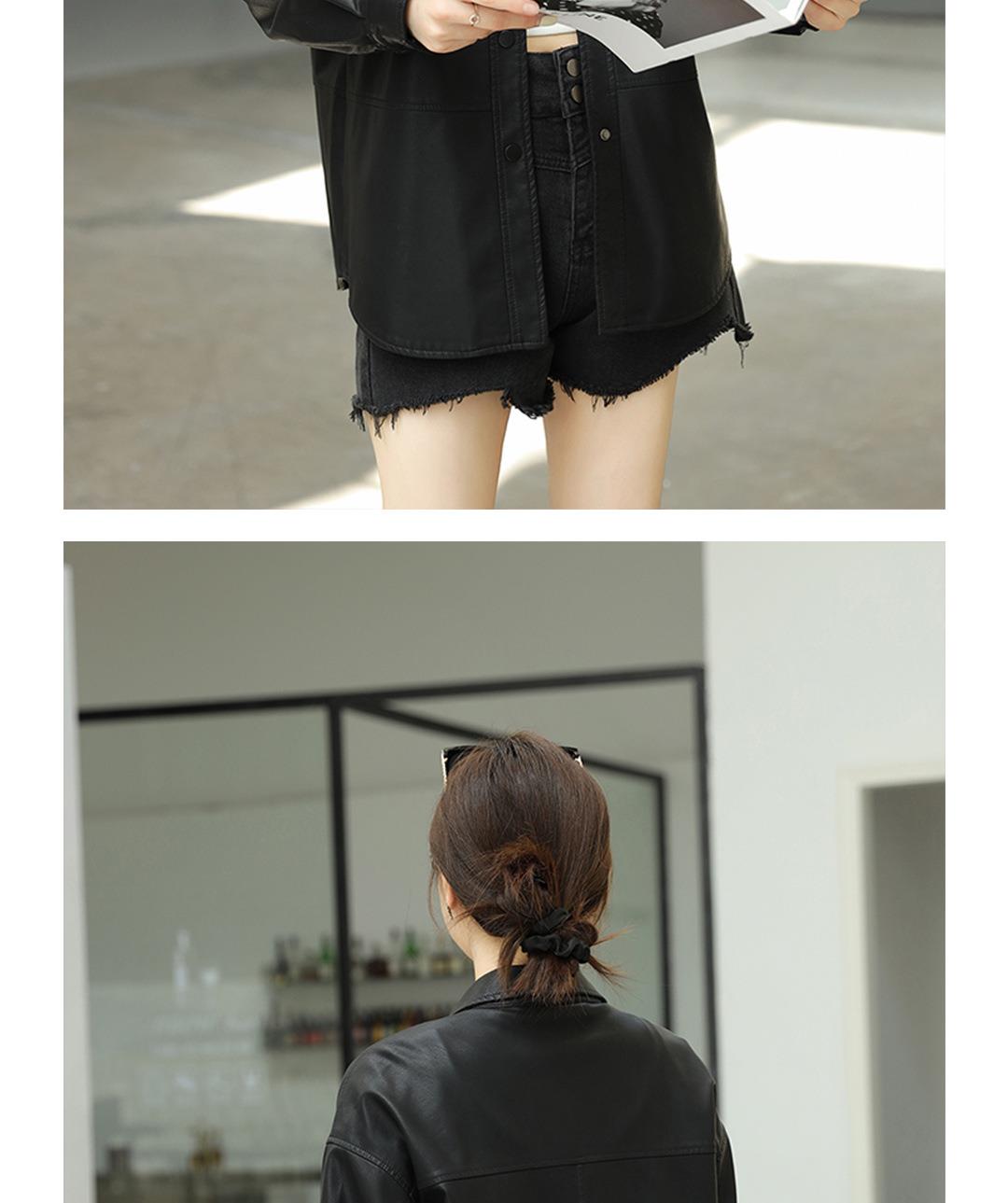 韩版中长款皮衣外套女2023秋季新款翻领衬衫式皮夹克修身水洗PU皮