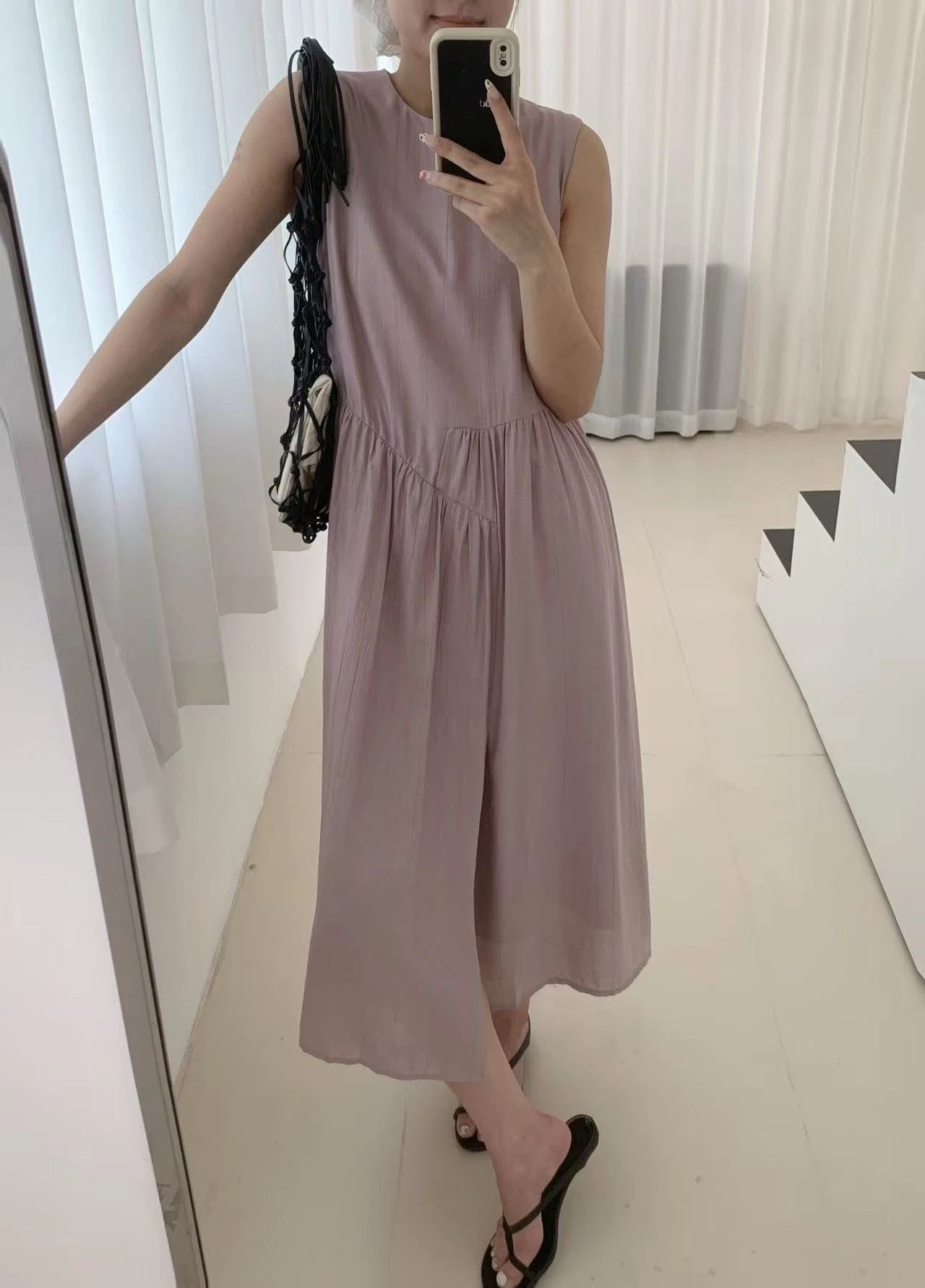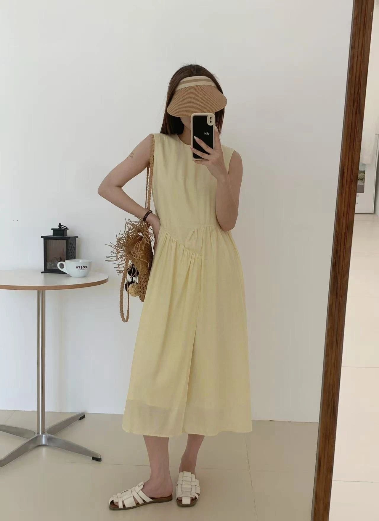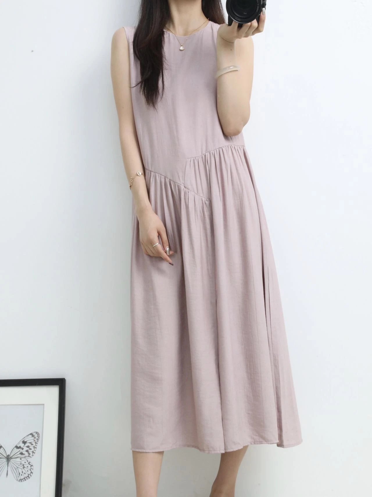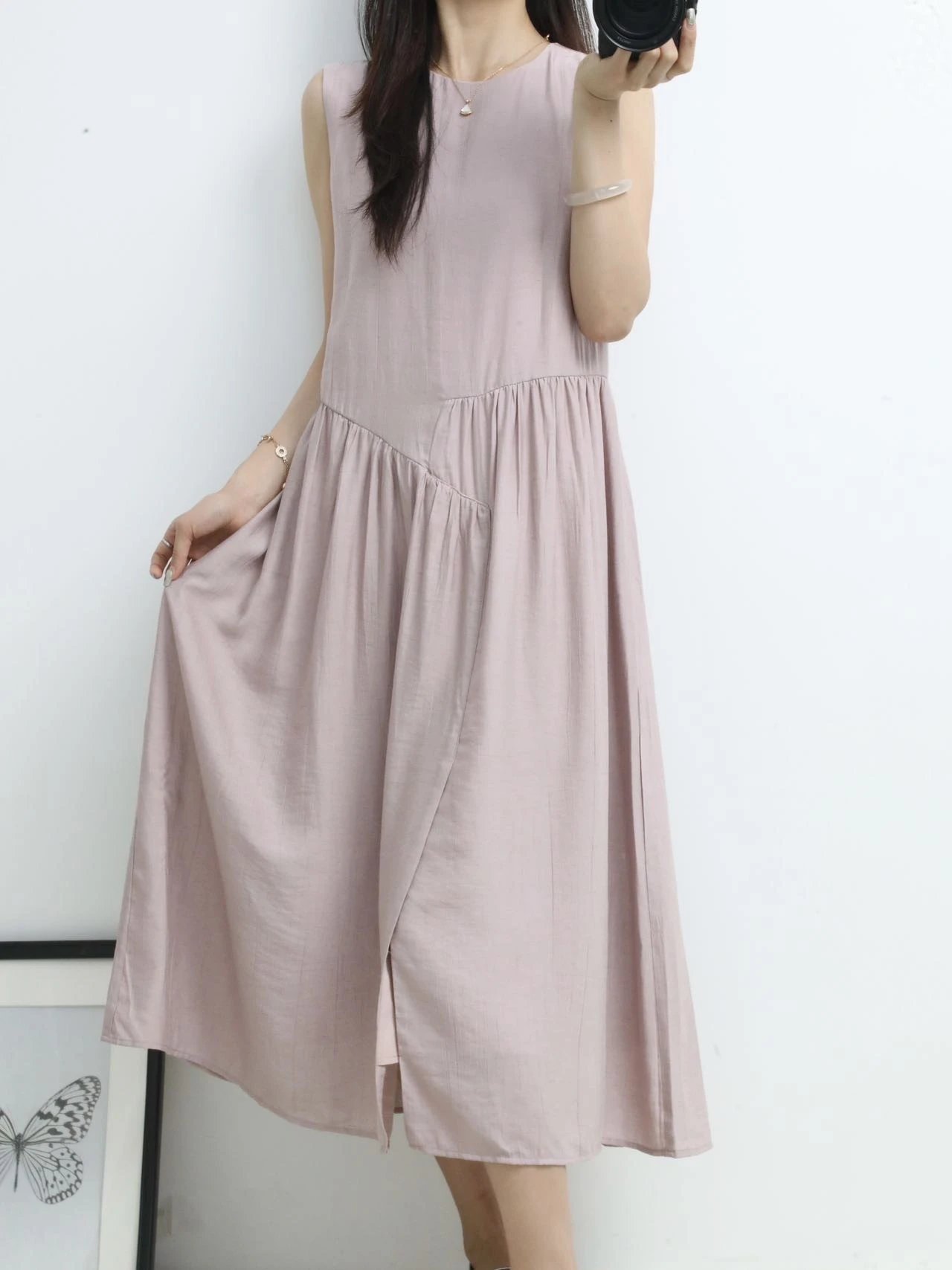 【商品品名】温柔风无袖亚麻连衣裙