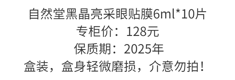 【爆款超低价预售 急单慎拍】自然堂黑晶亮采眼贴膜淡化细纹黑眼圈紧致眼周补水保湿去眼袋抗皱 10片